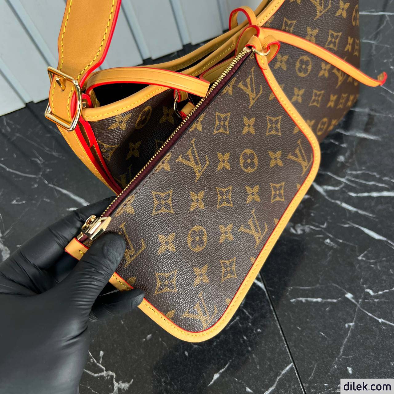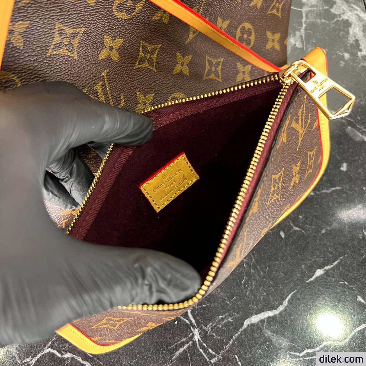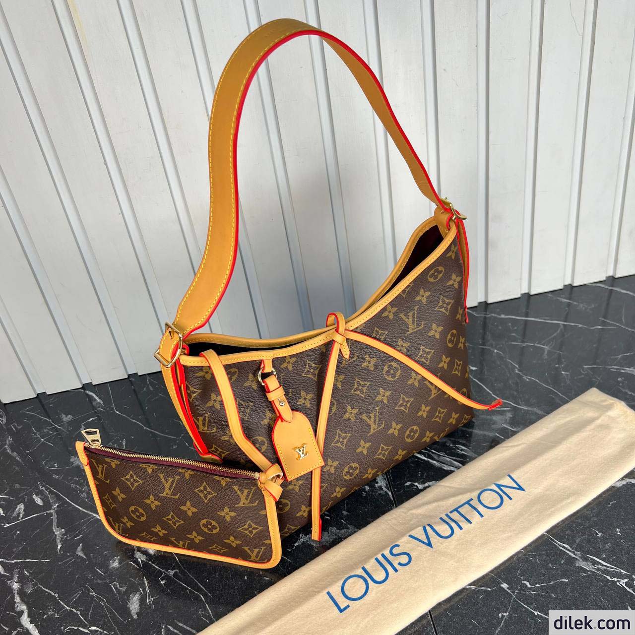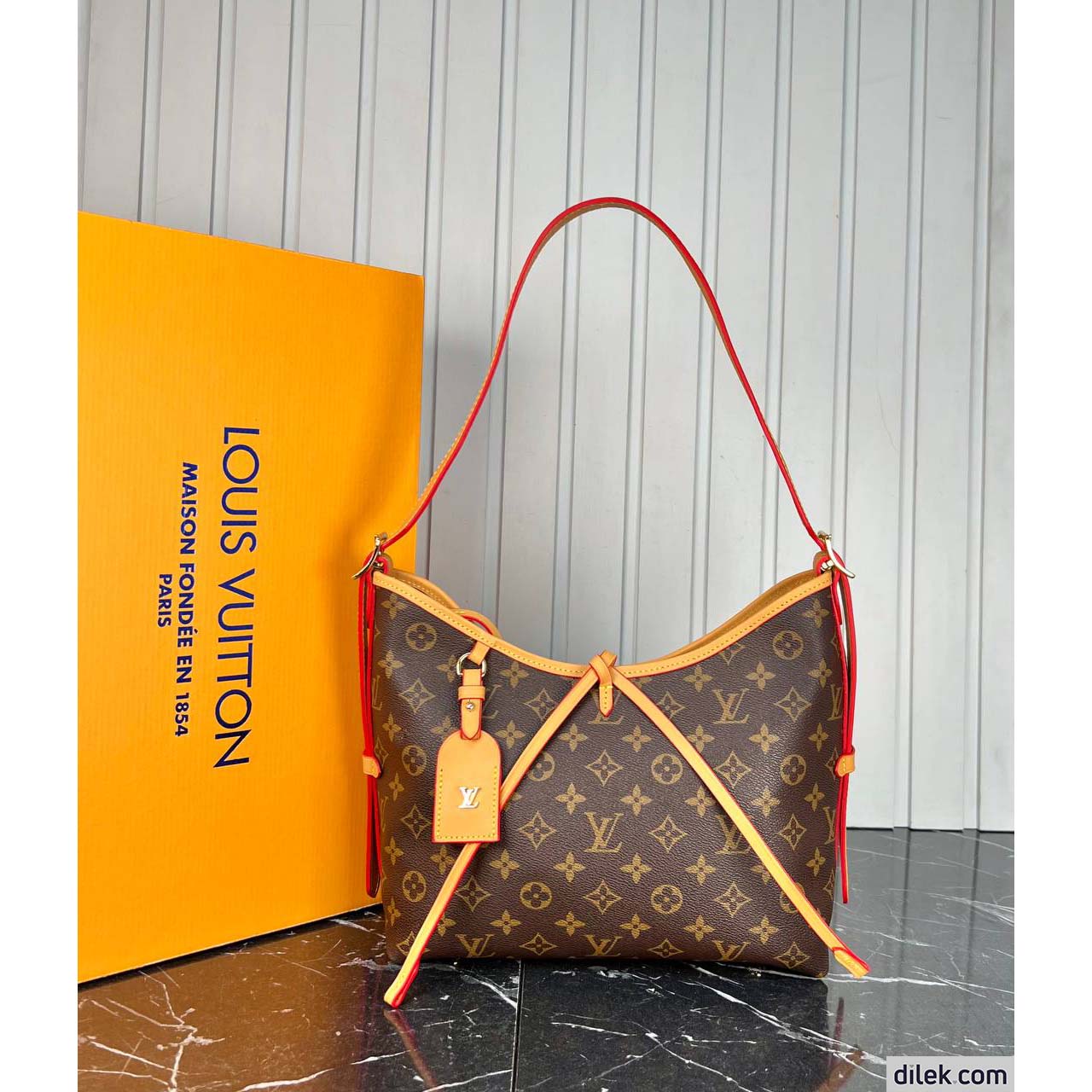 Combining allure with body-friendly design, the CarryAll PM handbag in Monogram canvas with natural leather trim is a go-everywhere city bag. Great storage capacity and a smartly designed interior, with two large inside pockets, makes it practical. A detachable zipped pouch, also in Monogram canvas, is attached to the bag by a leather strap.