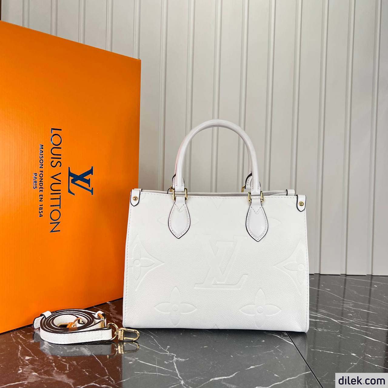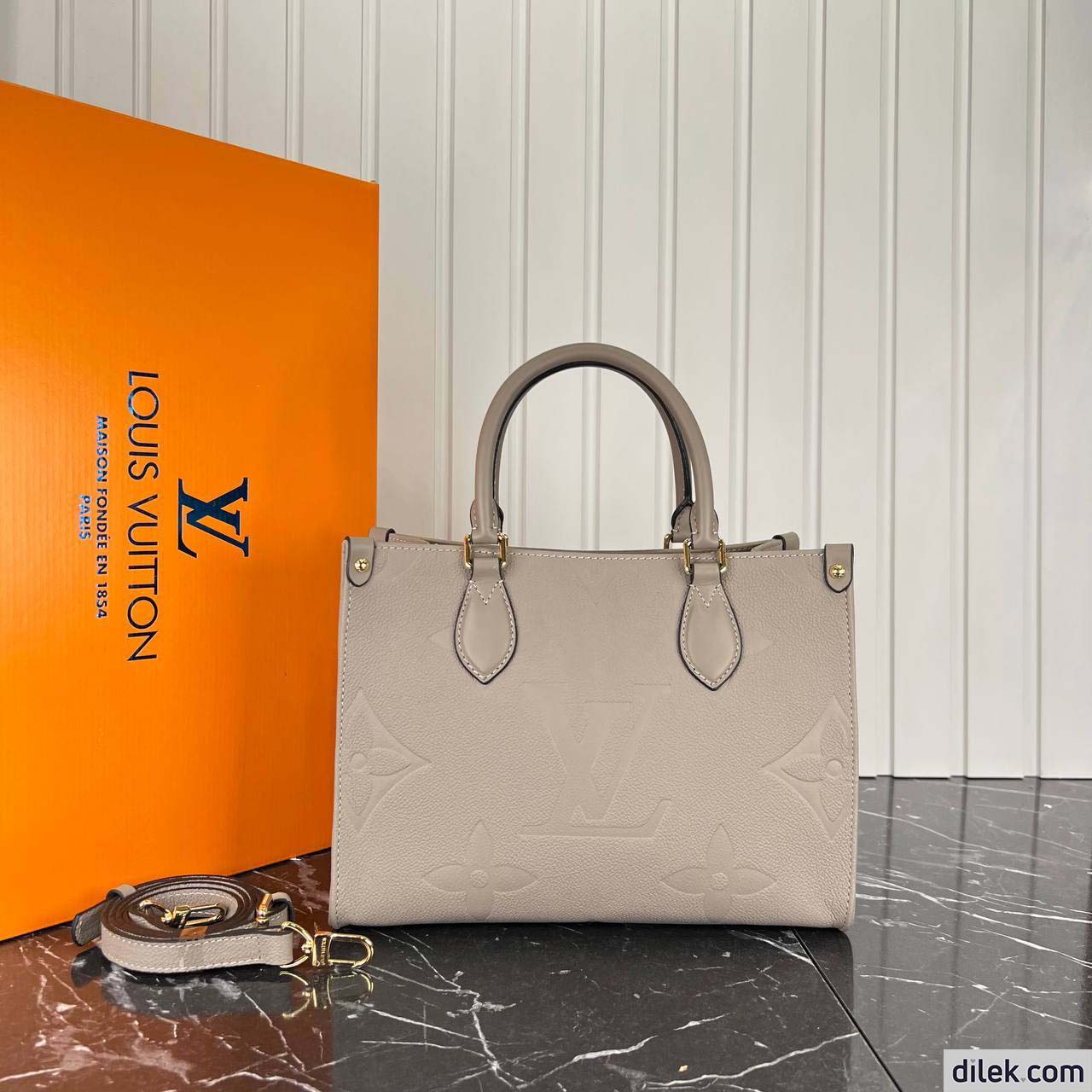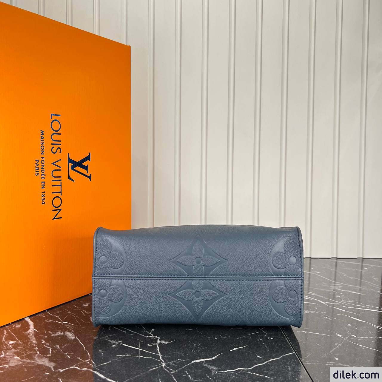 Grained Monogram Empreinte leather in a fresh colorway, embossed with the Giant Monogram, gives this OnTheGo PM handbag understated charm. This compact version of the original OnTheGo, itself inspired by Louis Vuitton’s famous Sac Plat from 1968, can fit an iPad Mini. Top handles and an adjustable removable strap offer carry options.