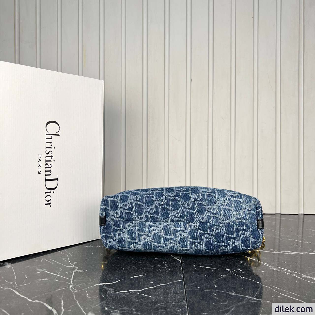 The DiorTravel Nomad pouch is a modern hybrid design. Crafted in blue Dior Oblique jacquard, it presents a spacious and flexible form that will accommodate all the essentials. The medium style can be carried by hand or worn over the shoulder thanks to the top handle, complete with a military-inspired CD buckle, while one of the House's embroidered shoulder straps can be attached to the side rings.