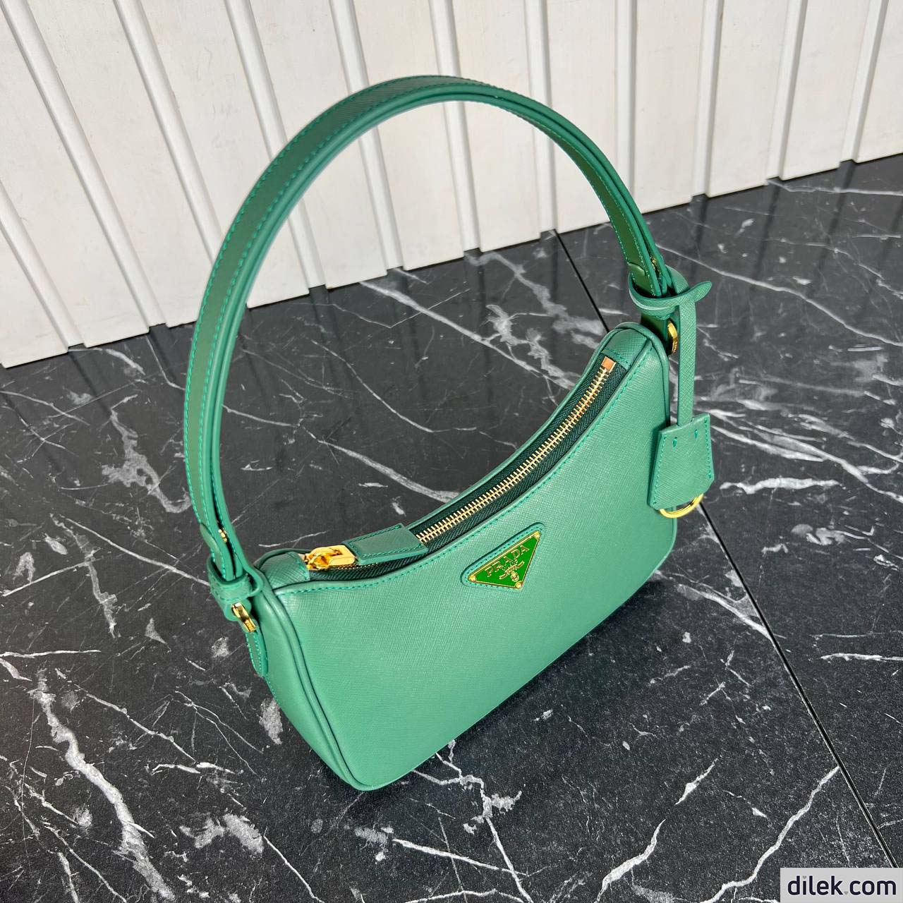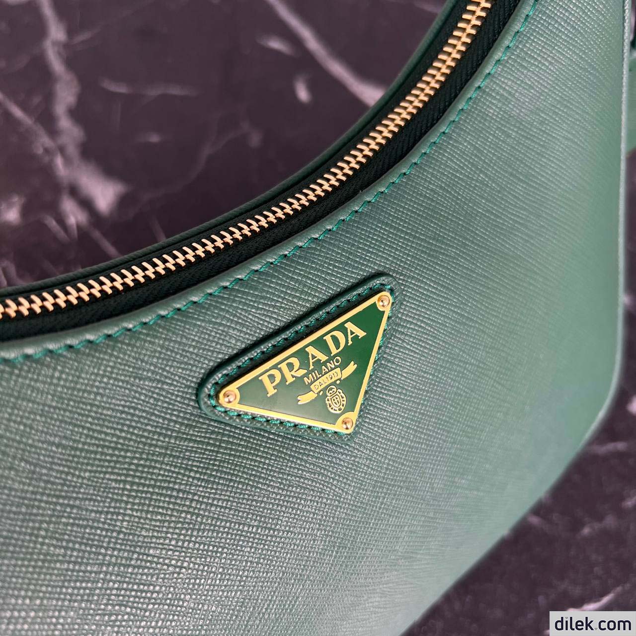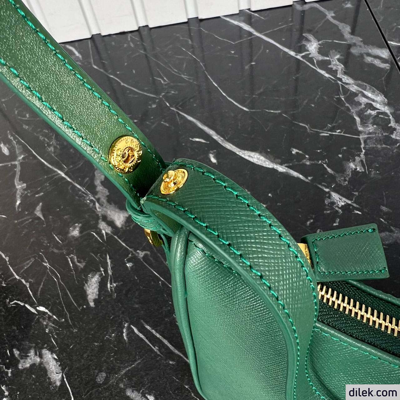 A harmonious design characterizes this bag made of Saffiano, a very high quality leather that has become an iconic material of the brand with its crosshatched texture. The accessory with a zipper closure and removable key ring is decorated with the metal triangle logo.