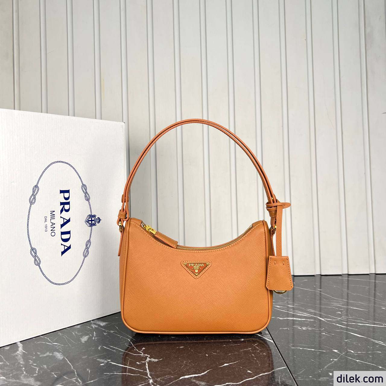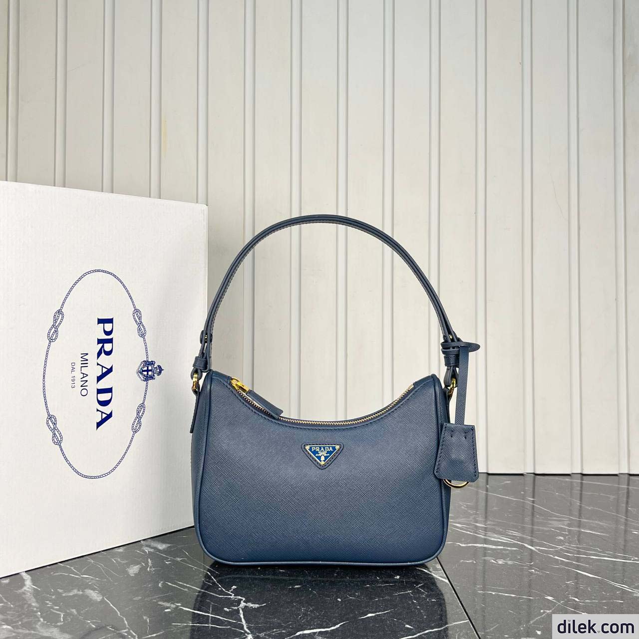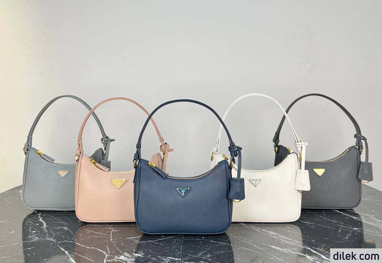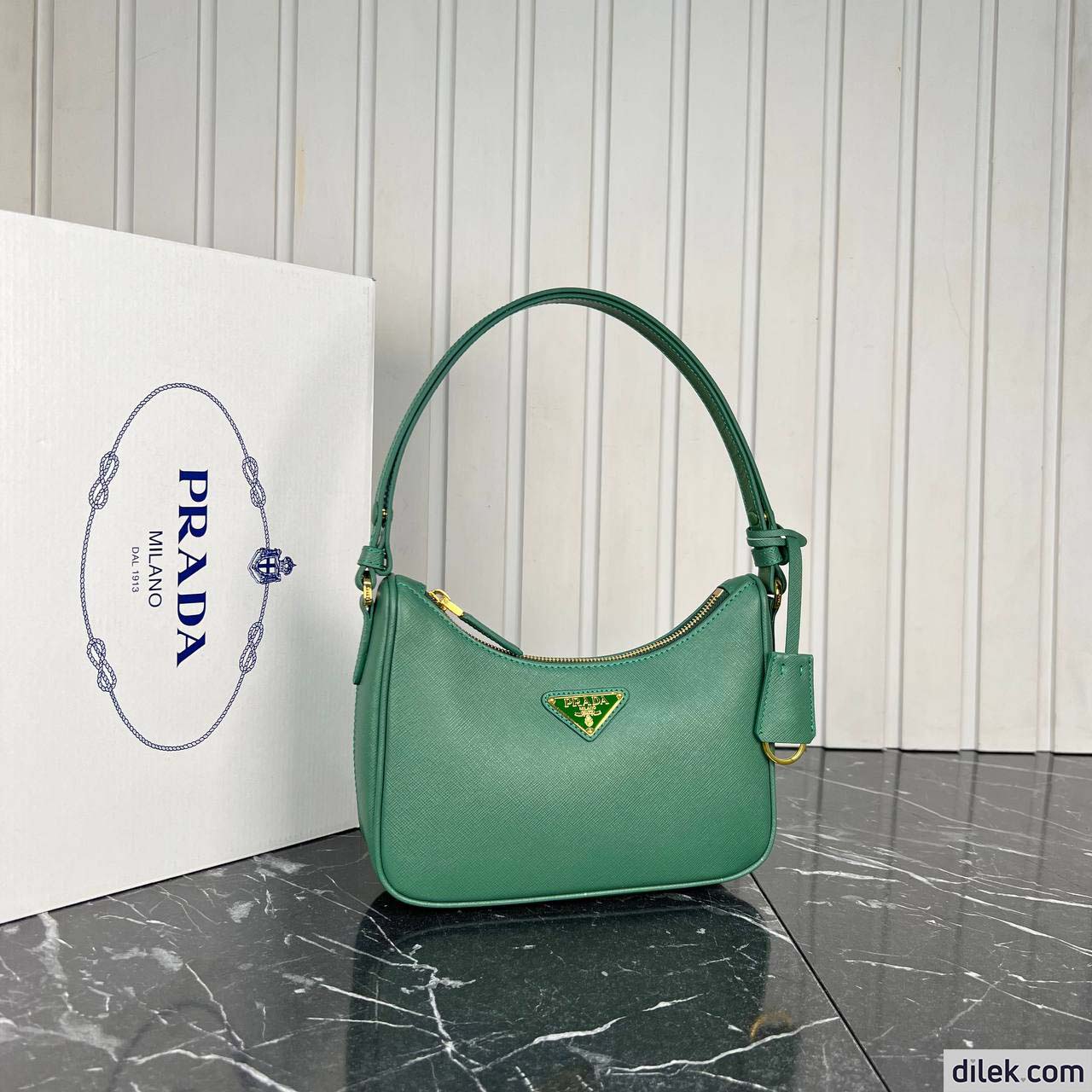 A harmonious design characterizes this bag made of Saffiano, a very high quality leather that has become an iconic material of the brand with its crosshatched texture. The accessory with a zipper closure and removable key ring is decorated with the metal triangle logo.