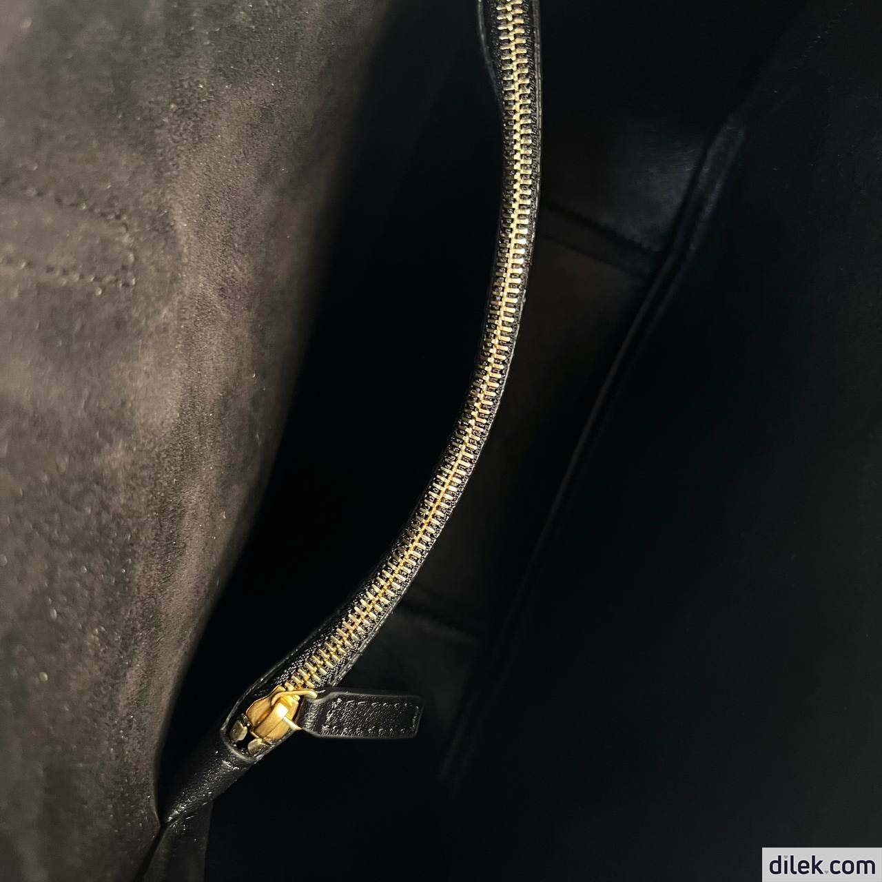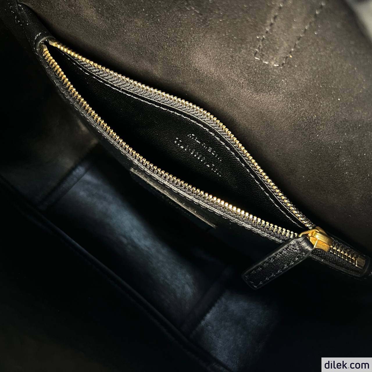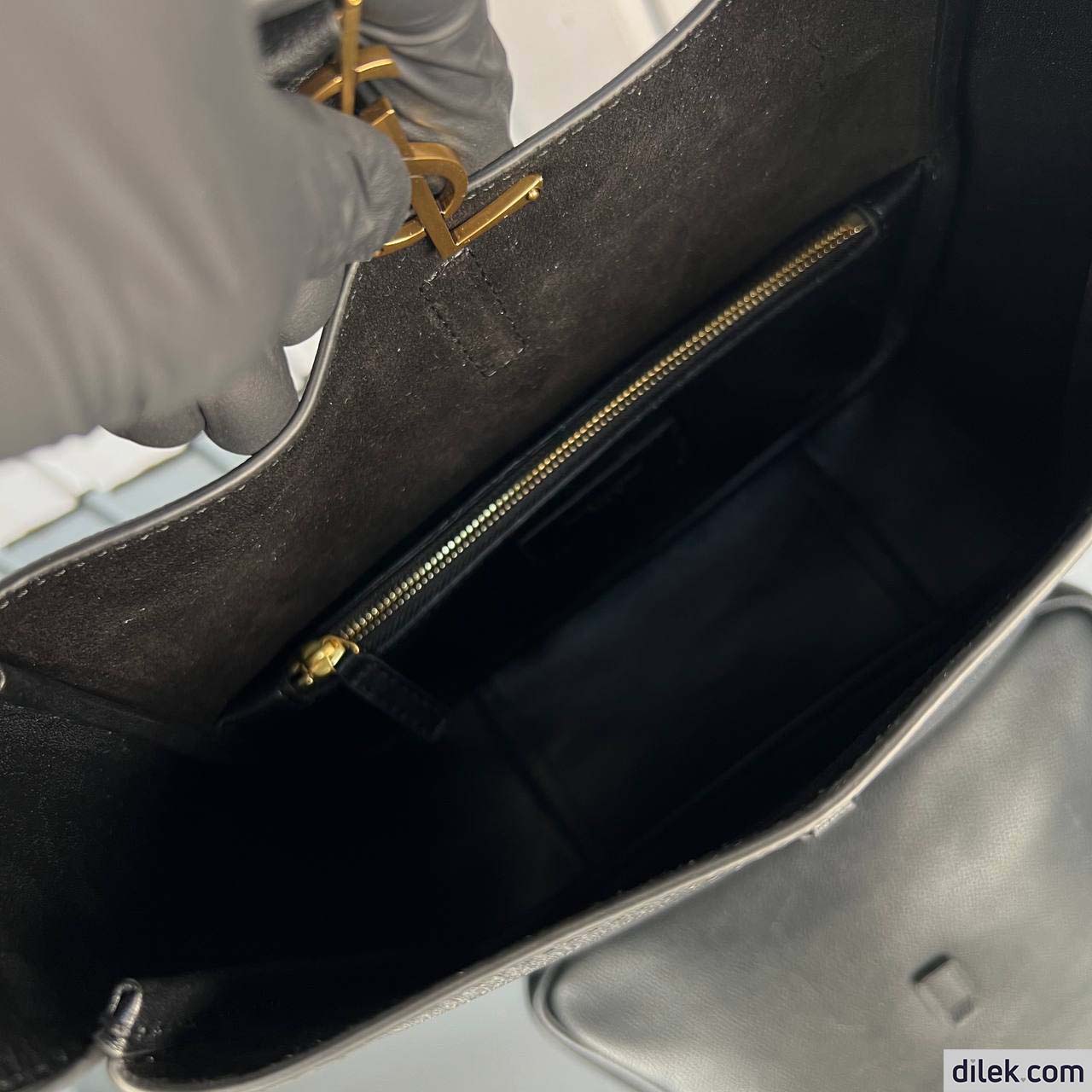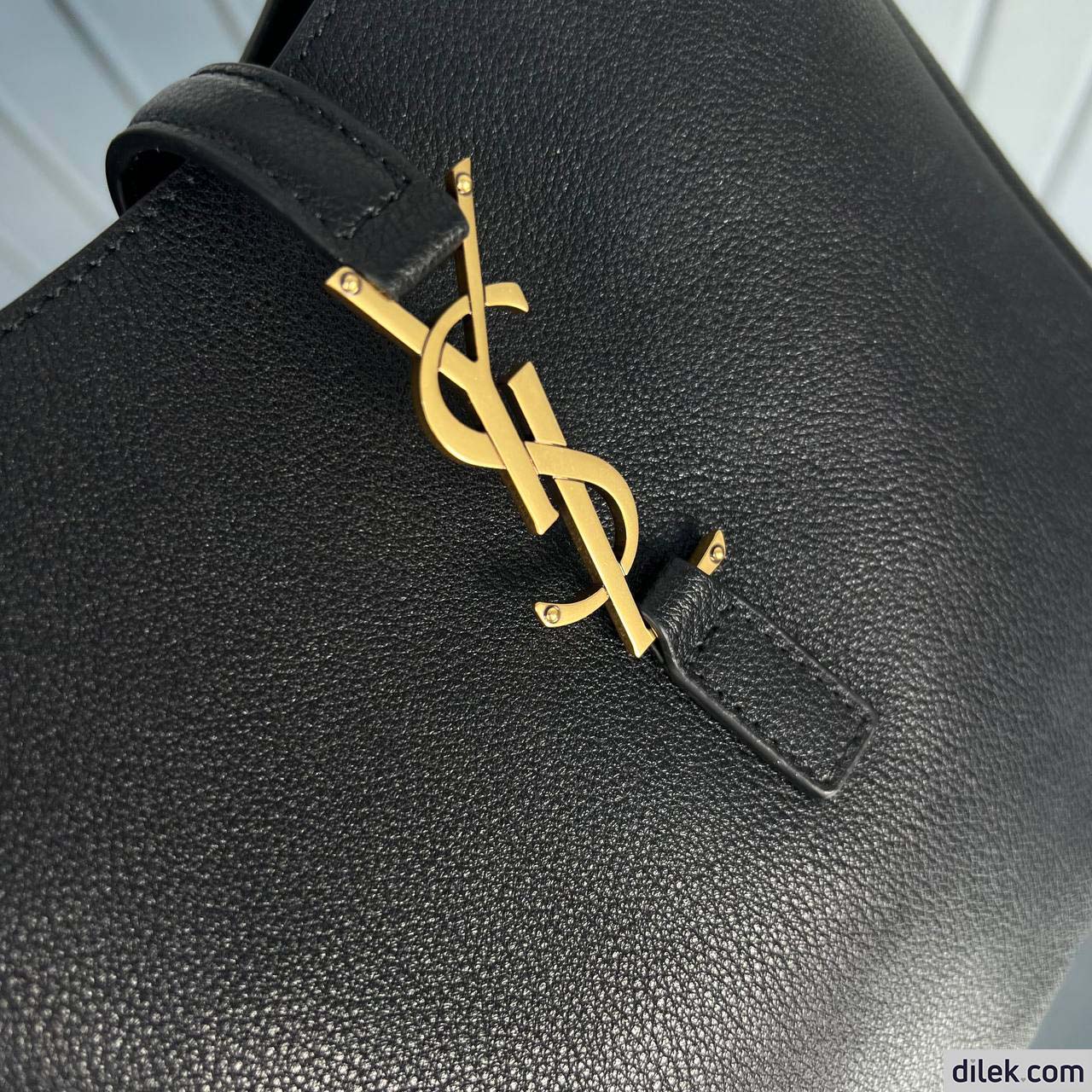 Bucket bag featuring the cassandre hook closure, top handle and an adjustable and detachable shoulder strap.