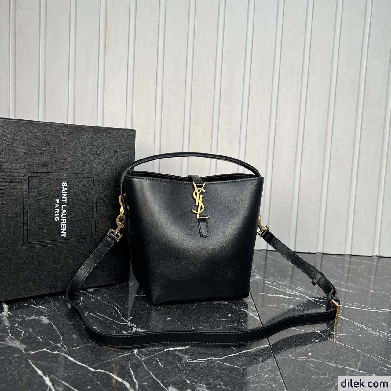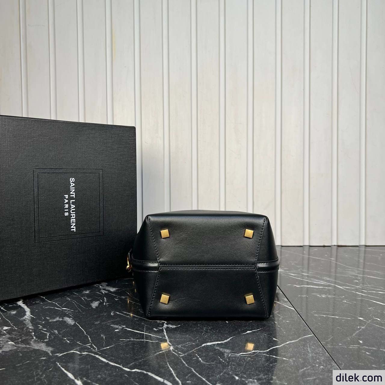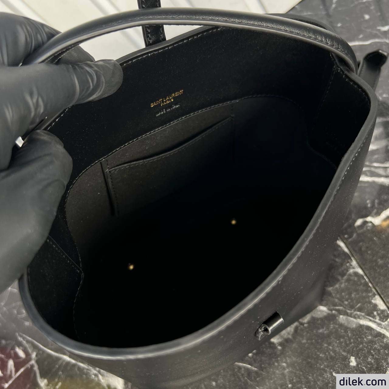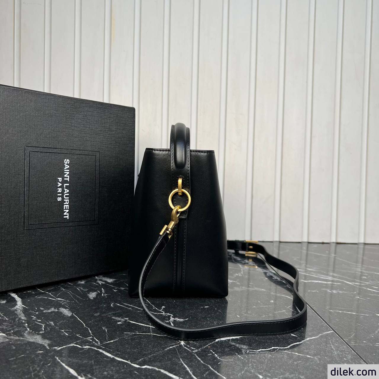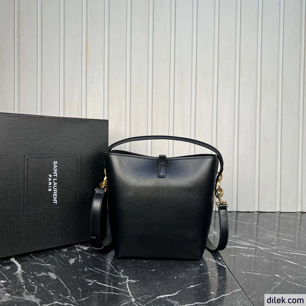 Bucket bag featuring the cassandre hook closure, top handle and an adjustable and detachable shoulder strap.