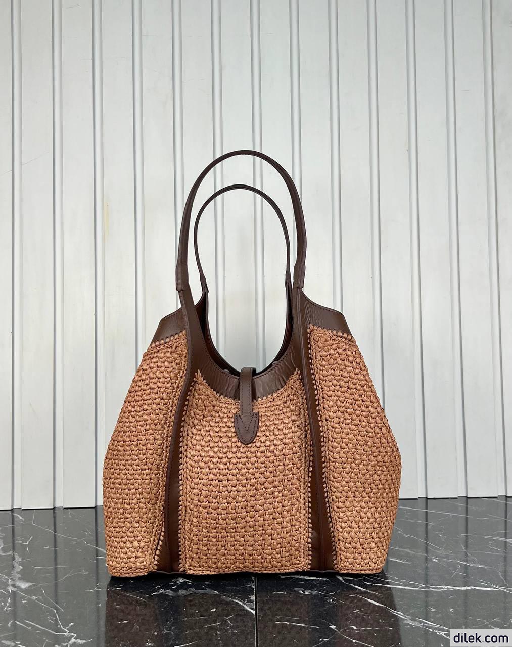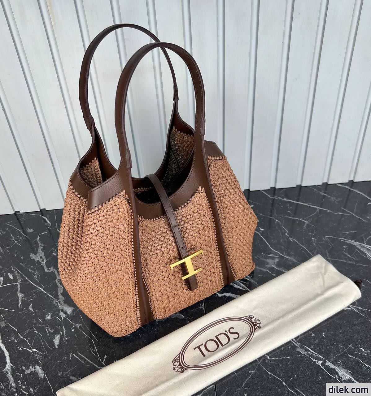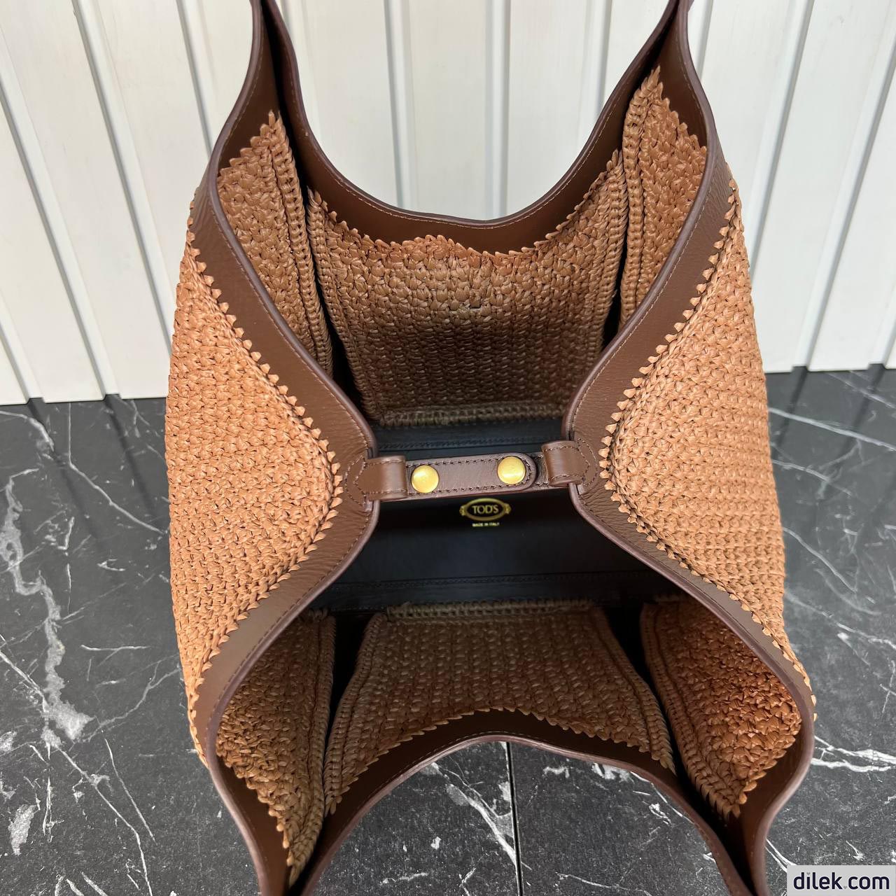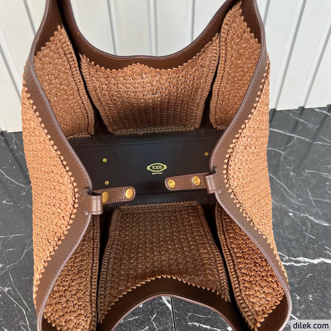 Tod's Timeless Shopping Bag in Raffia and Leather Medium