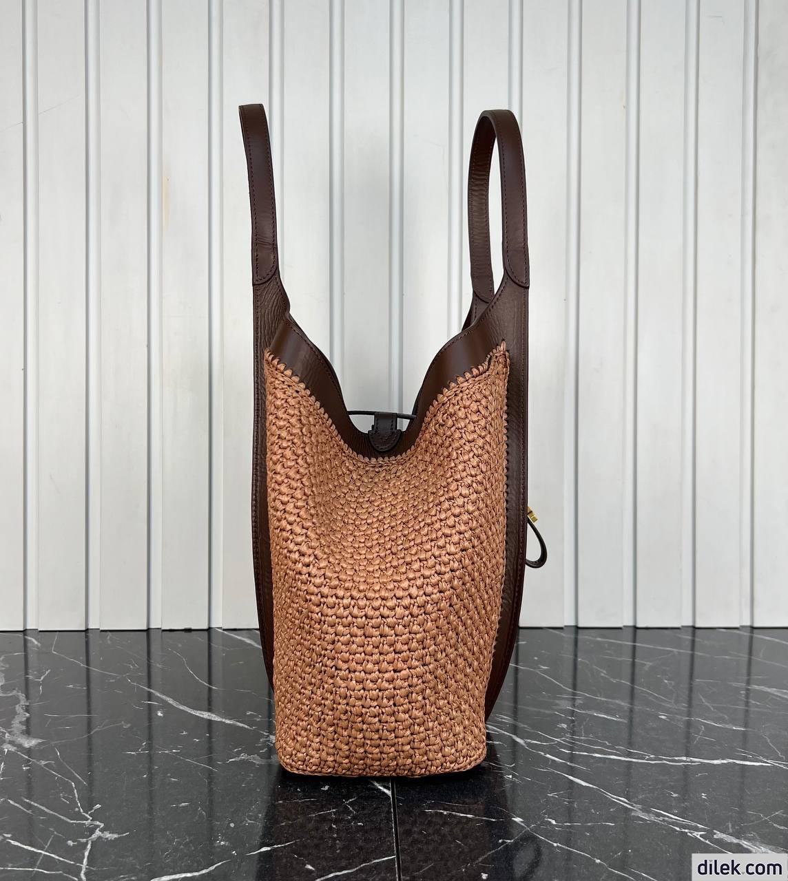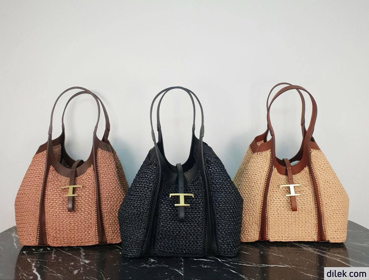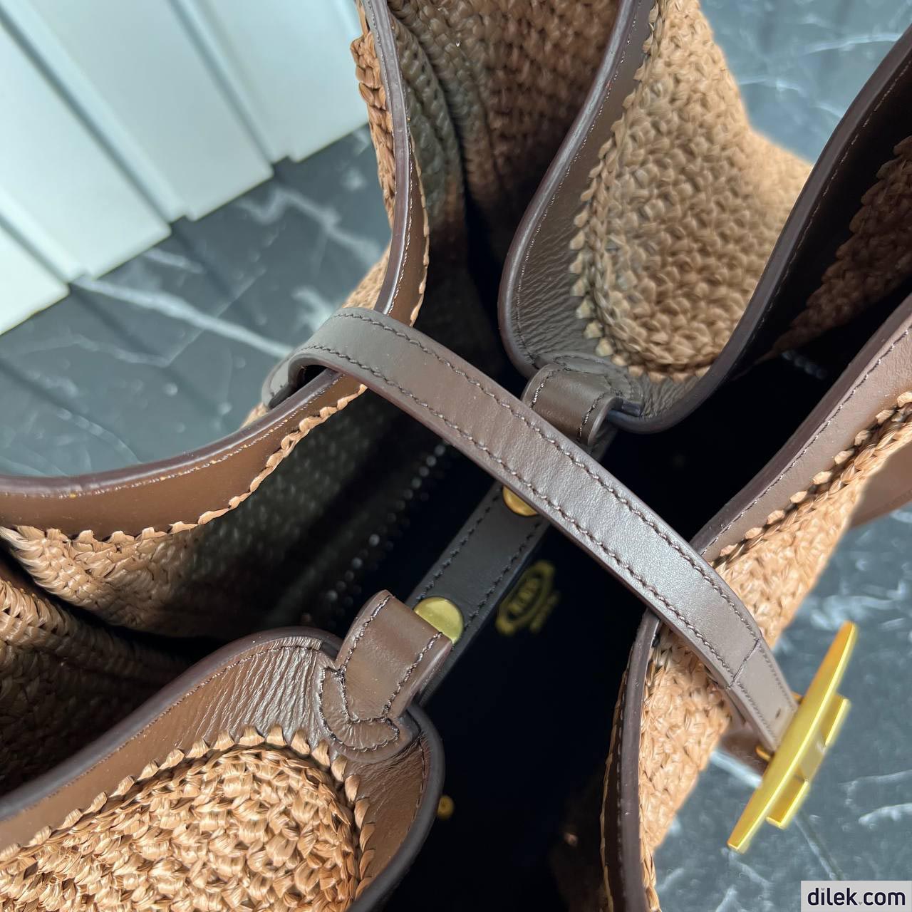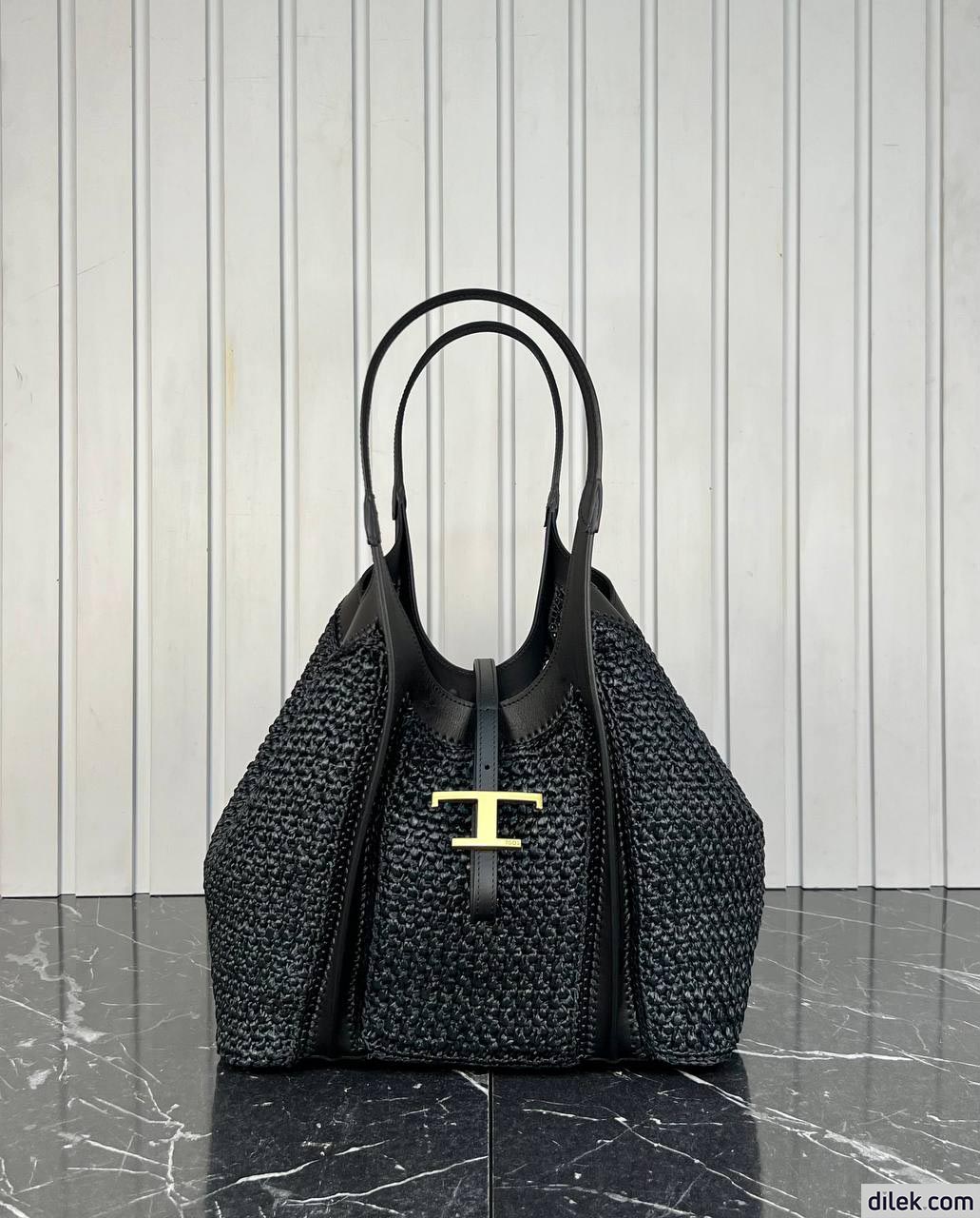 Tod's Timeless Shopping Bag in Raffia and Leather Medium