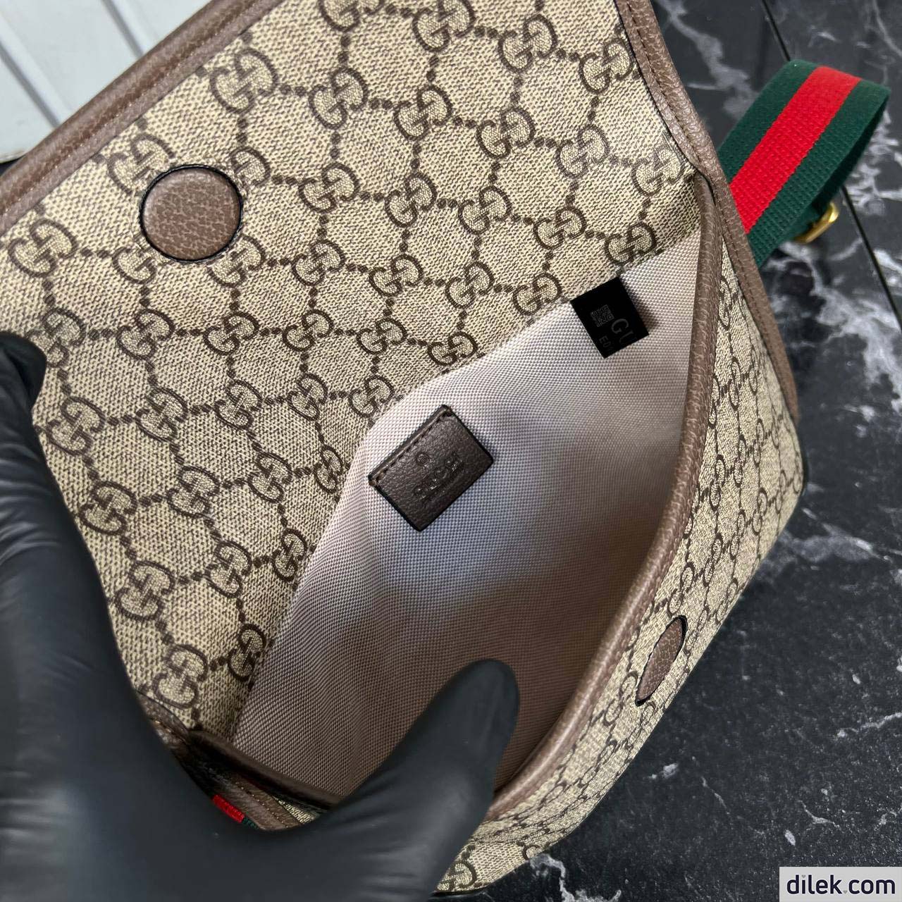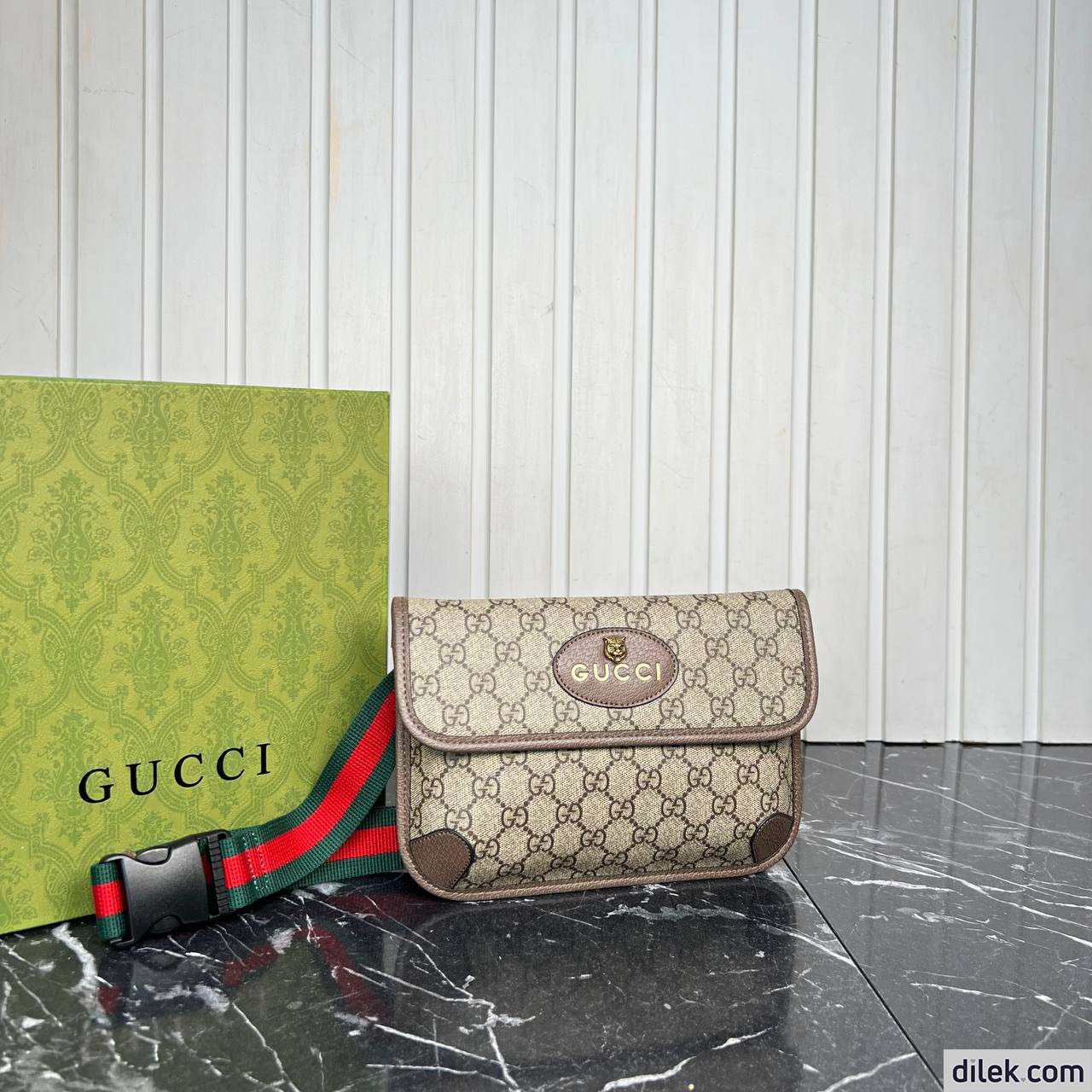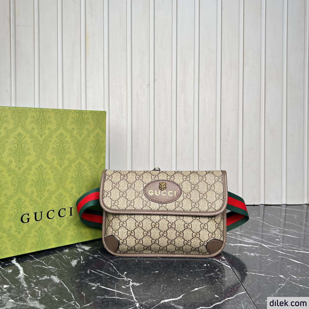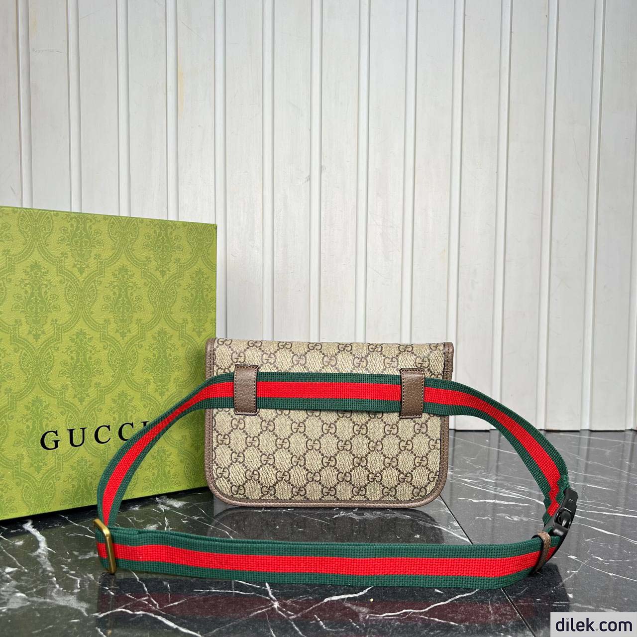 The belt bag in GG Supreme has a retro influenced design. Trimmed with leather, the style is meant to be worn along the waist, securing with a Web strap and buckle closure.