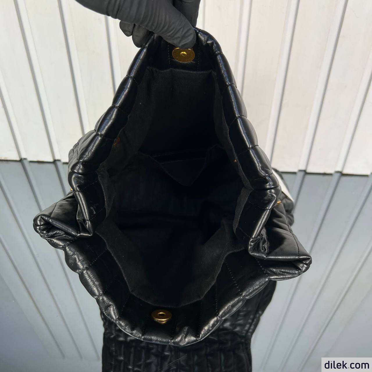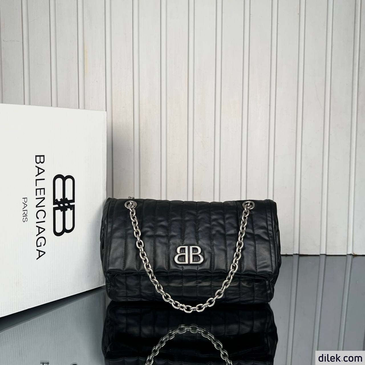 Monaco Chain Bag in black quilted thin calfskin, aged-silver hardware.