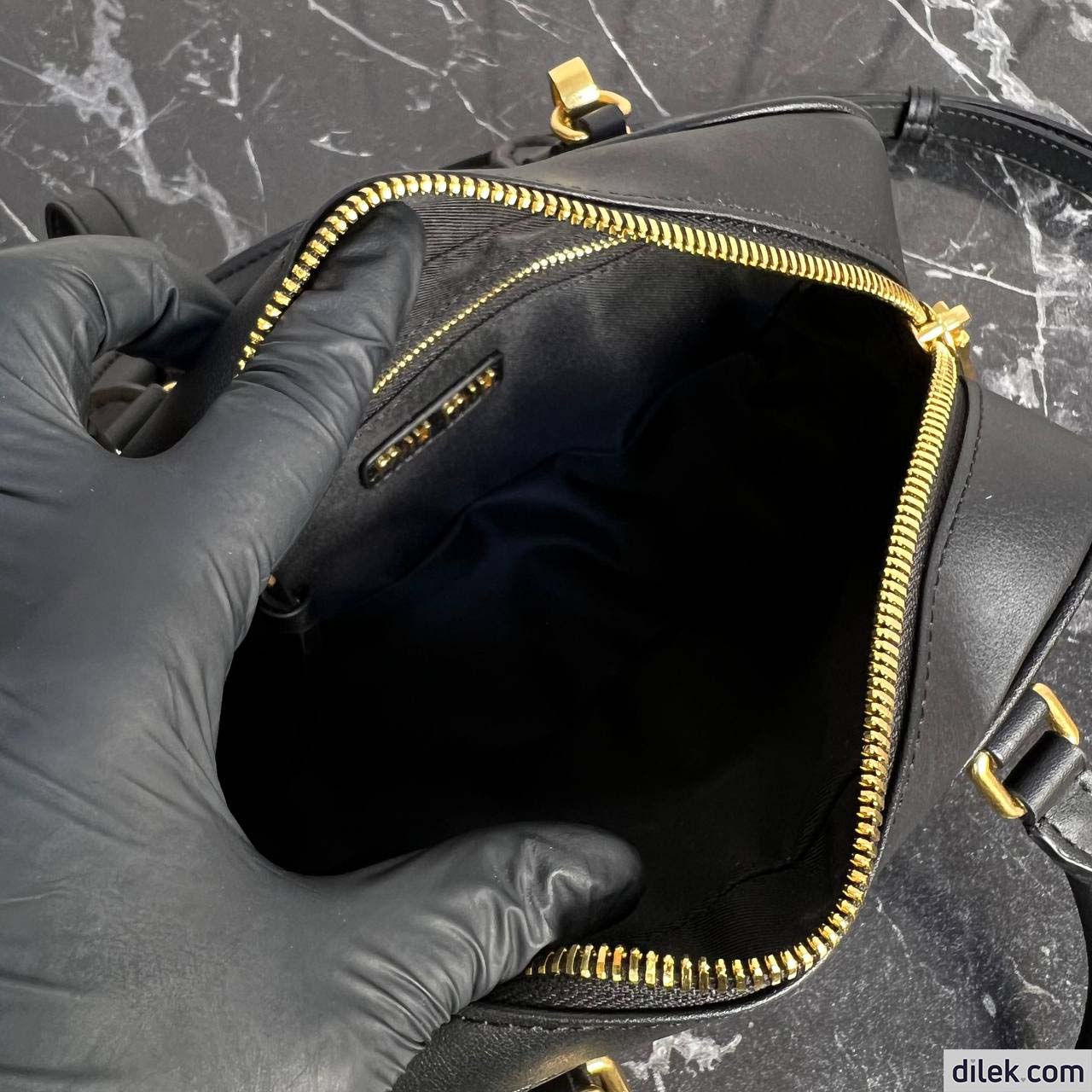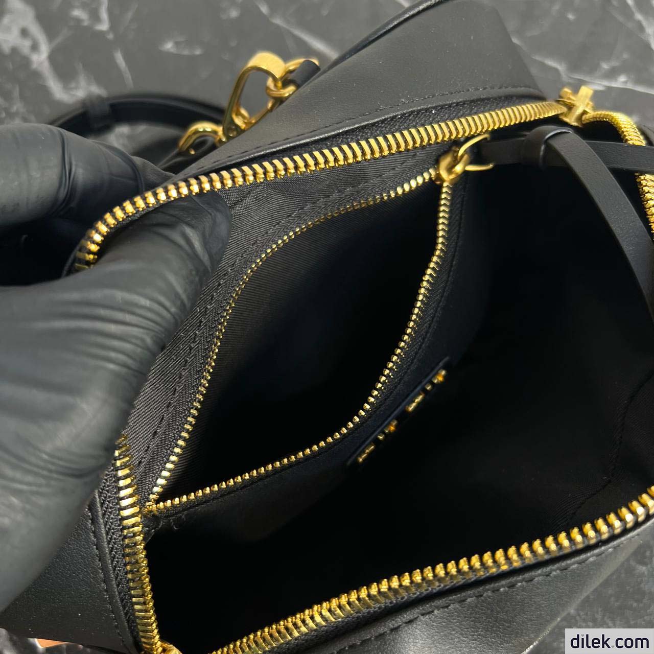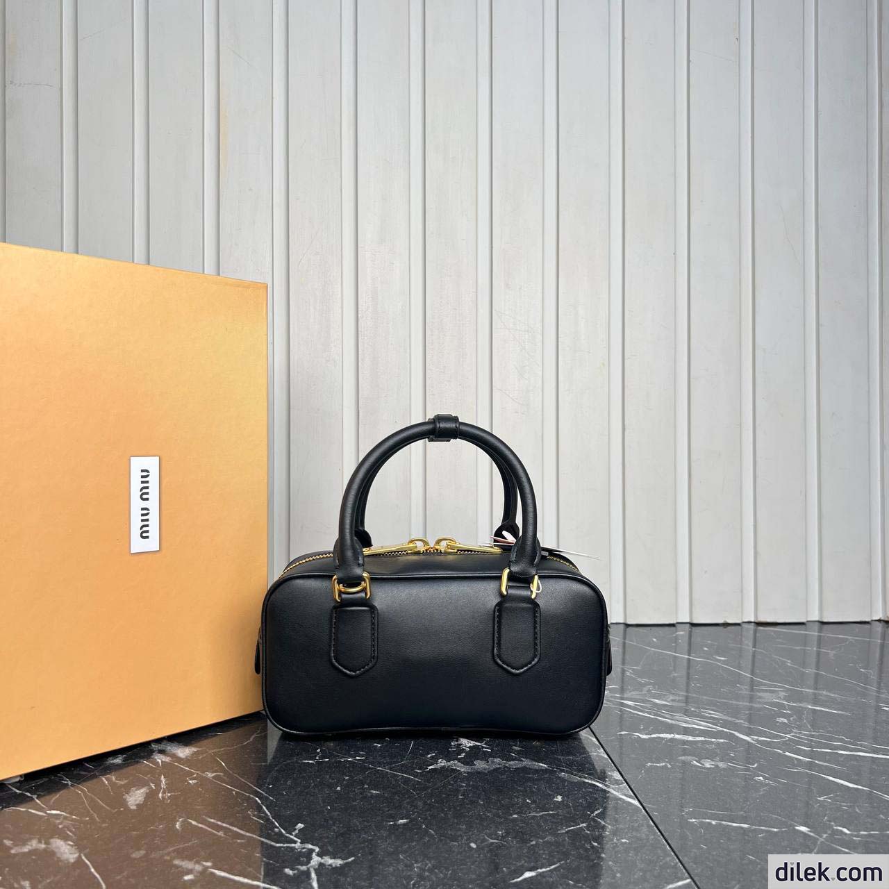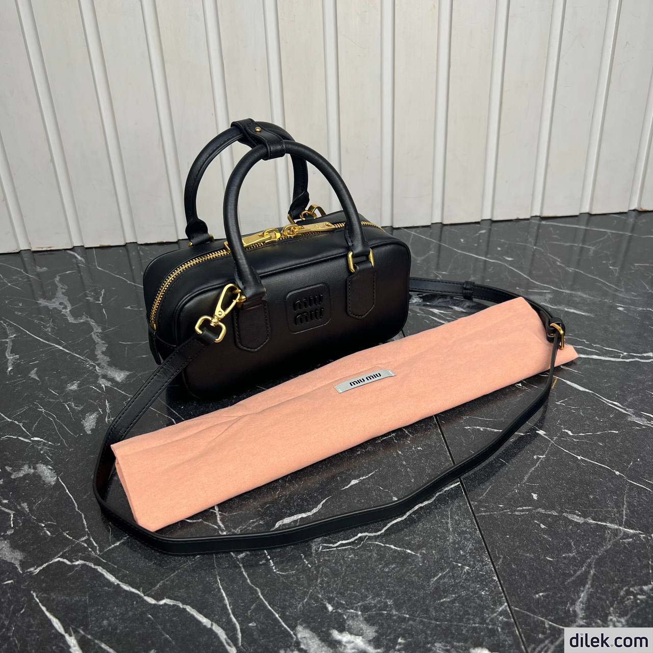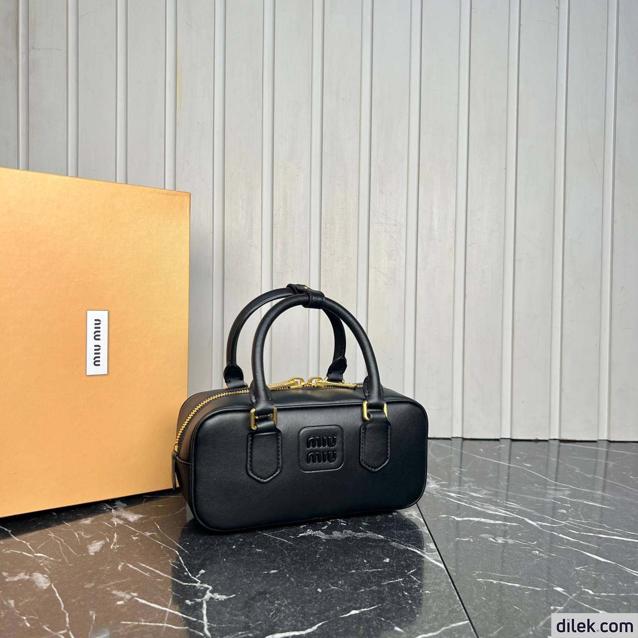 This Arcadie leather bag expresses a concept of fashion as a means for translating a reaction to current reality into a particular shape. The light padding gives a voluminous appearance and cosmopolitan style to the accessory. The lettering logo crosses the boundaries between function and decoration and helps define the distinctive and iconic aesthetic of the top-handle bag.
