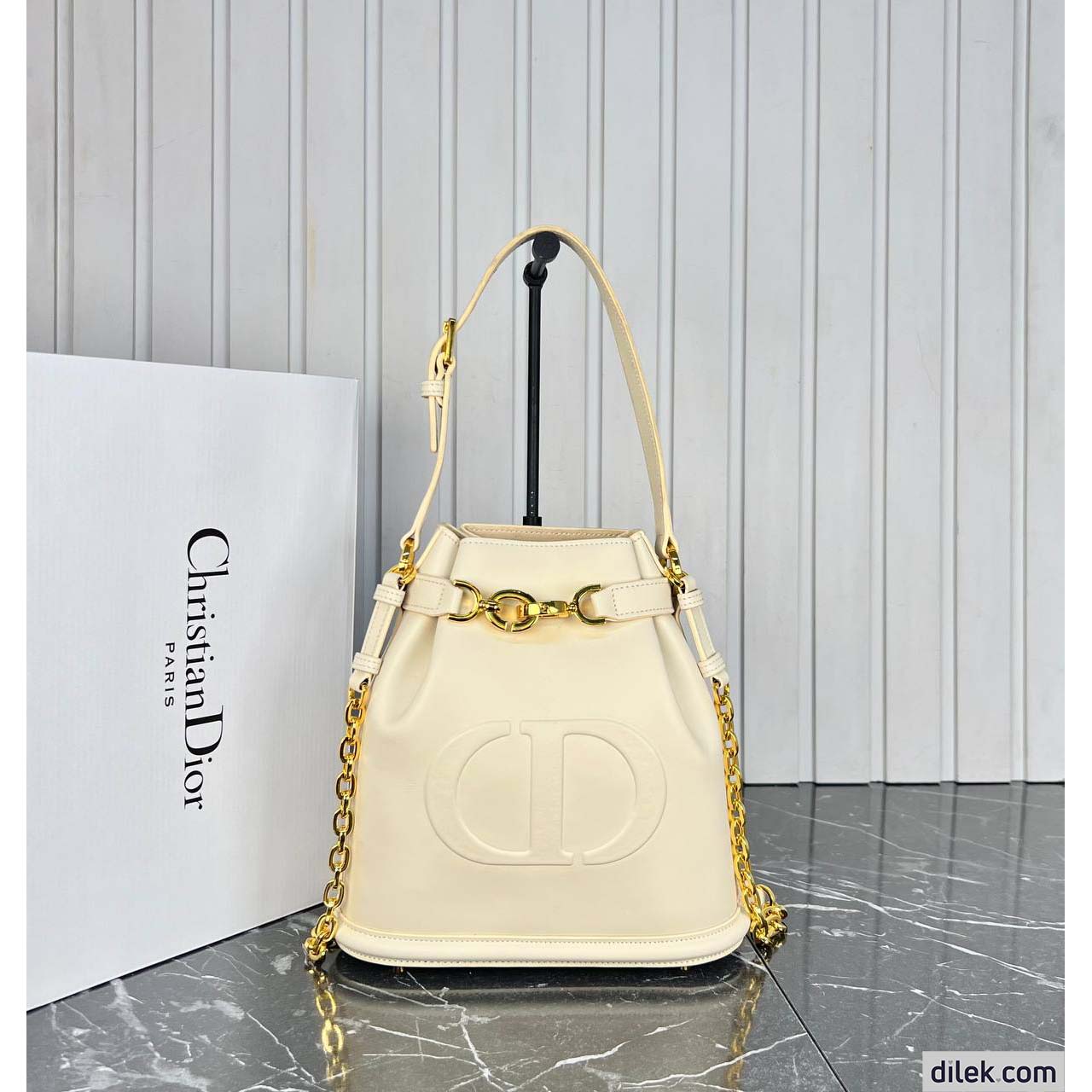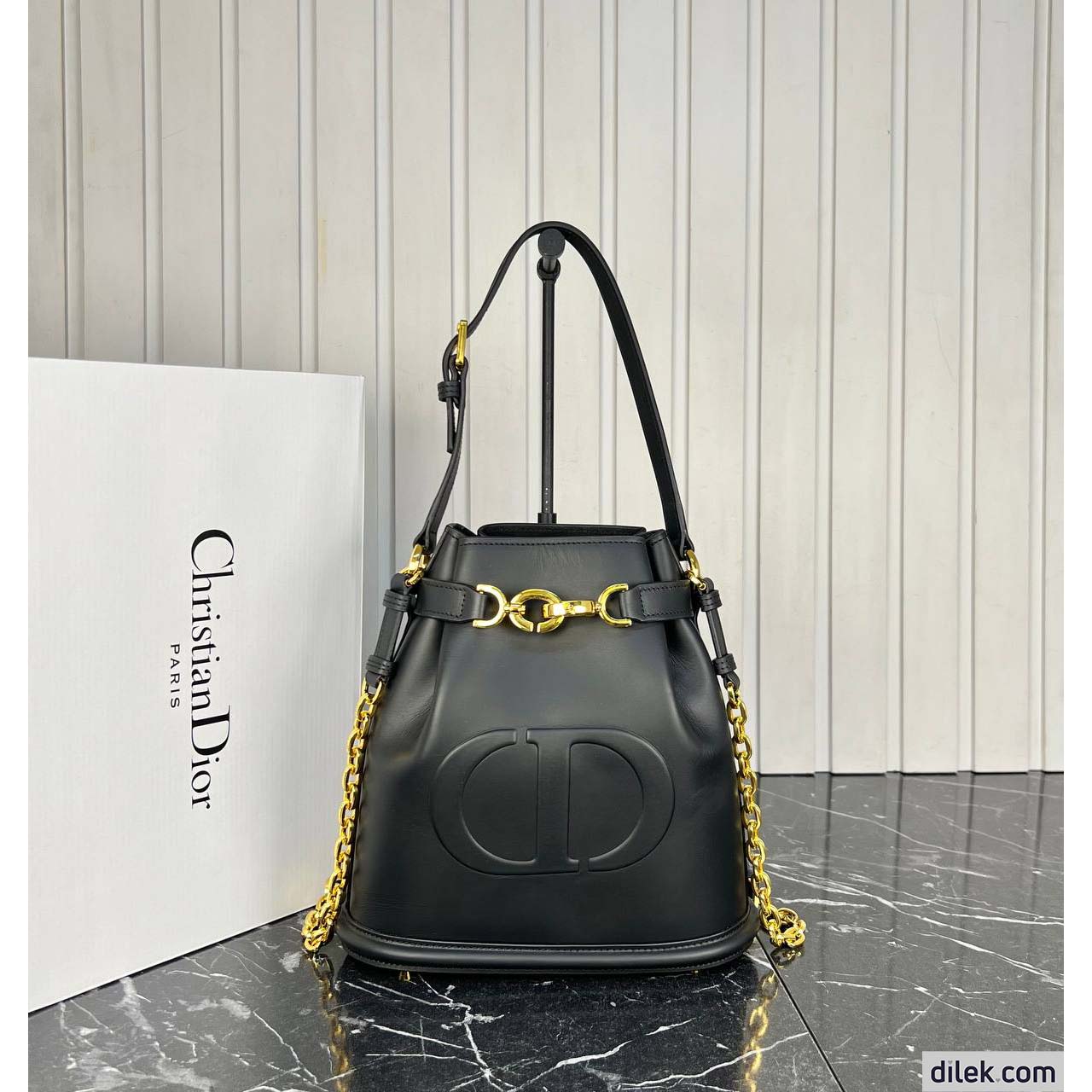 New for Fall 2023, the C'est Dior bag is an elegant and timeless creation. Crafted in black calfskin, it is distinguished by the embossed CD signature on the front, testifying to the House's savoir-faire. Thanks to its CD Lock closure with a twisting letter D, the bucket bag can keep the essentials secure. A top handle and adjustable, removable chain strap with a leather insert allow the medium bag to be comfortably carried by hand or worn over the shoulder.