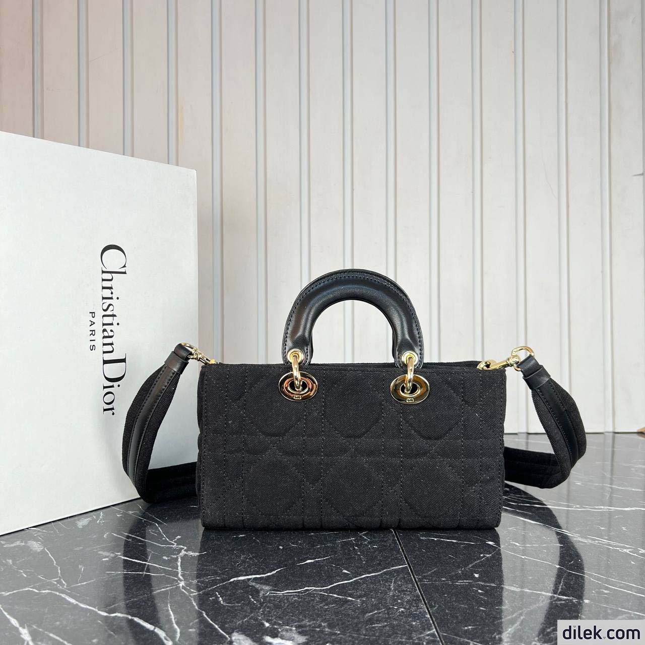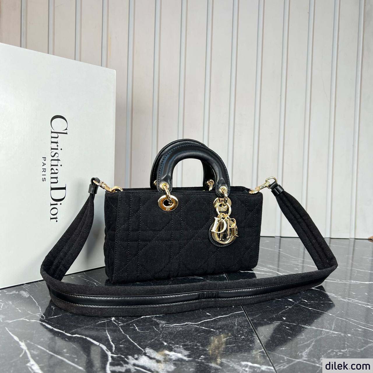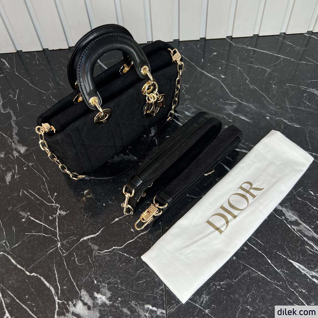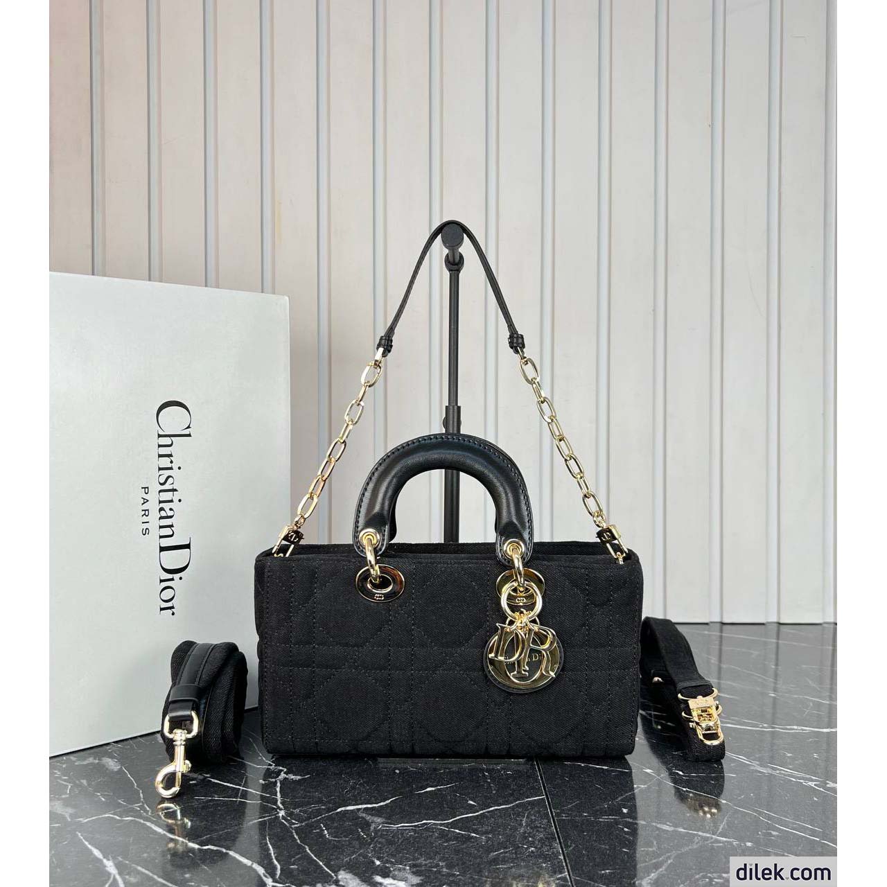The Lady D-Joy bag captures the House's vision of elegance and beauty by showcasing the iconic streamlined aesthetic of the Lady Dior line. Made in blue denim with Macrocannage stitching, the refined and timeless style is enhanced by D.I.O.R. charms embellished in transparent tonal resin. Featuring one removable chain shoulder strap and another adjustable and removable denim shoulder strap, the Lady D-Joy bag can be carried by hand, worn over the shoulder or crossbody as a daily companion.
