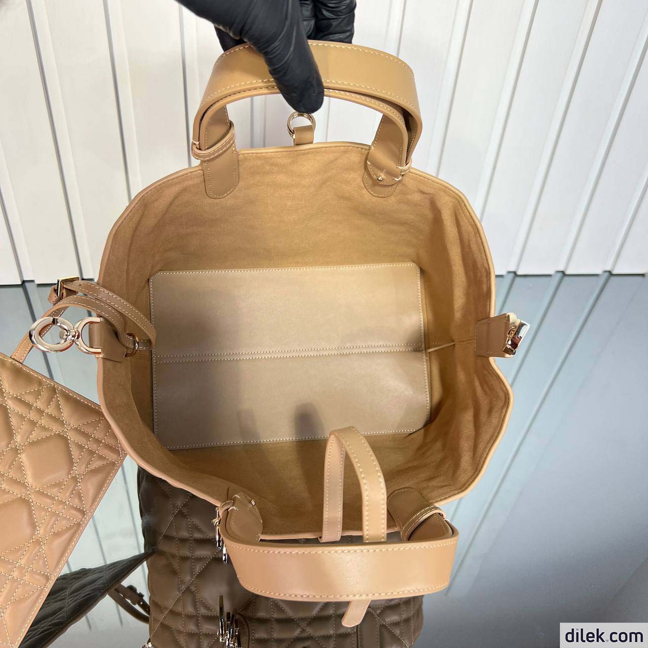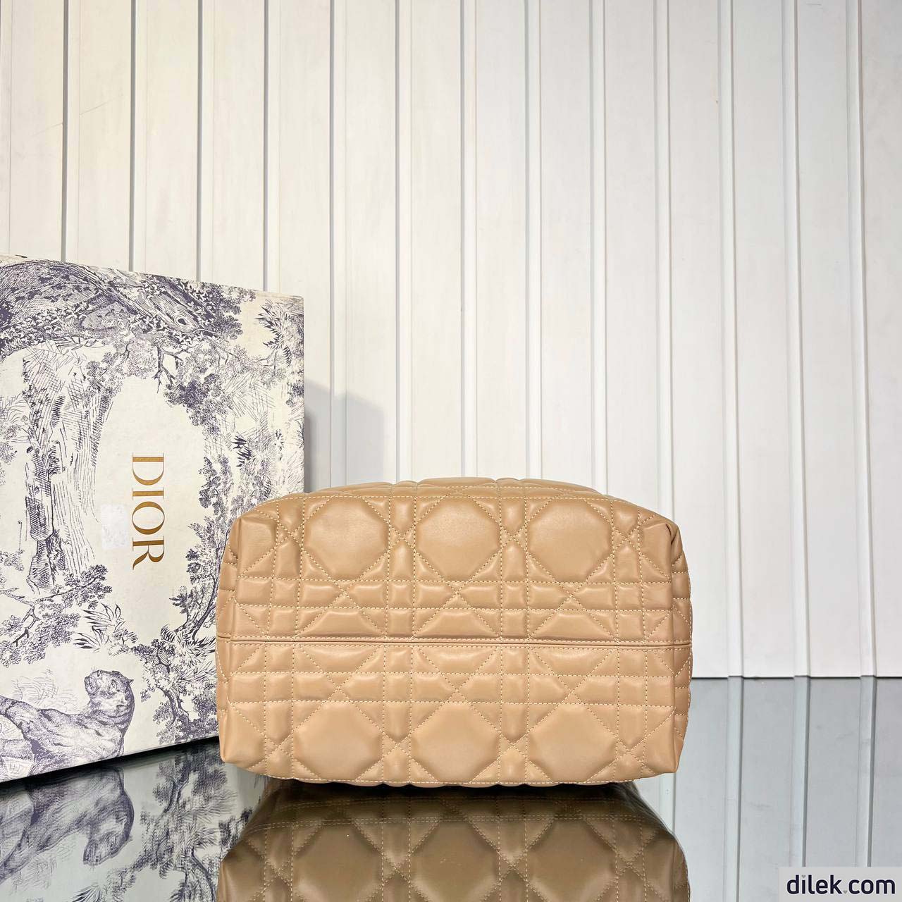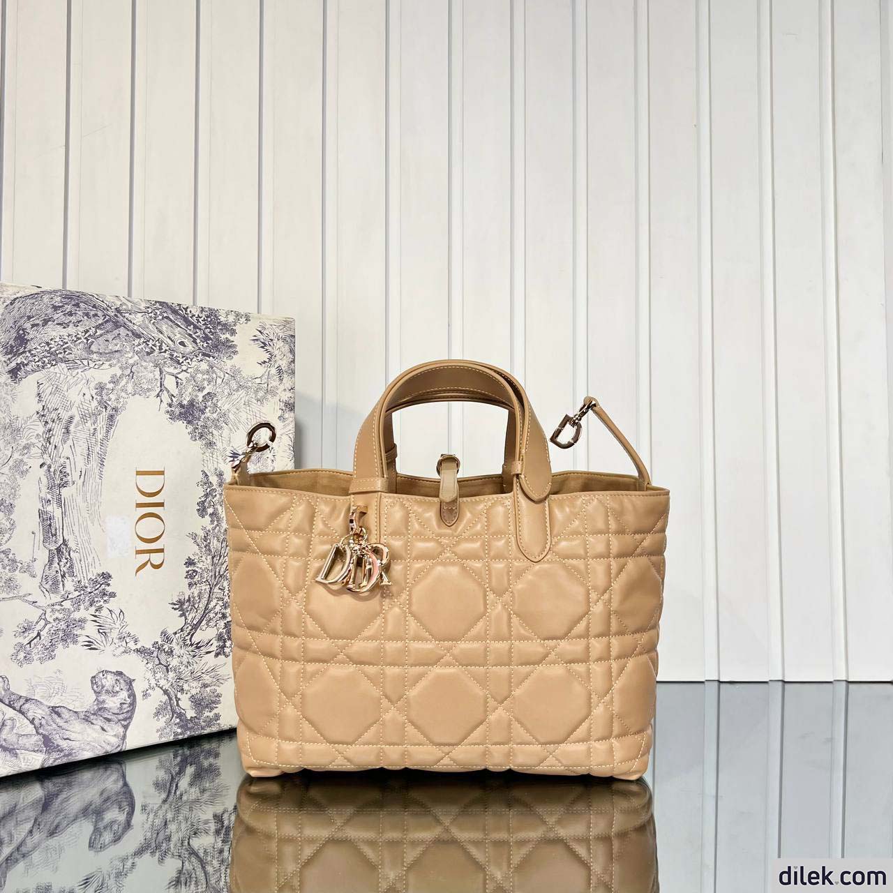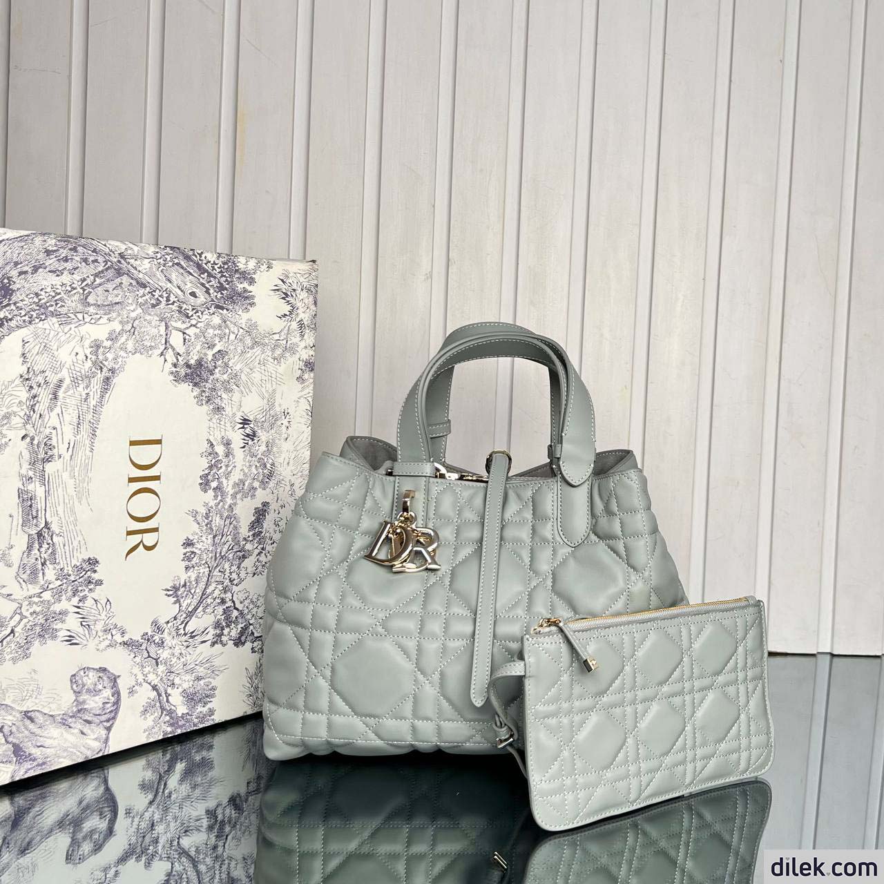 Unveiled at the Spring-Summer 2023 Fashion Show, the Dior Toujours bag is distinguished by a casual and practical design. Crafted in black calfskin with Macrocannage topstitching, it showcases a spacious interior compartment with a matching pouch to organize the essentials. Its thin leather strap closure keeps items secure while the D of the CD Lock clasp twists to adjust the sides and enhance the bag's silhouette. The leather handles can be adjusted using the small notches in order to be able to carry the medium bag by hand or wear it over the shoulder.