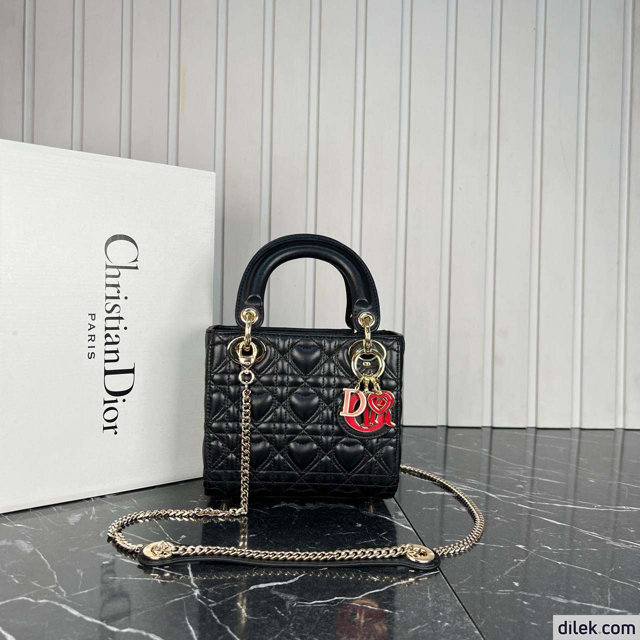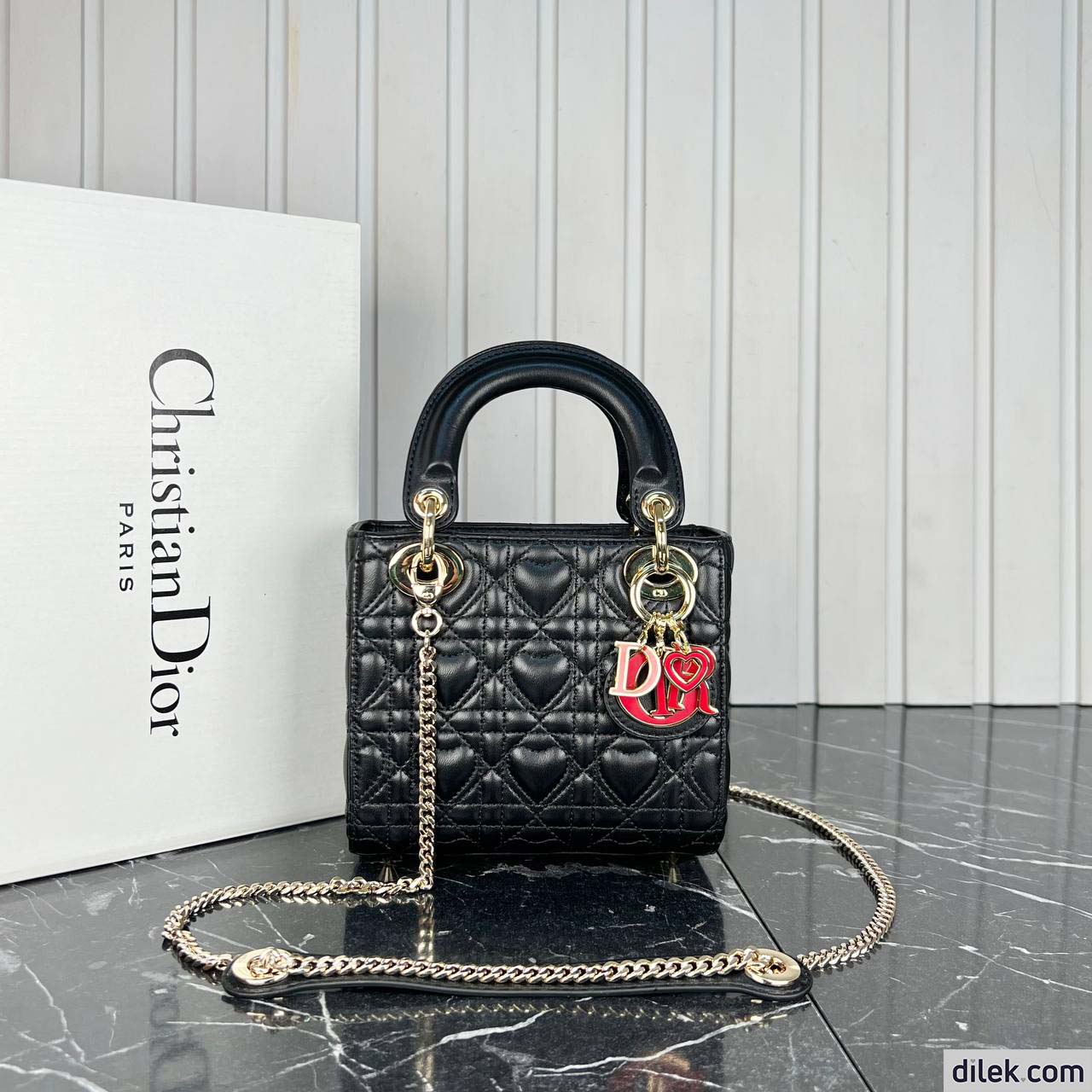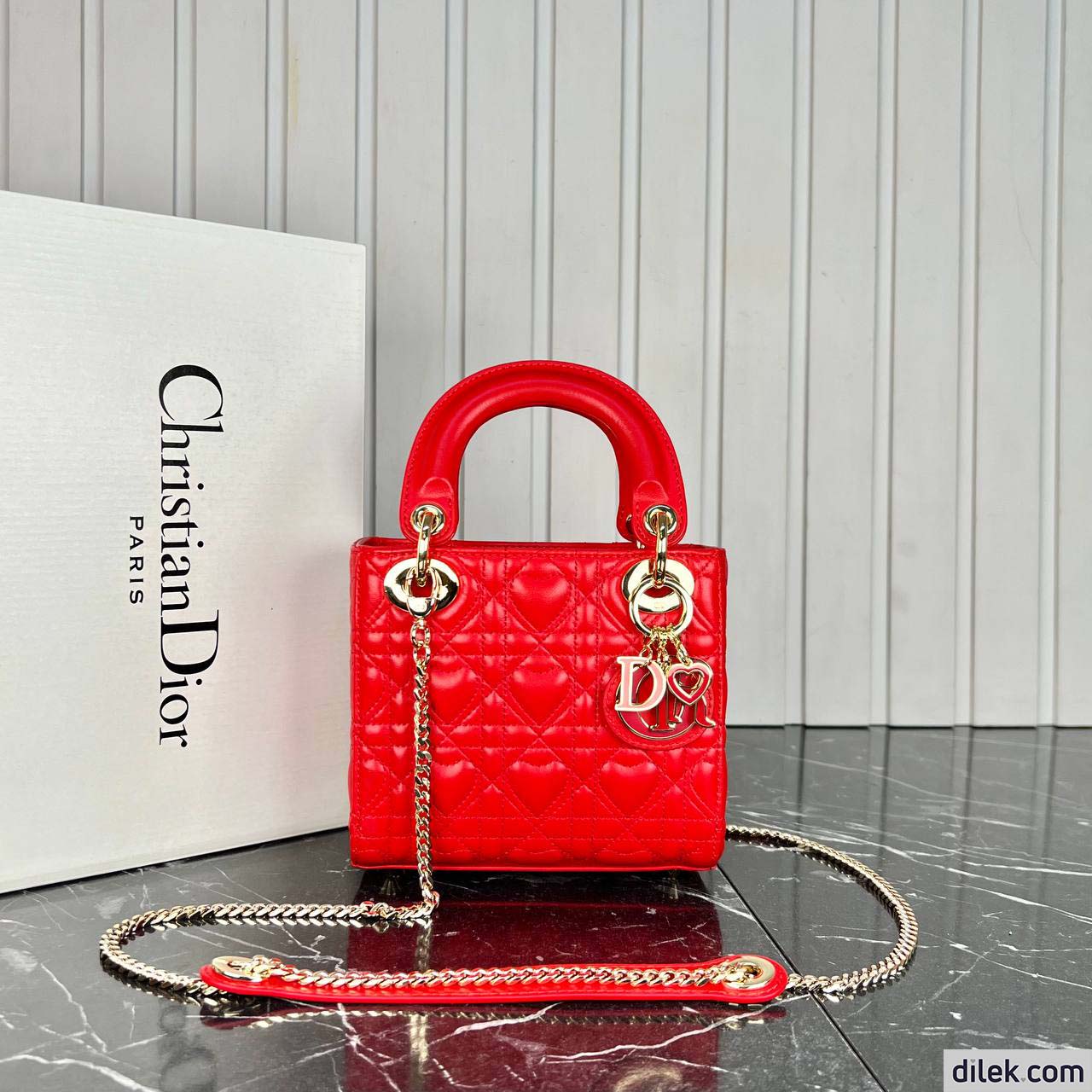 The Lady Dior bag epitomizes the House's vision of elegance and beauty. Refined and sleek, the timeless creation is crafted in latte lambskin and covered with Cannage stitching, creating an instantly recognizable quilted texture. The pale gold-finish metal D.I.O.R. charms embellish and illuminate its silhouette. Featuring a removable chain shoulder strap, the miniature Lady Dior bag can be carried by hand or worn crossbody as an ideal evening wear companion.