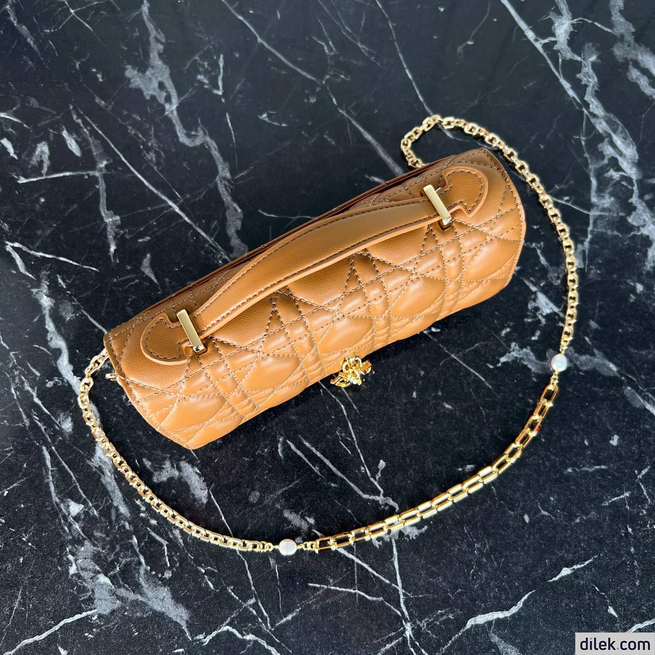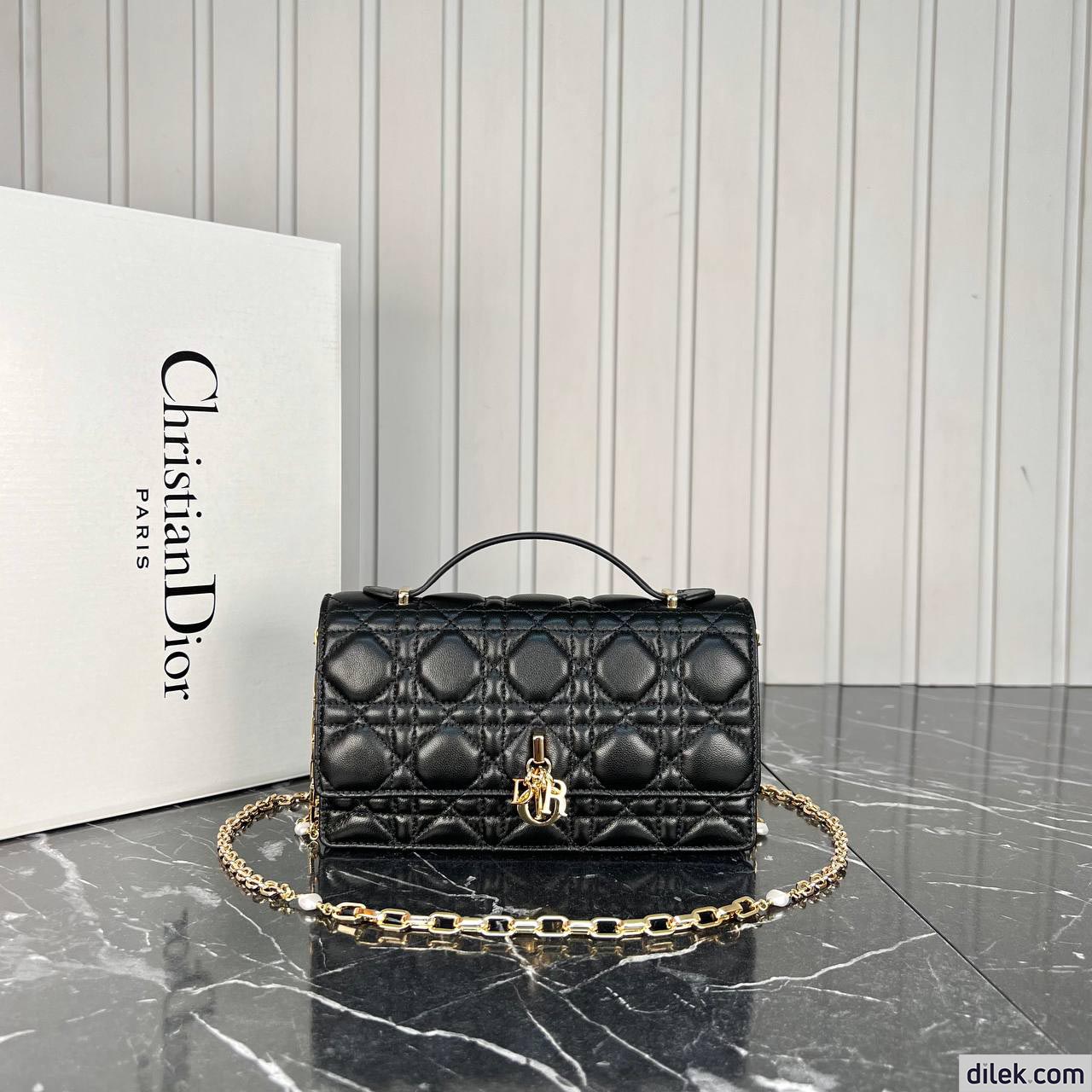 New for the Cruise 2024 collection, the Miss Dior Top Handle bag presents an elegant and functional design. The bag is crafted in black lambskin with Cannage stitching and features a flap enhanced by a D.I.O.R. charm, revealing two compartments and a zipped pouch to accommodate all the essentials, day or night. The signature Top Handle is completed by a removable chain strap with a leather insert, allowing it to be comfortably carried by hand, worn over the shoulder or crossbody.