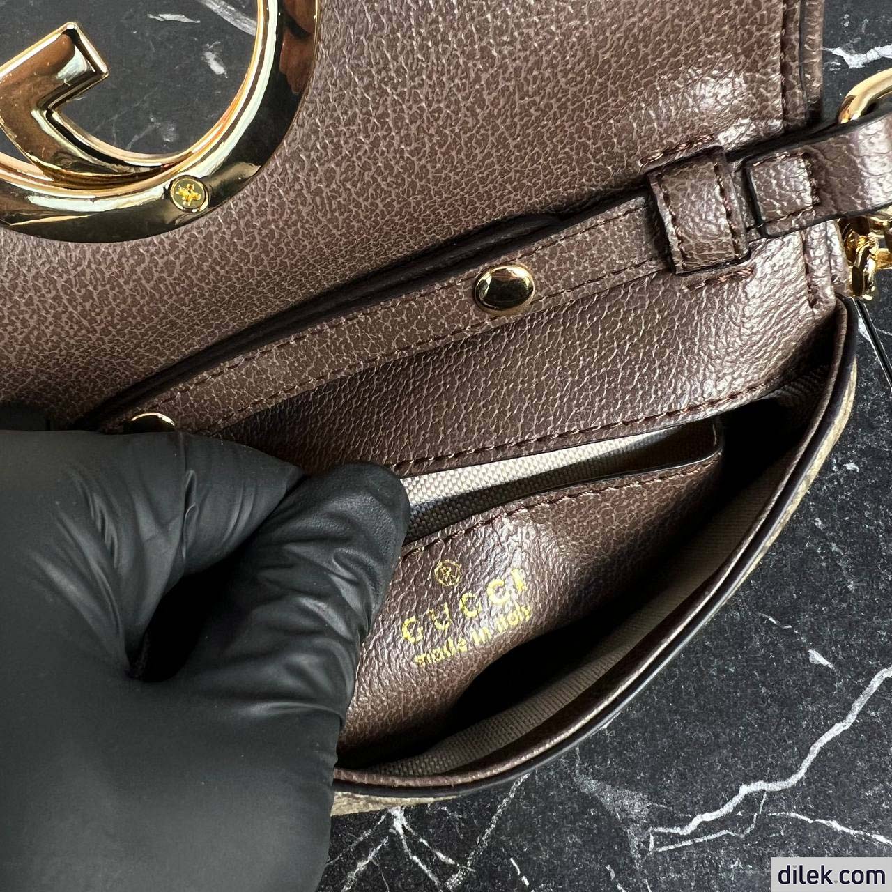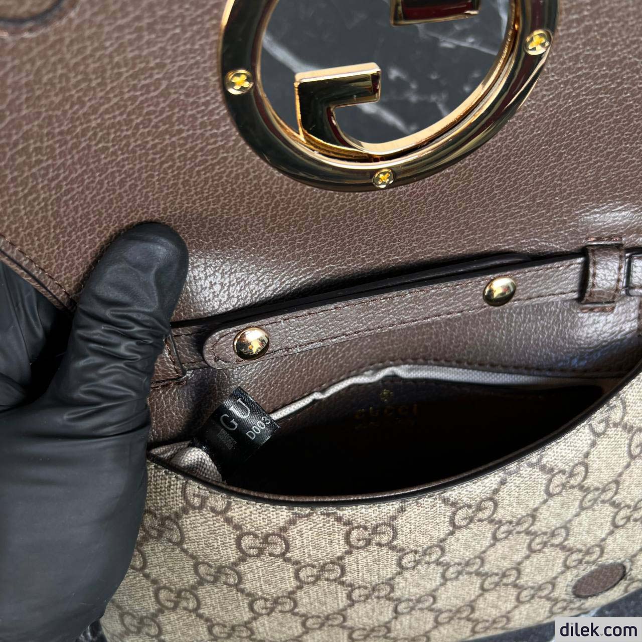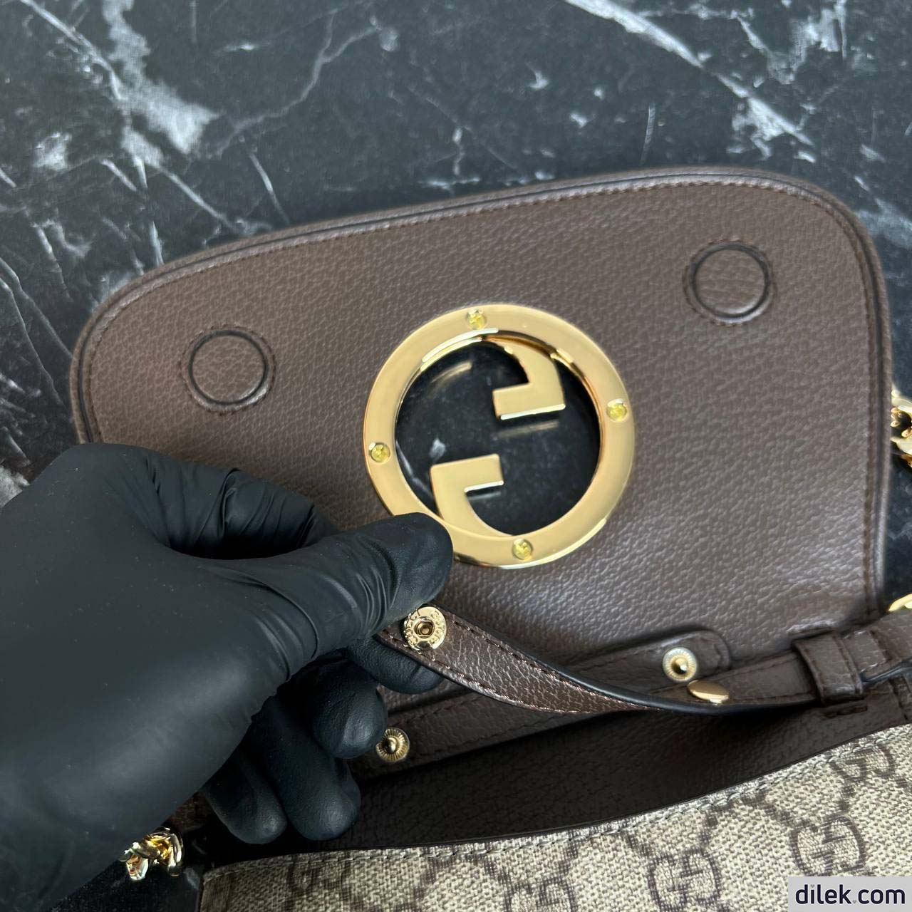Coming from the House's archives, a geometrically shaped version of the Interlocking G appears atop a series of belts, handbags and shoes. The gold-toned hardware adds a defined vintage feel to the style, enriching the design with a timeless feel mirroring the Hollywood glamour that shaped the fashion show. The GG Supreme bag is completed by two interchangeable shoulder straps, in tonal leather or a gold-toned chain.