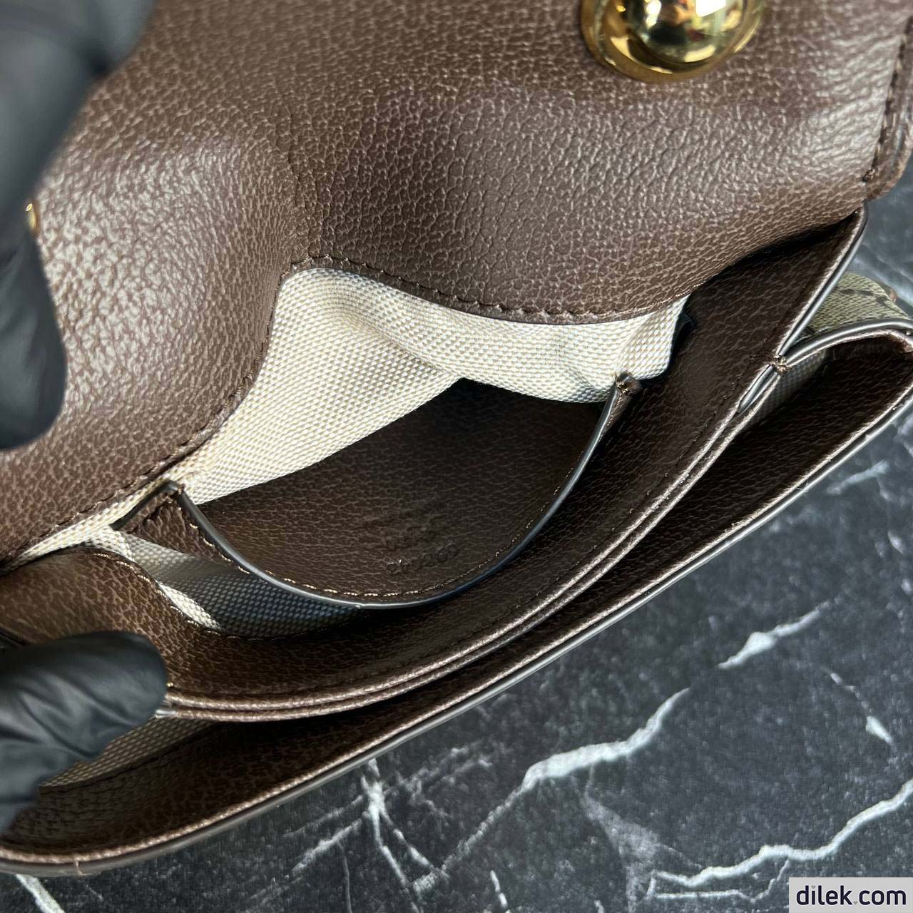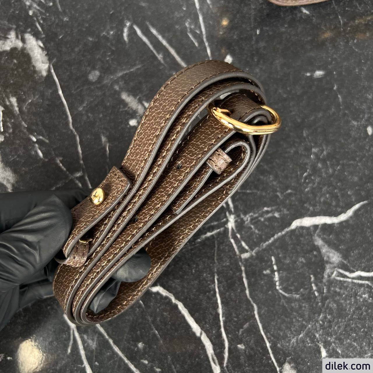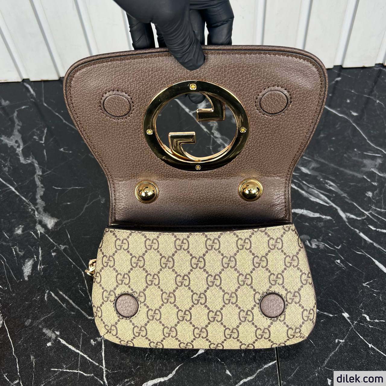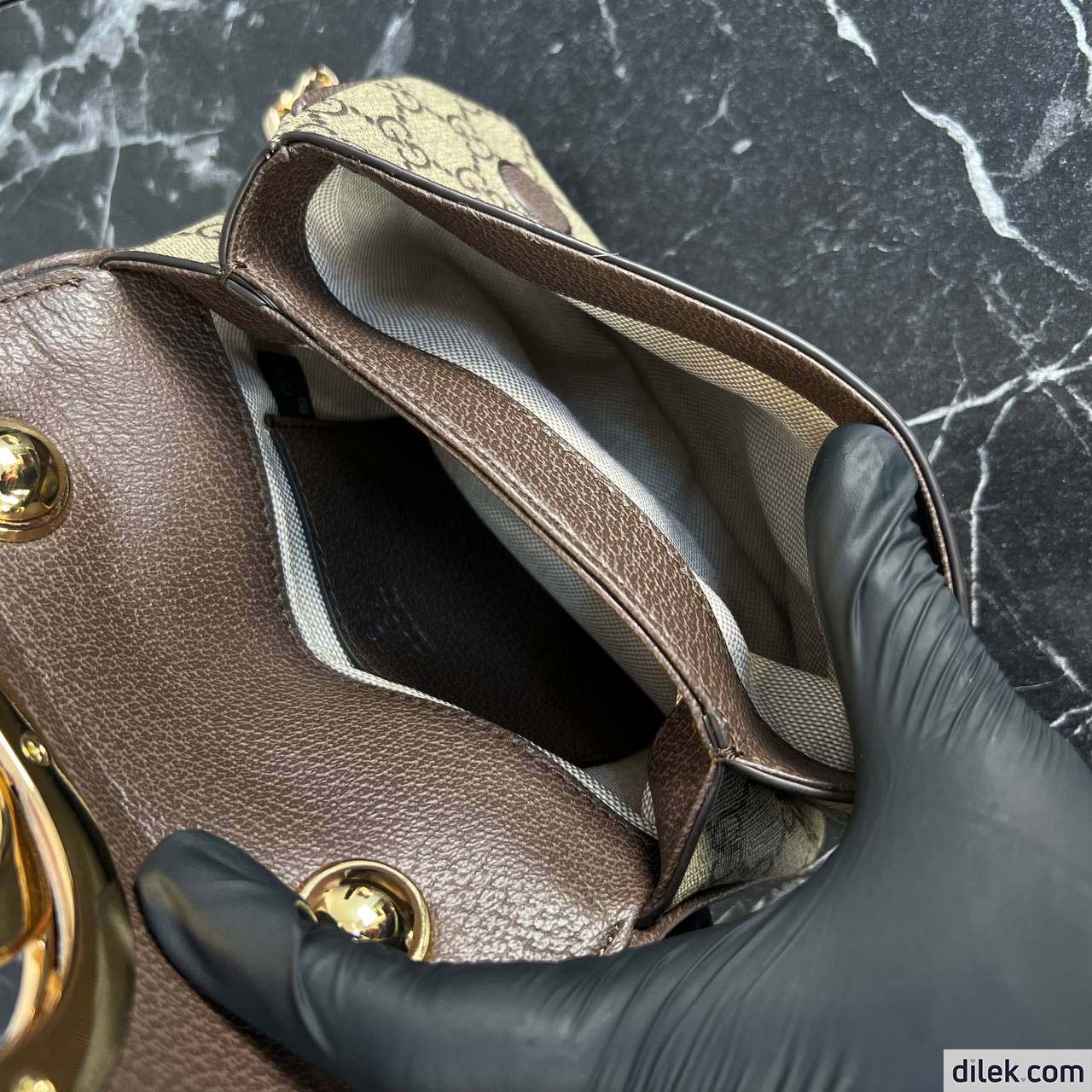 Coming from the House's archives, a geometrically shaped version of the Interlocking G appears atop a series of belts, handbags and shoes. The gold-toned hardware adds a defined vintage feel to the style, enriching the design with a timeless feel mirroring the Hollywood glamour that shaped the fashion show. The GG Supreme bag is completed by two interchangeable shoulder straps, in tonal leather or a gold-toned chain.