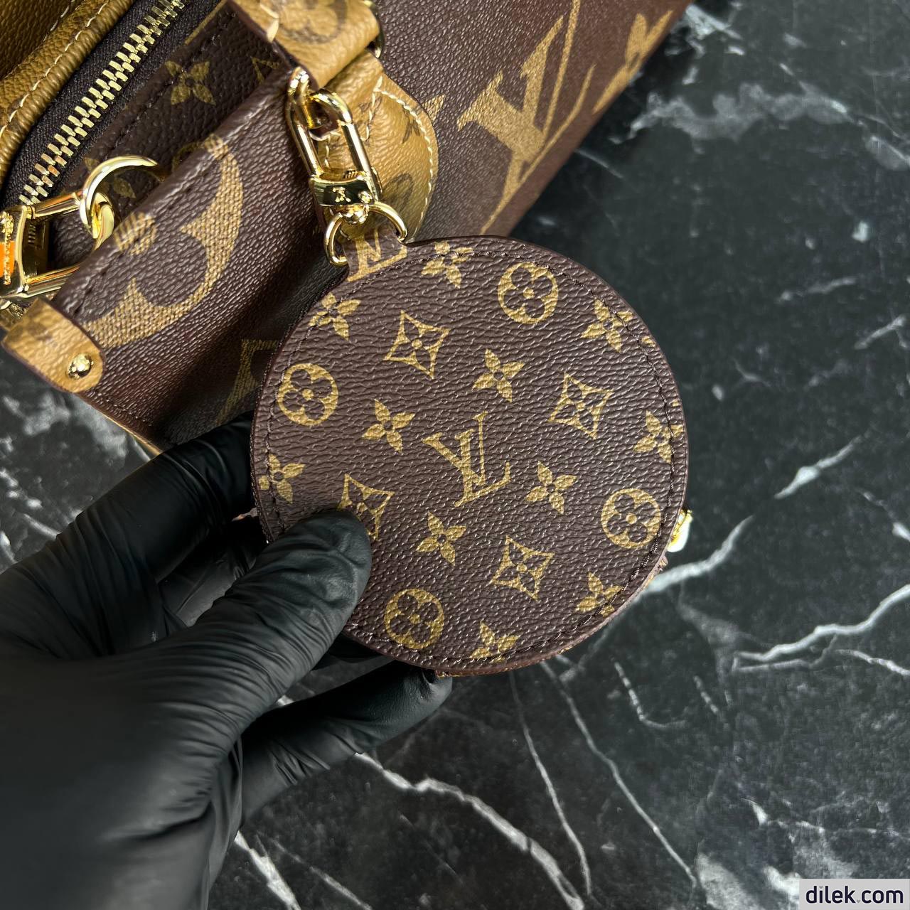 The Maison reinterprets the OnTheGo tote this season with a new east-west shape and a modern mix of Giant Monogram and Monogram Reverse canvas. Fitted with two Toron top handles and a wide, detachable strap, this beautifully proportioned bag can be styled in a variety of ways. A removable round coin purse completes this versatile design.