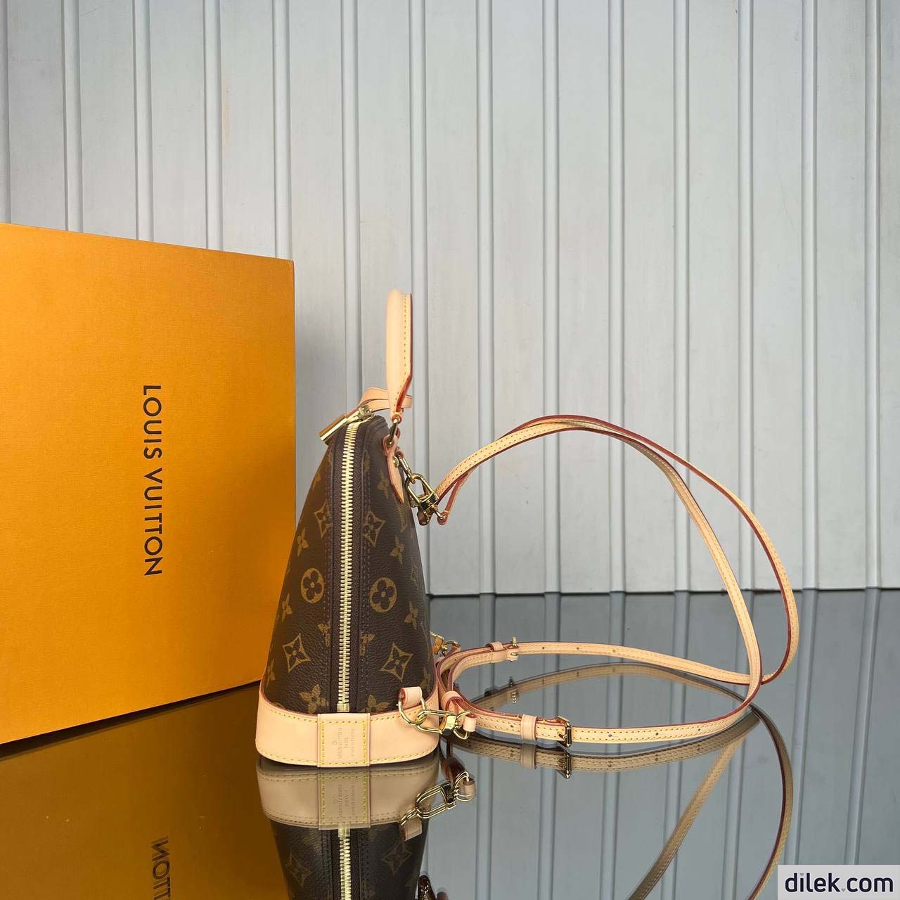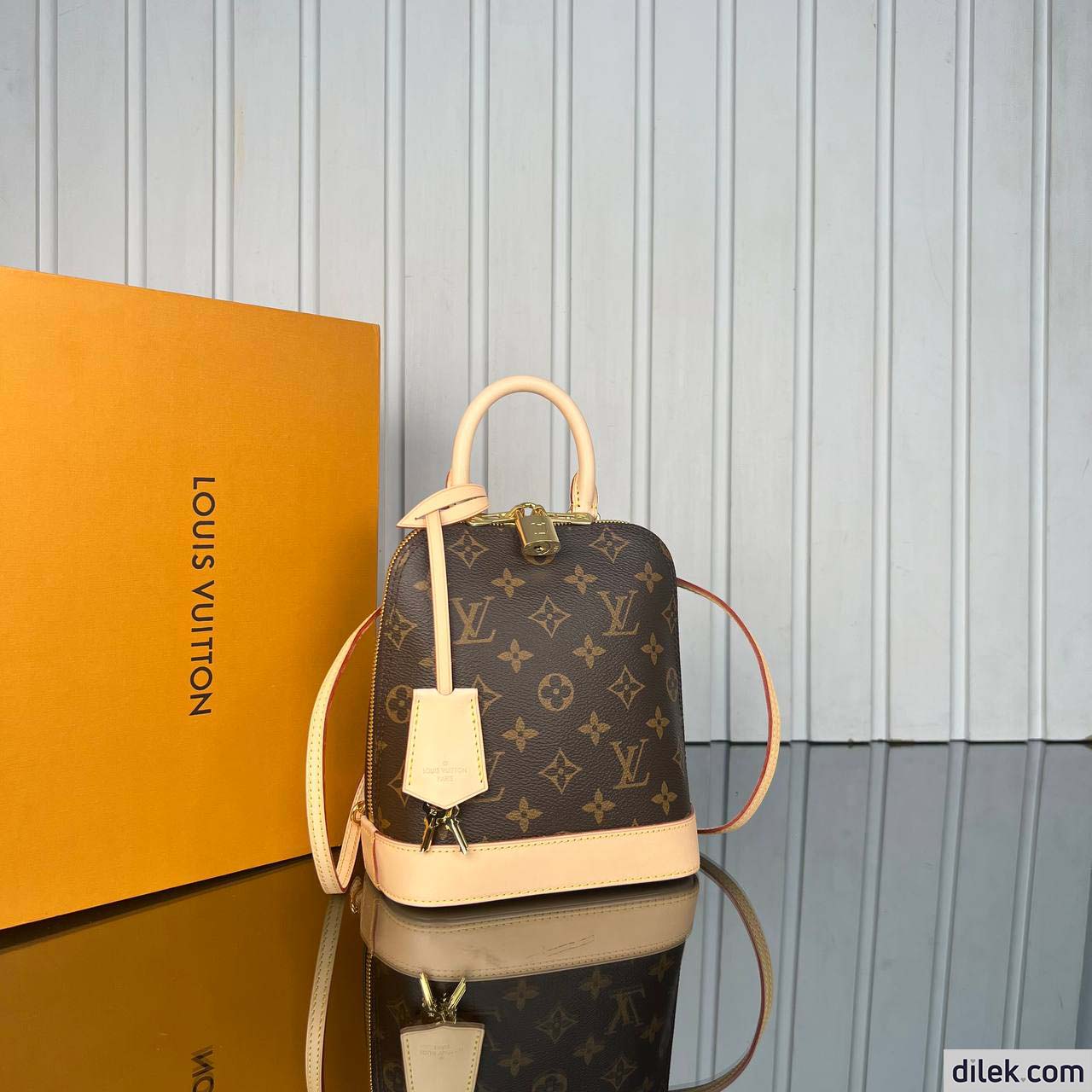 The Alma family welcomes a sleek new member: the Alma Backpack, introduced at the women’s Spring-Summer 2024 show. It is crafted from heritage Monogram canvas and features all the iconic Alma details, from the rounded top handle to the engraved gold-tone padlock and signature key bell. Removable straps multiply the carry options for this stylish city bag.
