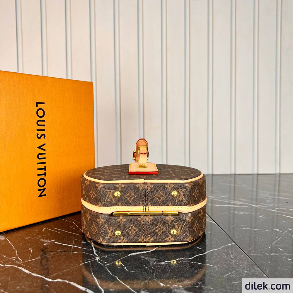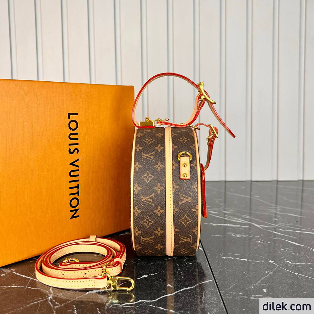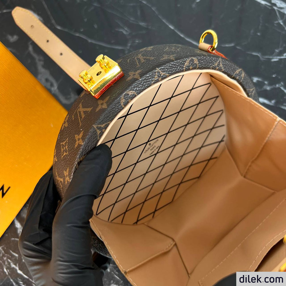 Fashioned from Monogram canvas, the Mini Boîte Chapeau delights with its iconic shape and classic Louis Vuitton details such as the leather name tag and interior malletage quilting. The zip closure reveals a well-organized inside with two large gusseted compartments. It can be worn as a belt bag, carried by the handle, on the shoulder thanks to the removable strap.