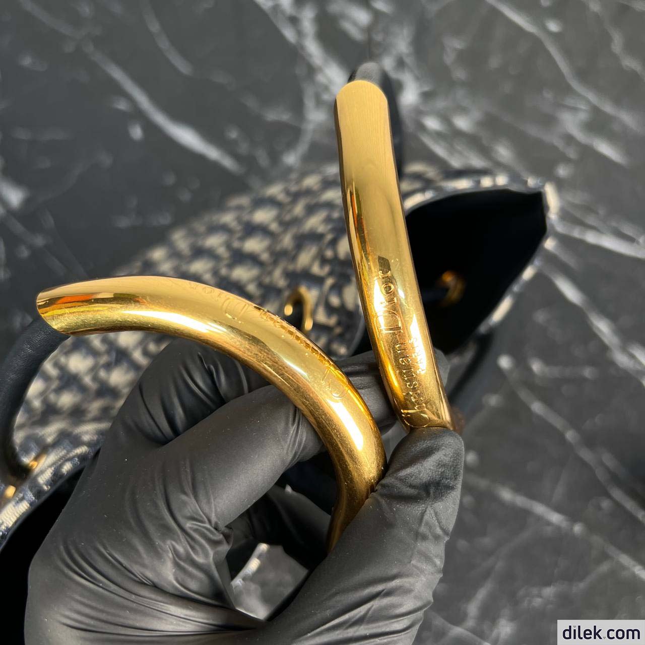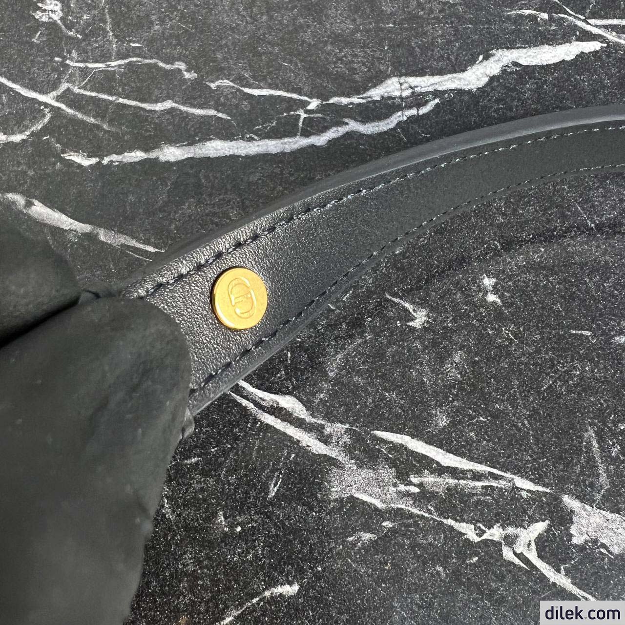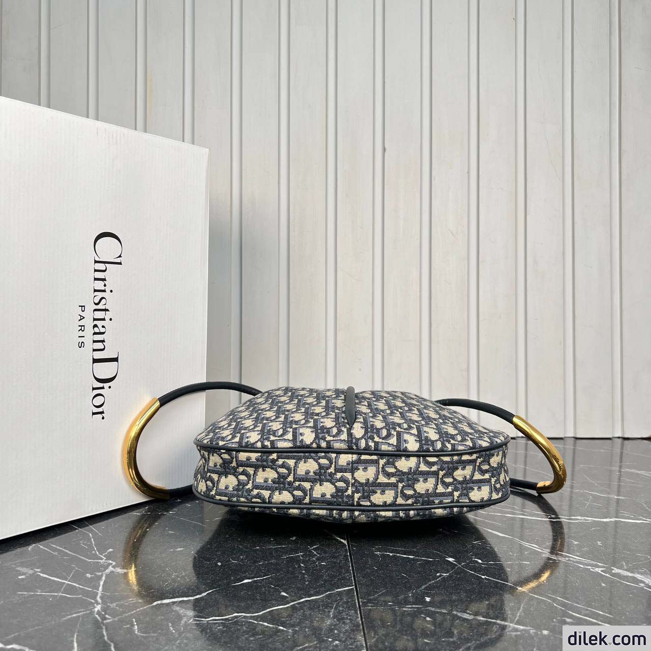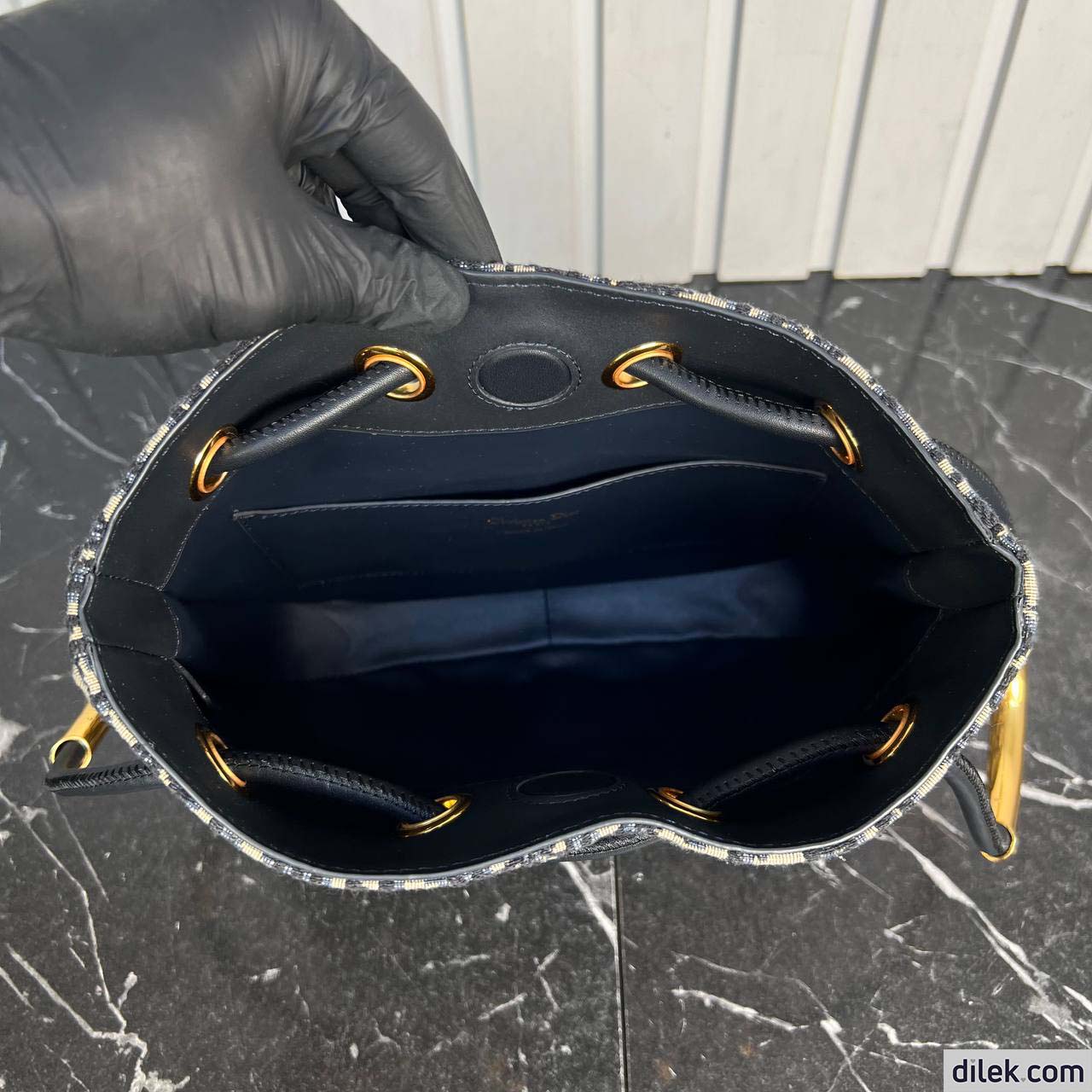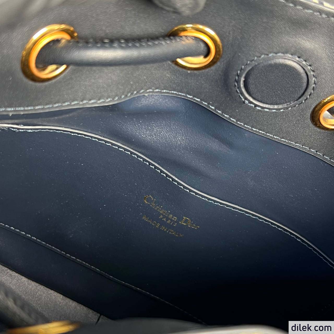 New for Fall 2024, the Dior Nolita bag redefines House codes of modern elegance with a refined and contemporary silhouette. The blue Dior Oblique jacquard is complemented by structured top handles embellished with antique gold-finish metal, as well as sliding D.I.O.R. charms which lend a touch of movement. The drawstring closure reveals a practical interior with a slip pocket, while the adjustable and removable leather strap allows the medium bag to be carried by hand, worn over the shoulder or crossbody.