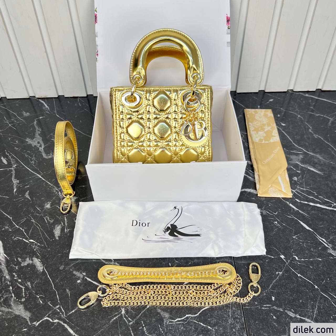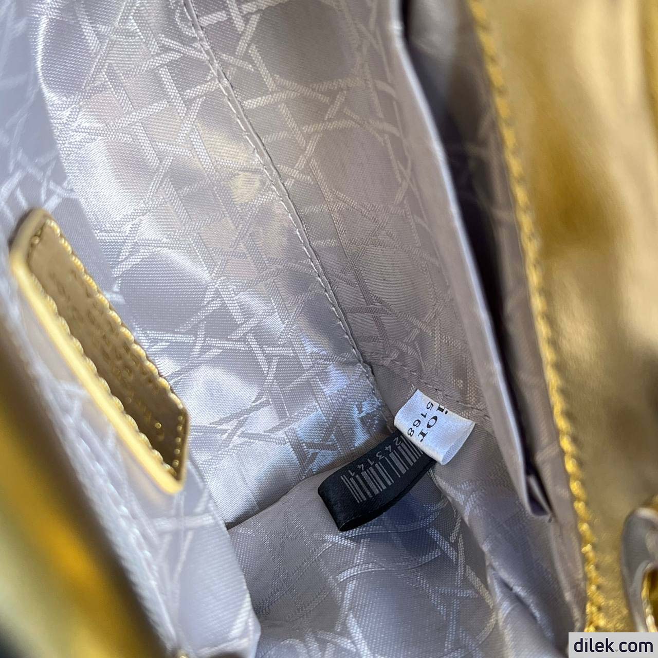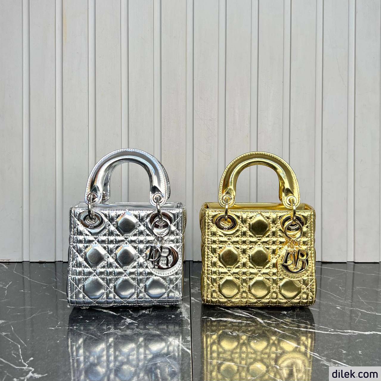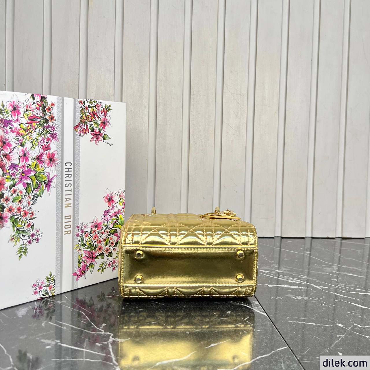 The Lady Dior bag epitomizes the House's vision of elegance and beauty. Refined and sleek, the timeless creation is crafted in black patent calfskin and covered with Cannage stitching, creating an instantly recognizable quilted texture. The pale gold-finish metal D.I.O.R. charms embellish and illuminate its silhouette. Featuring a removable chain shoulder strap, the miniature Lady Dior bag can be carried by hand or worn crossbody as an ideal evening wear companion.