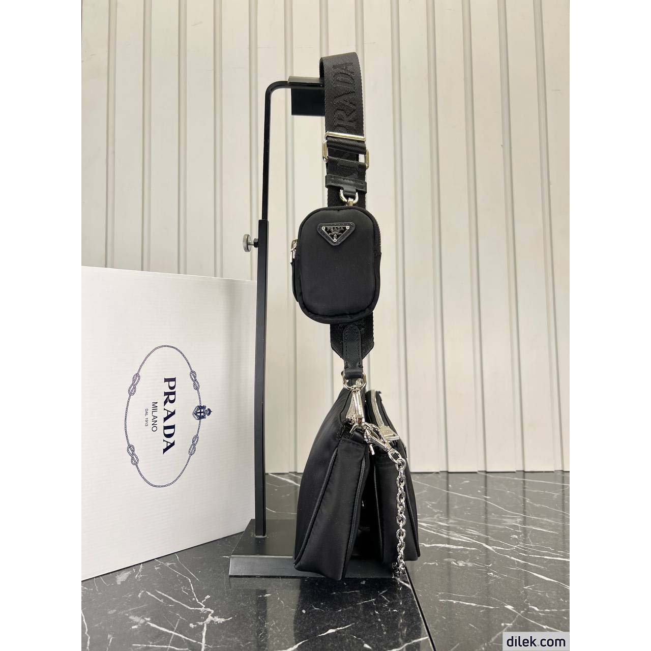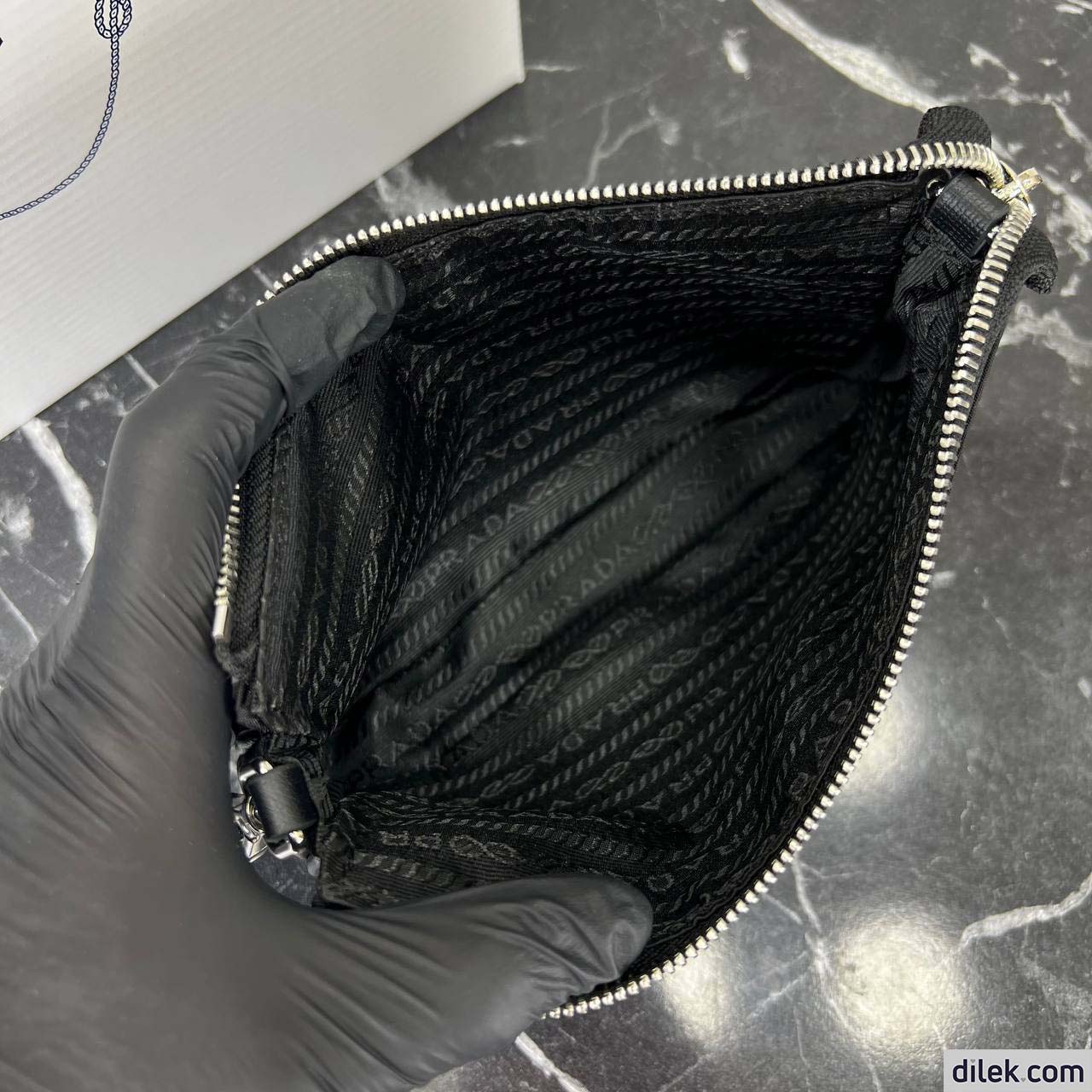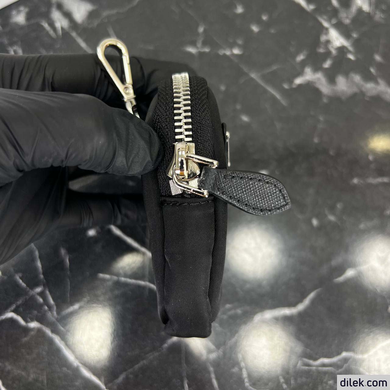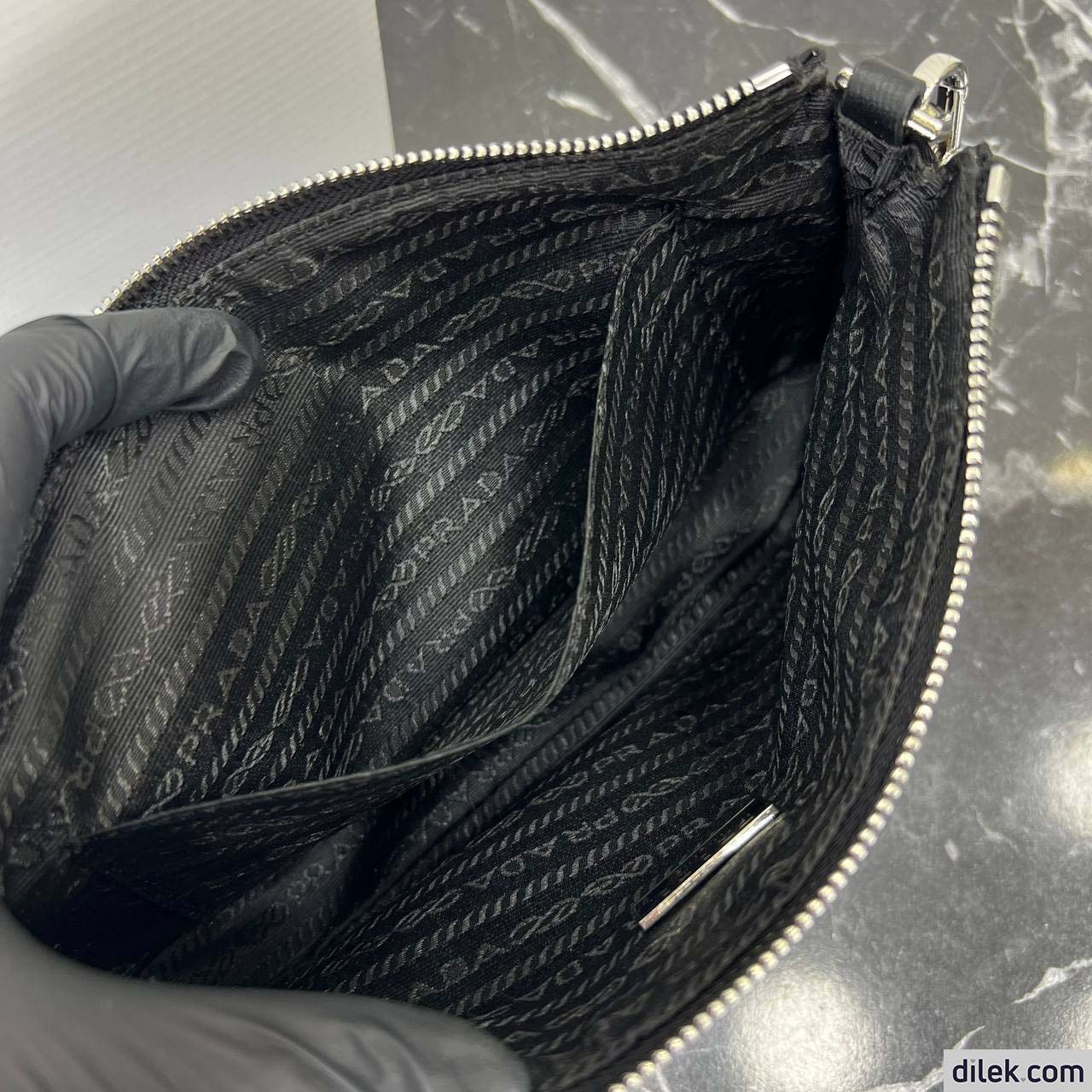 Sleek, harmonious lines define the silhouette of this mini-bag with a casual attitude. The design combines pragmatic Re-Nylon, the innovative regenerated nylon material, with refined brushed leather details and metal hardware. The accessory, decorated with the enameled metal triangle logo, is completed by an external pocket for a versatile, contemporary touch.