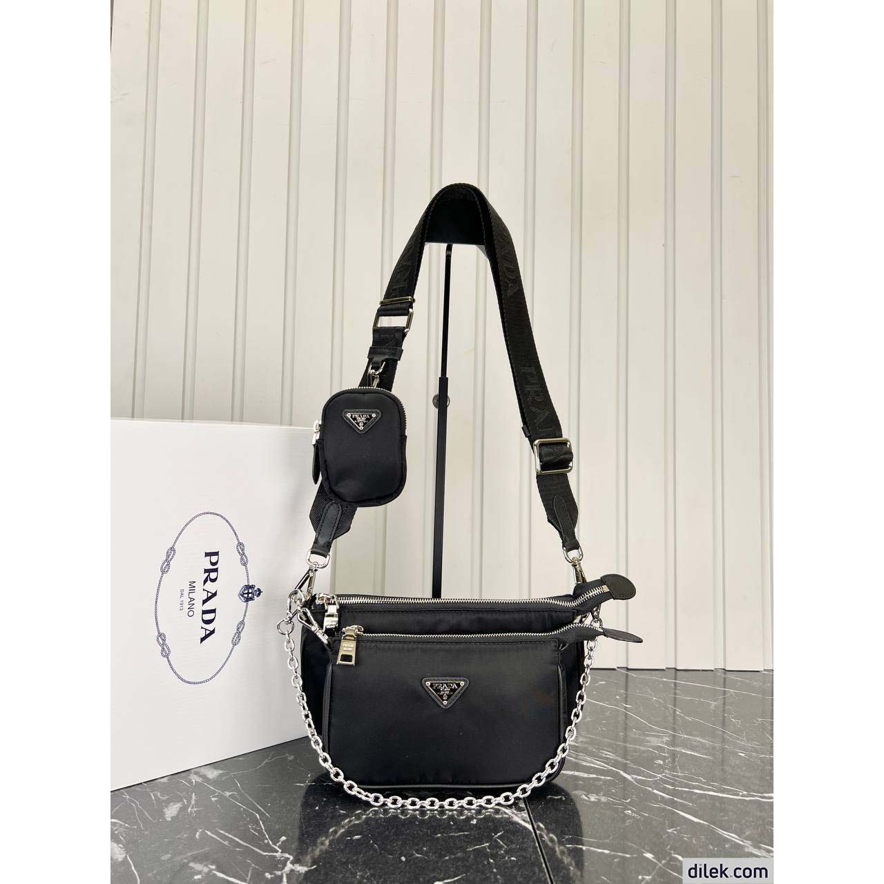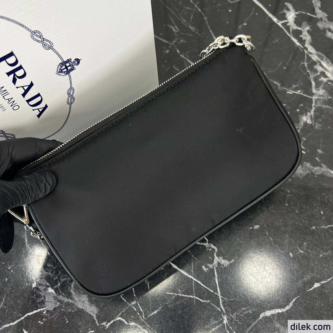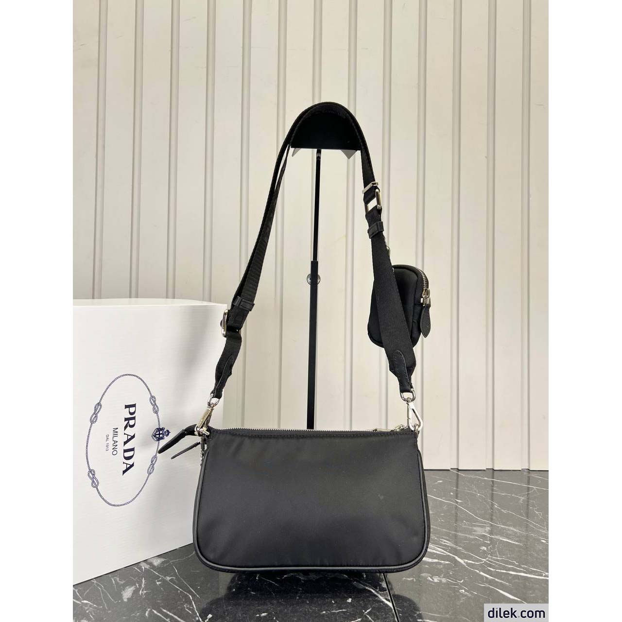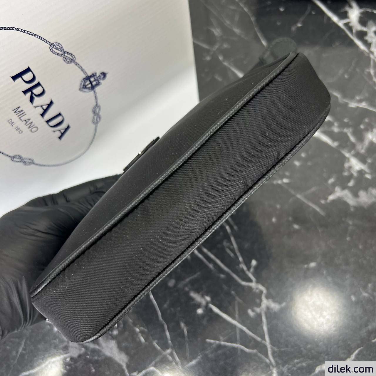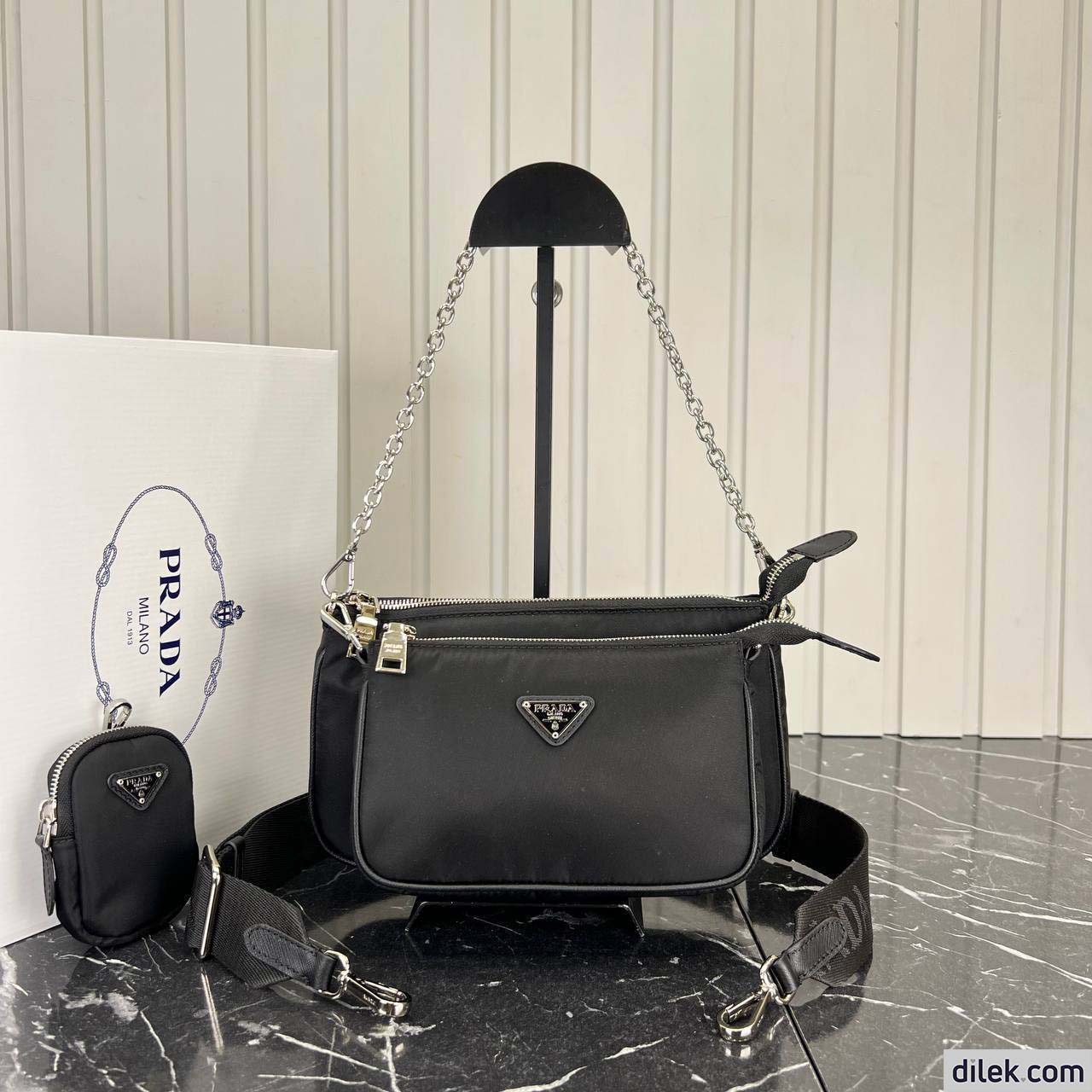Sleek, harmonious lines define the silhouette of this mini-bag with a casual attitude. The design combines pragmatic Re-Nylon, the innovative regenerated nylon material, with refined brushed leather details and metal hardware. The accessory, decorated with the enameled metal triangle logo, is completed by an external pocket for a versatile, contemporary touch.