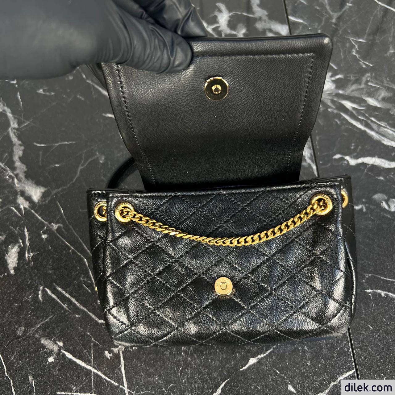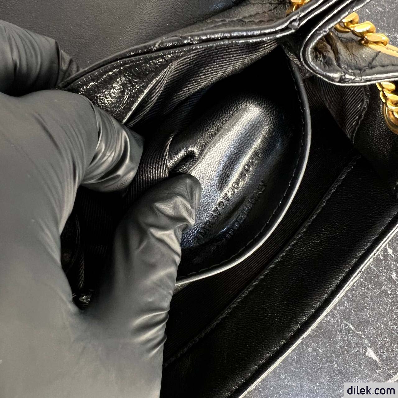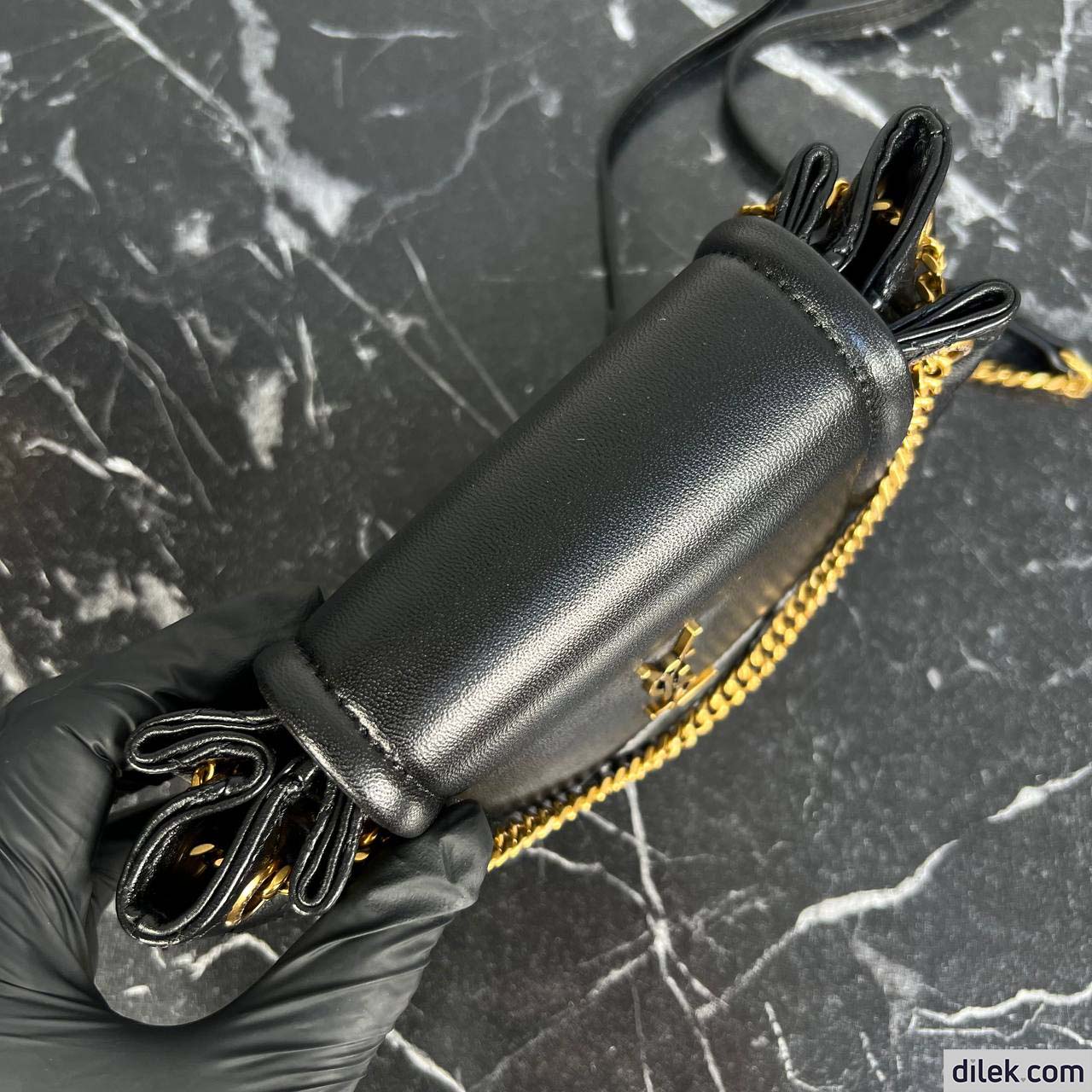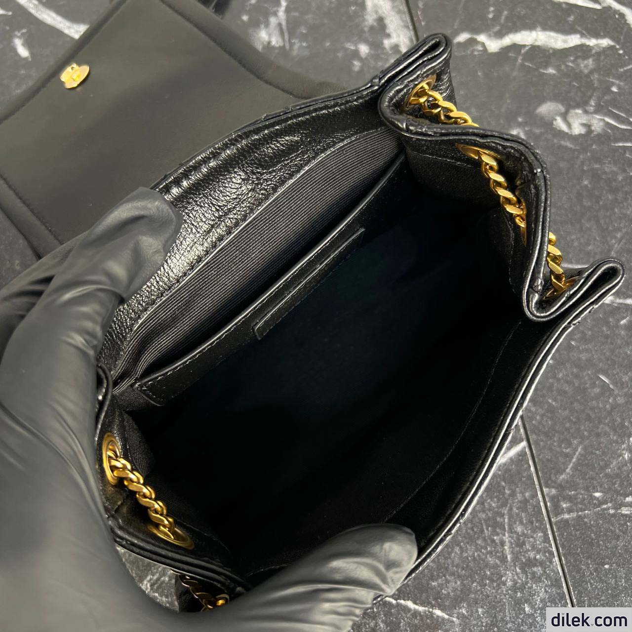 Nolita bag with front flap decorated with metal cassandre, featuring diamond-quilted overstitching and a chain and leather strap that can be worn two ways.