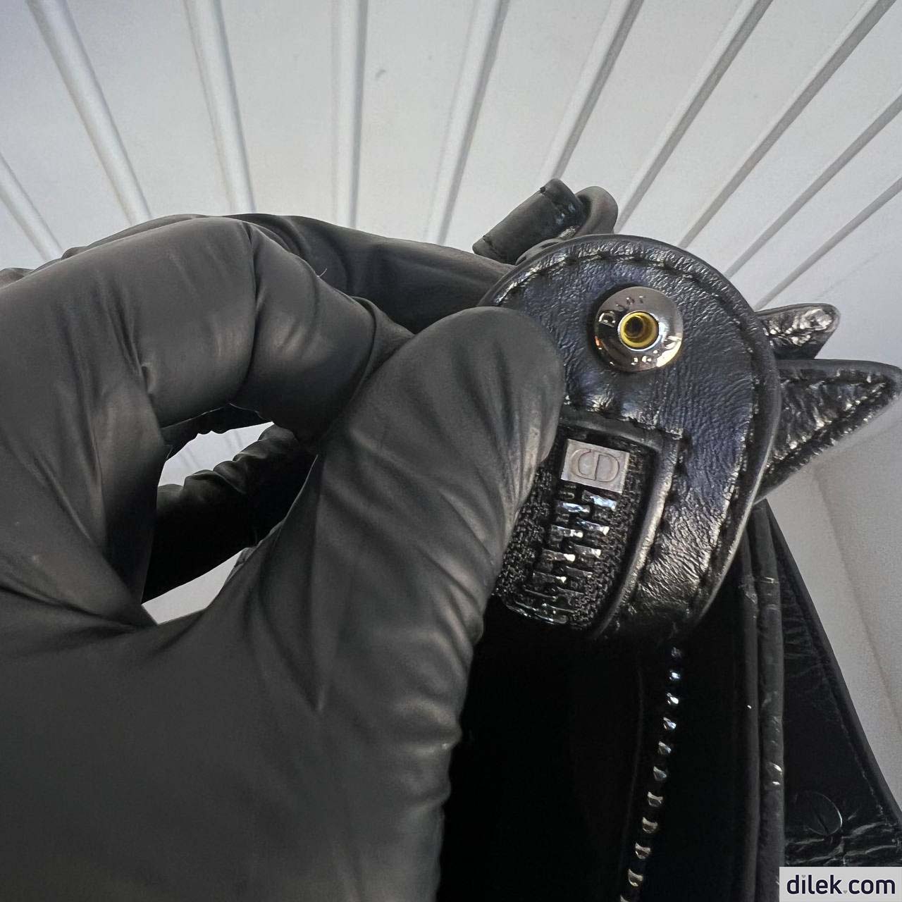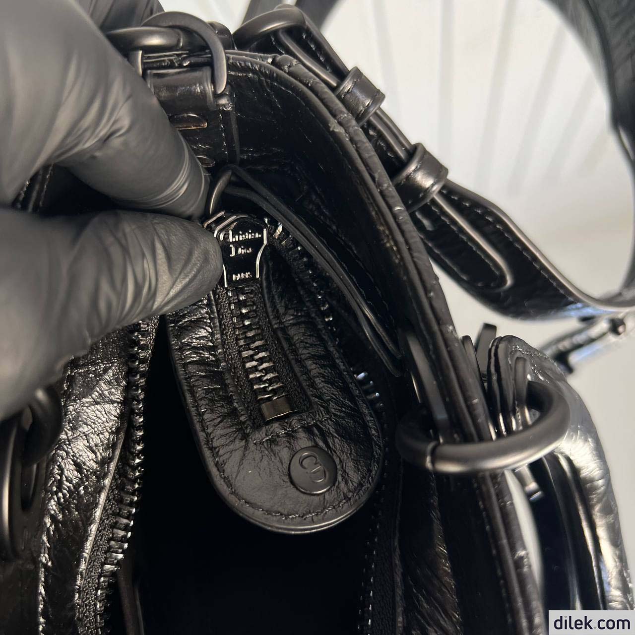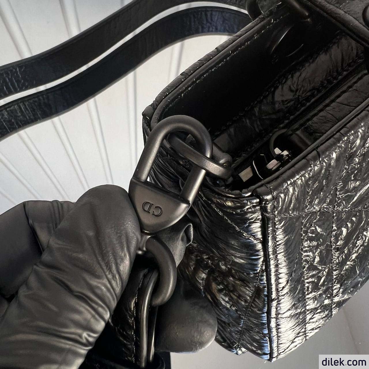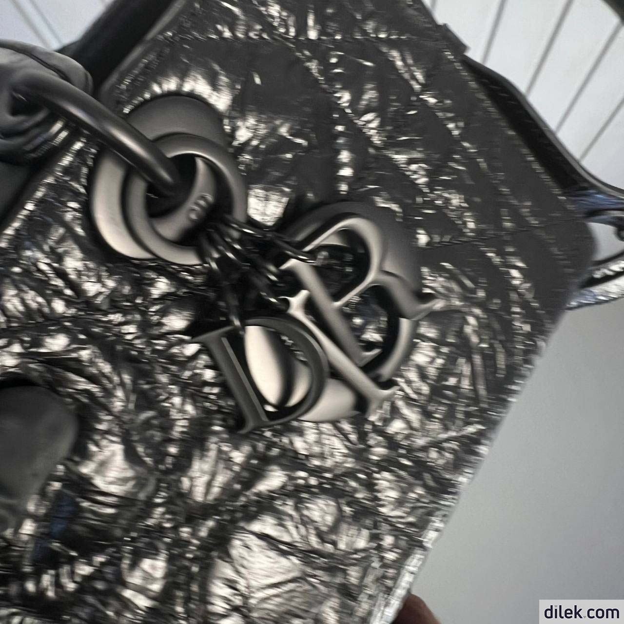 New for the season and appearing in the Spring-Summer 2024 Fashion Show, the Lady D-Sire My ABCDior bag draws inspiration from the iconic elegance of the Lady Dior design. Reimagined with a casual style for an urban look, the black crinkled calfskin is accented by Macrocannage topstitching, while tonal ultra-matte metal D.I.O.R. charms lend a modern touch. Showcasing a shoulder strap that can be personalized by adding symbolic badges, the unique medium bag can be carried by hand or worn crossbody.