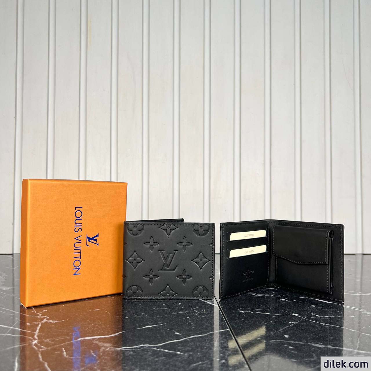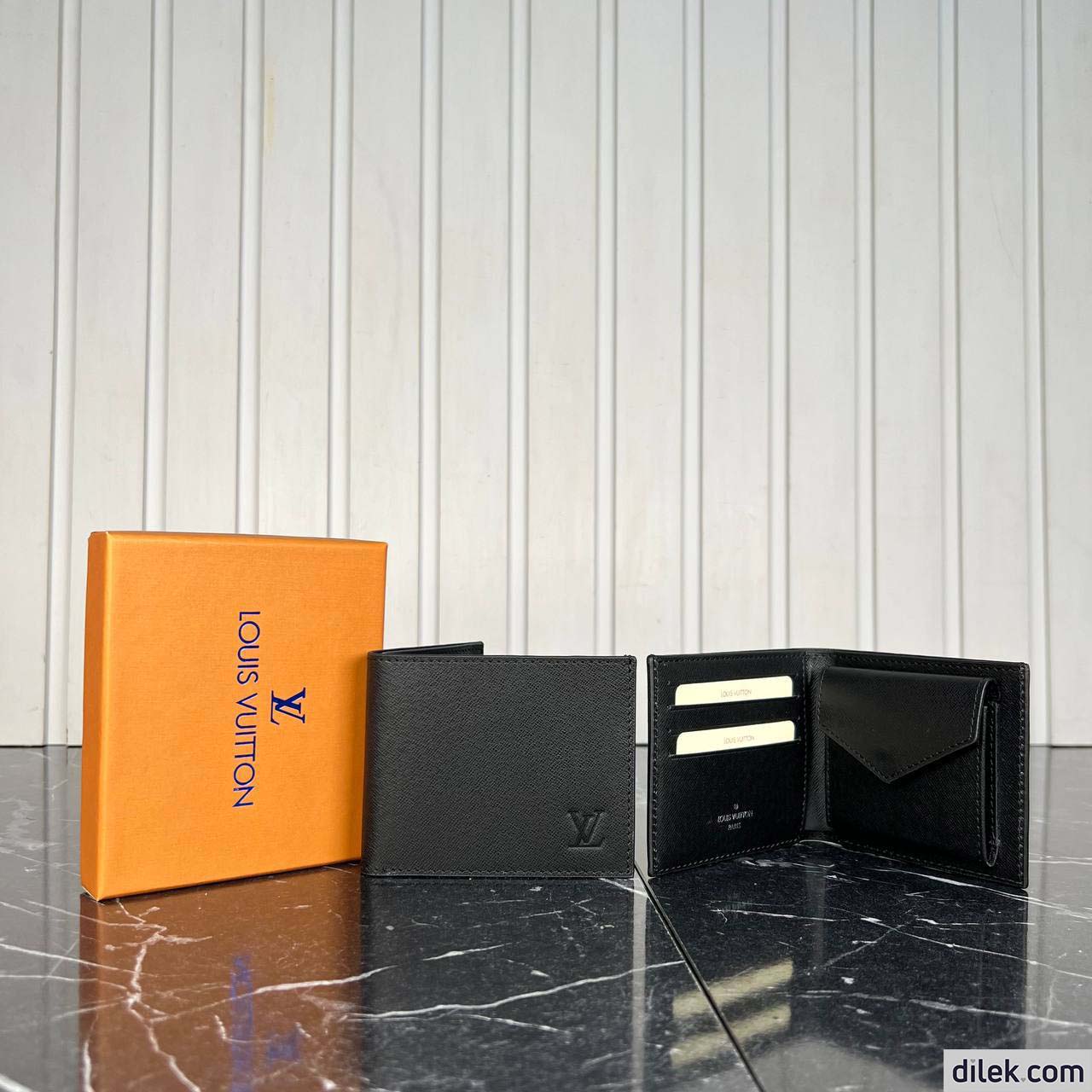The classic Multiple wallet takes on a new understated elegance with this LV Aerogram version in black calf leather, treated with a special fulling technique to bring out its plush grain. A discreet “LV” in black metal adds a refined signature touch. Handsome and practical, it makes an ideal companion to any of the LV Aerogram bags.