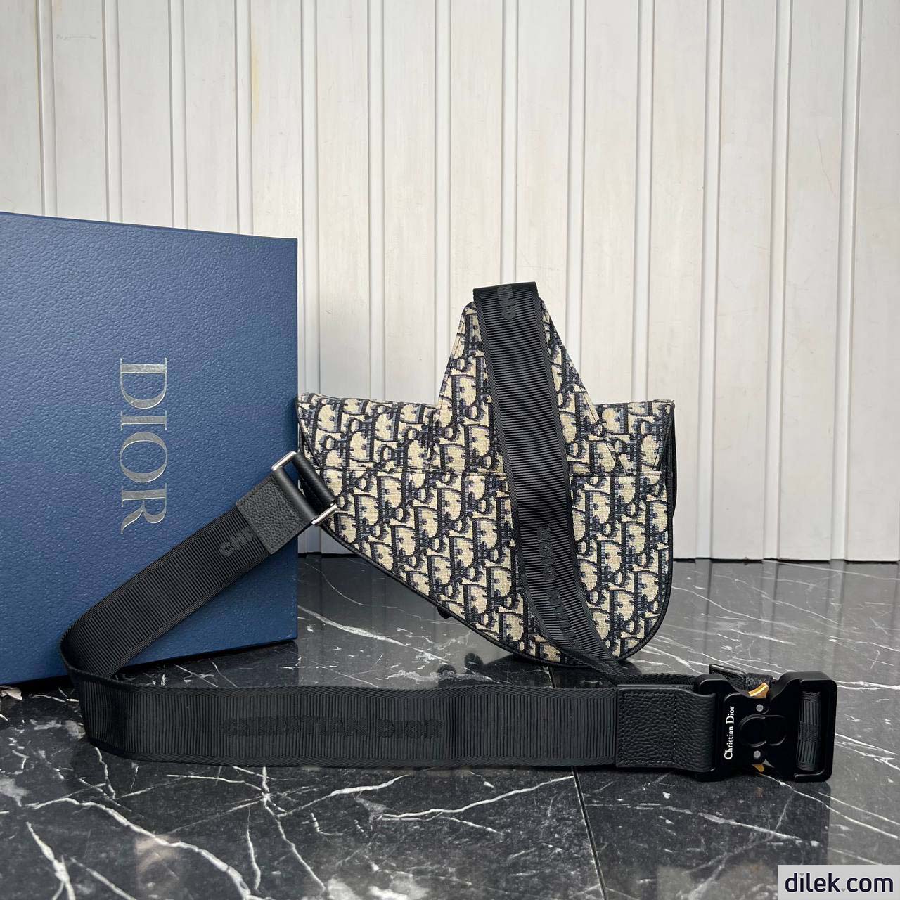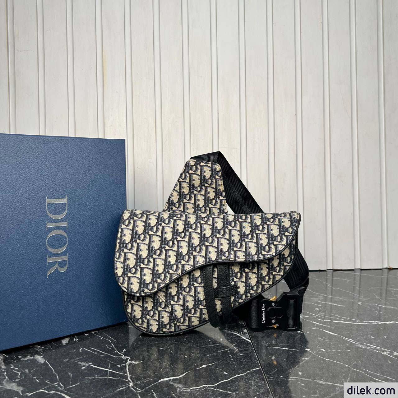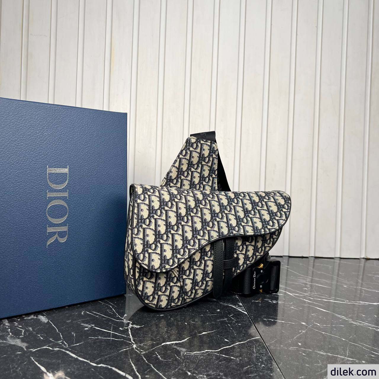 The Saddle bag is distinguished by the emblematic beige and black jacquard Dior Oblique motif. The magnetic flap, with its iconic silhouette, conceals a zip closure to safely store all the essentials. The style may be worn over the shoulder or crossbody with the adjustable Christian Dior shoulder strap.