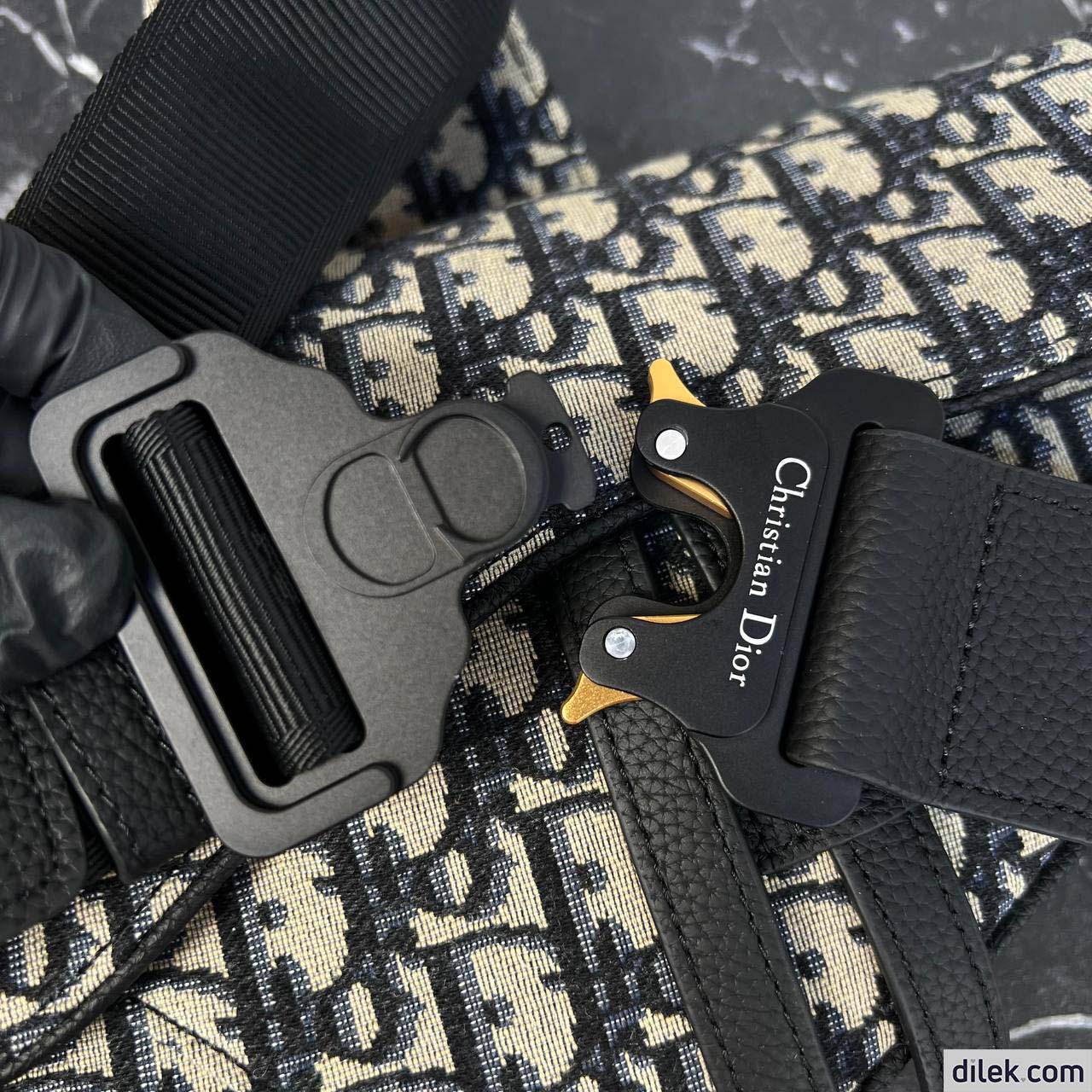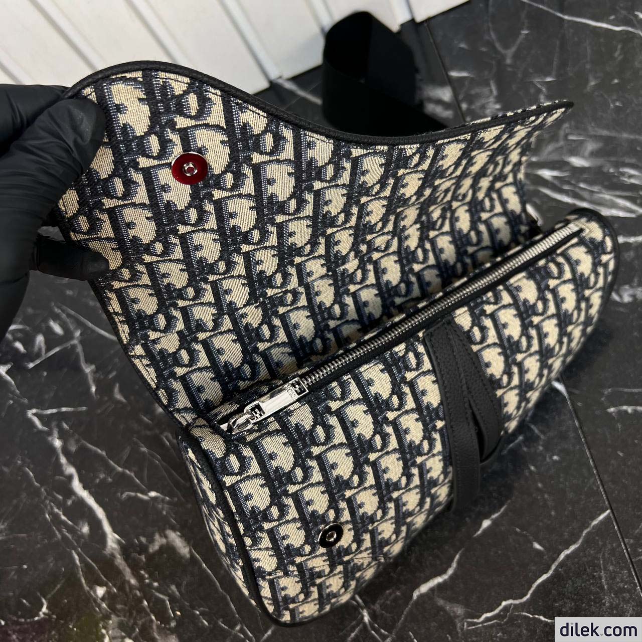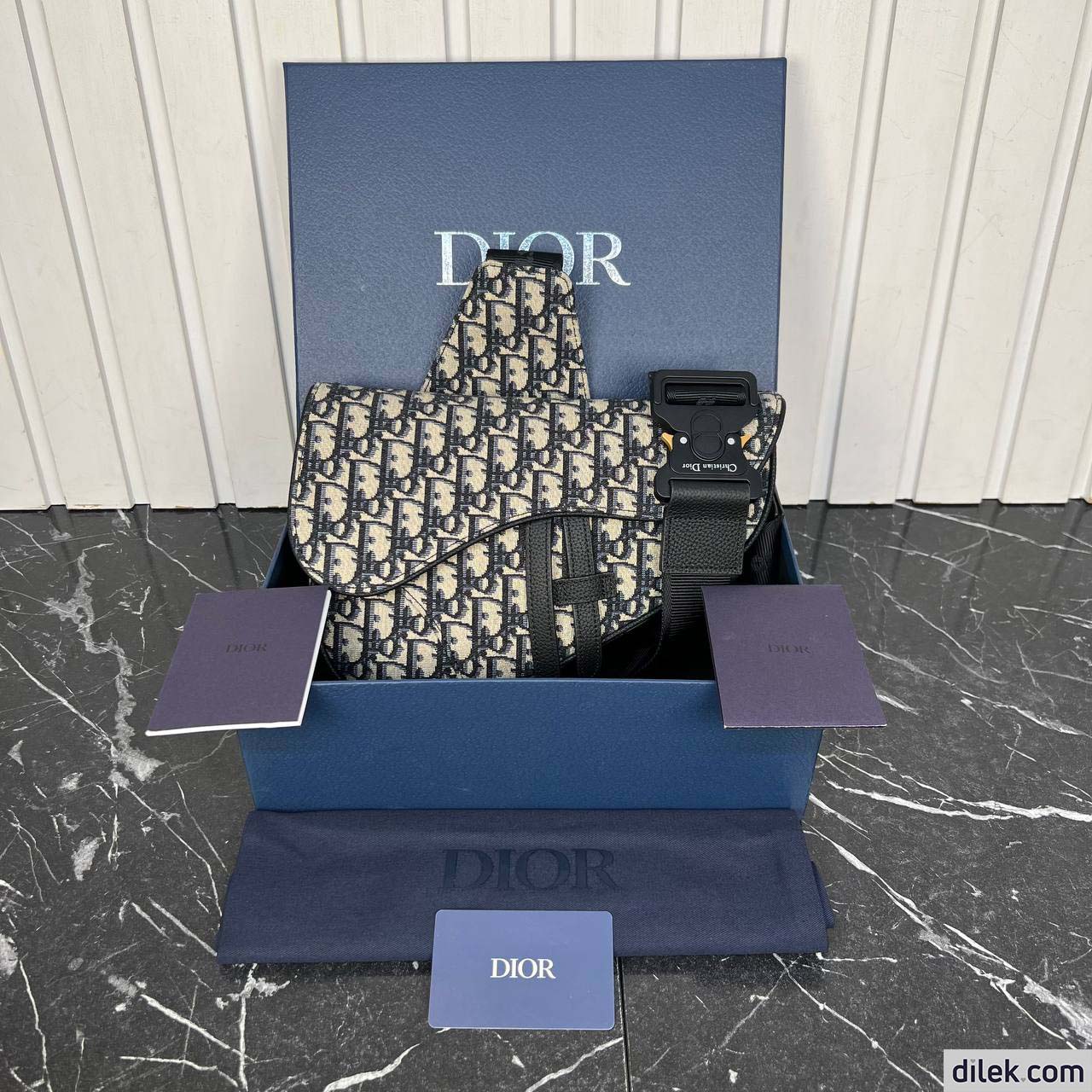 The Saddle bag is distinguished by the emblematic beige and black jacquard Dior Oblique motif. The magnetic flap, with its iconic silhouette, conceals a zip closure to safely store all the essentials. The style may be worn over the shoulder or crossbody with the adjustable Christian Dior shoulder strap.