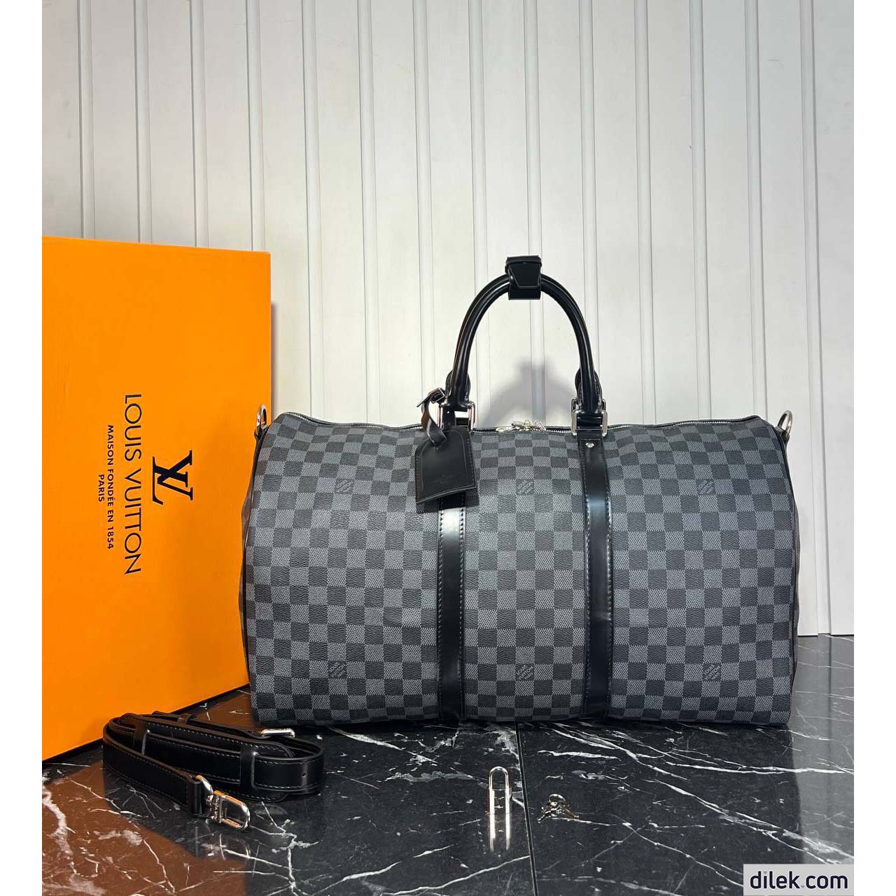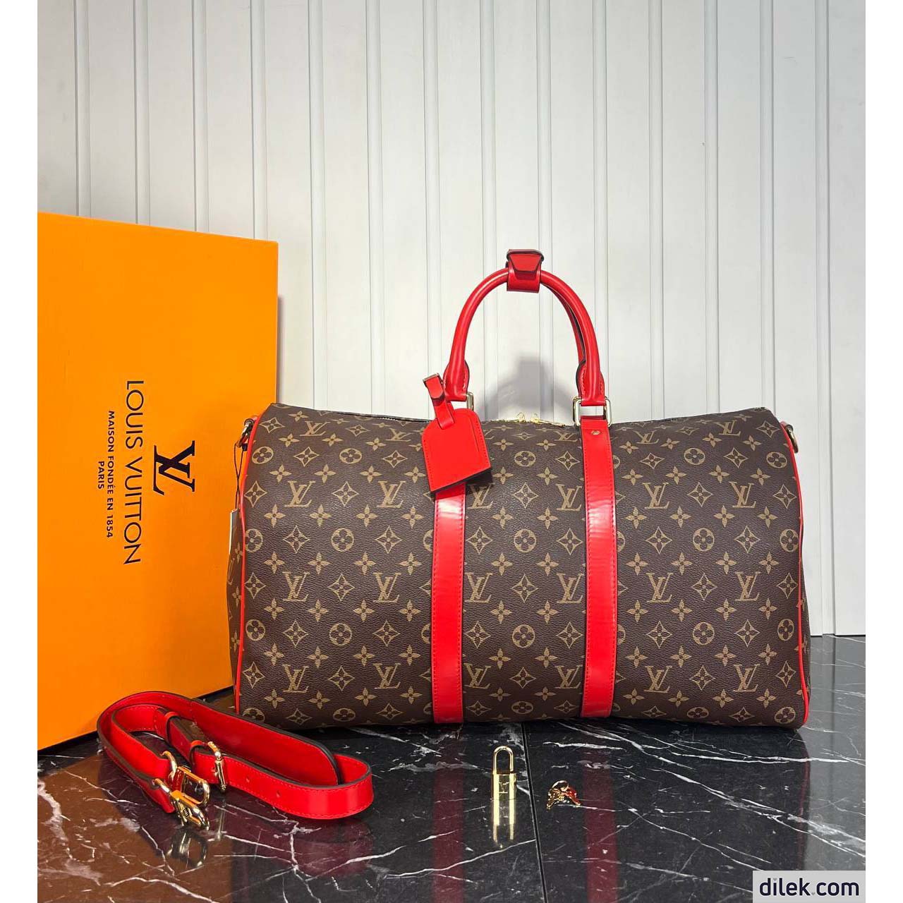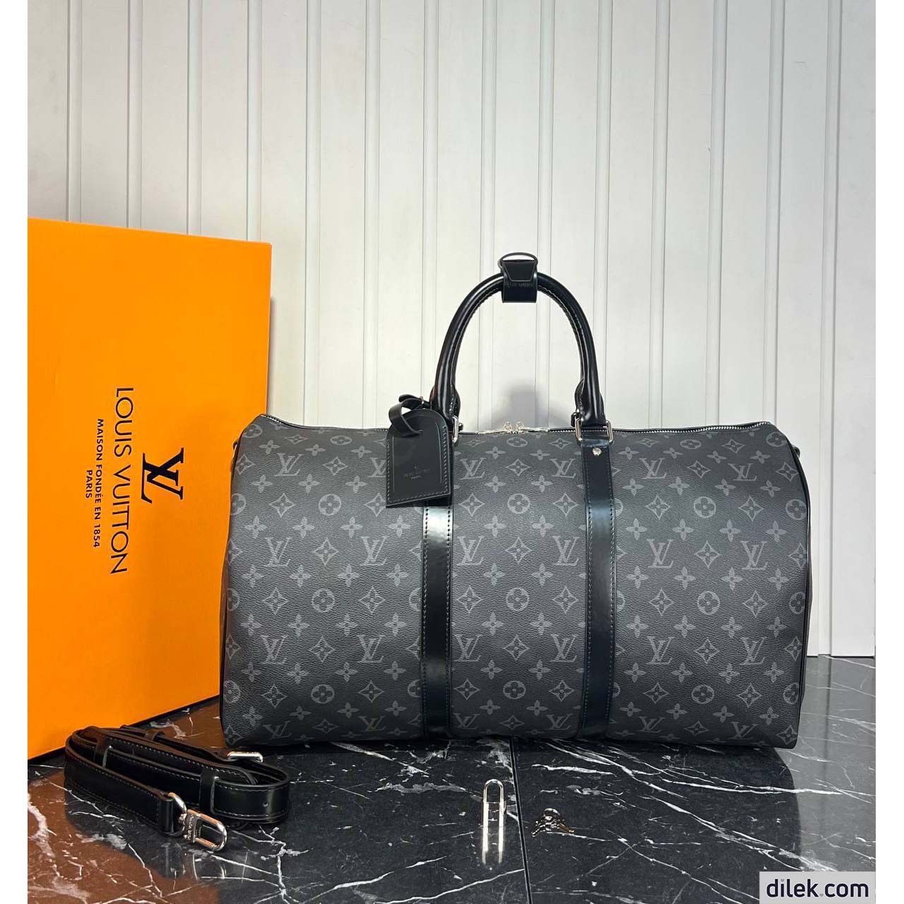 An icon since the appearance in 1930, the Keepall embodies the spirit of modern travel. Light, supple and always ready for immediate departure, the bag lives up to its name: those adept at the art of packing can easily fit a week's wardrobe into the generously sized (and cabin-friendly) Keepall 50. Shown here in classic Monogram Canvas, with a strap for casual cross-body wear