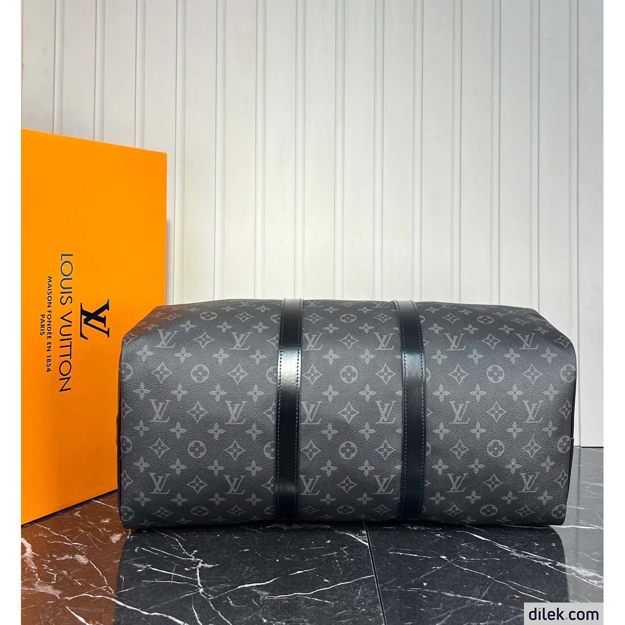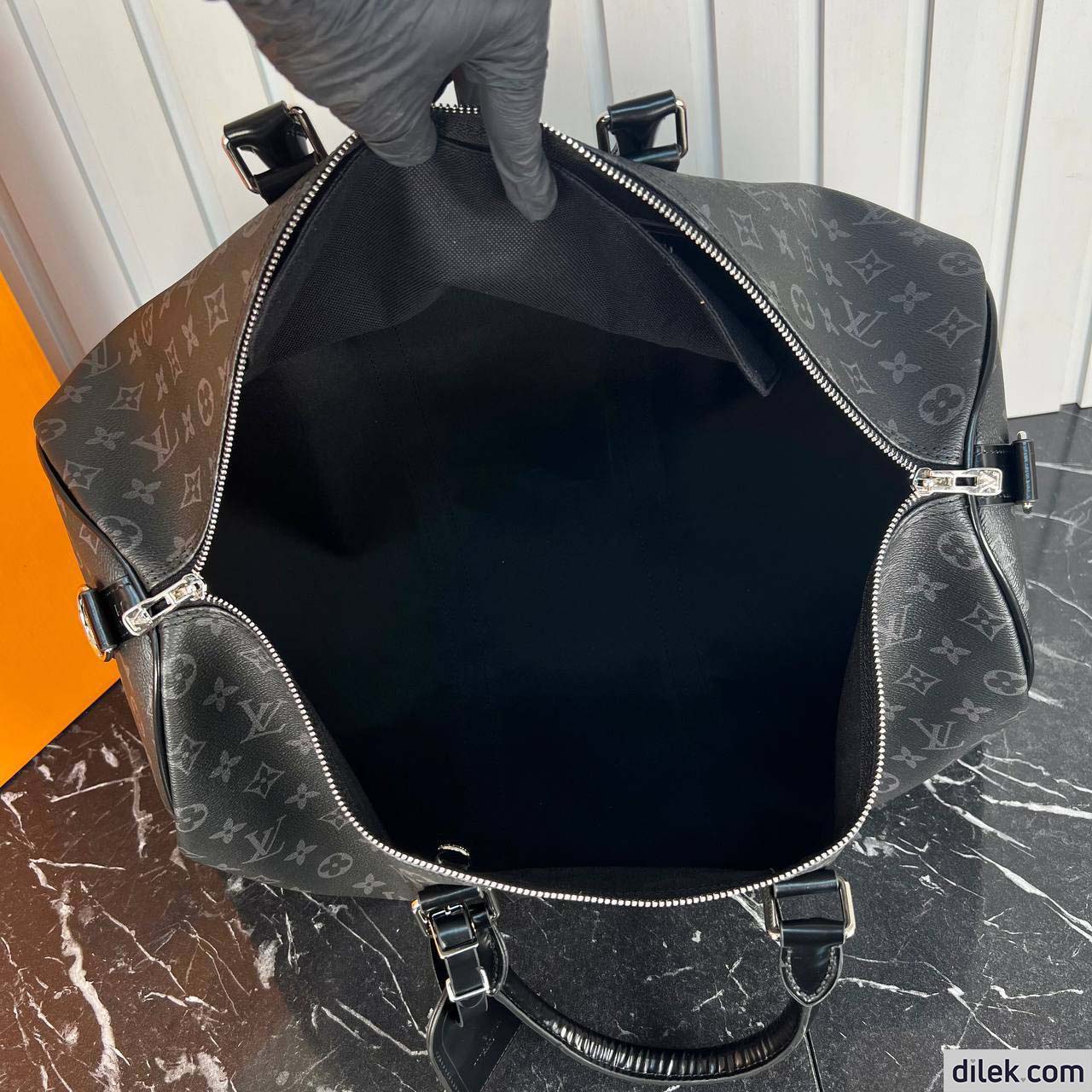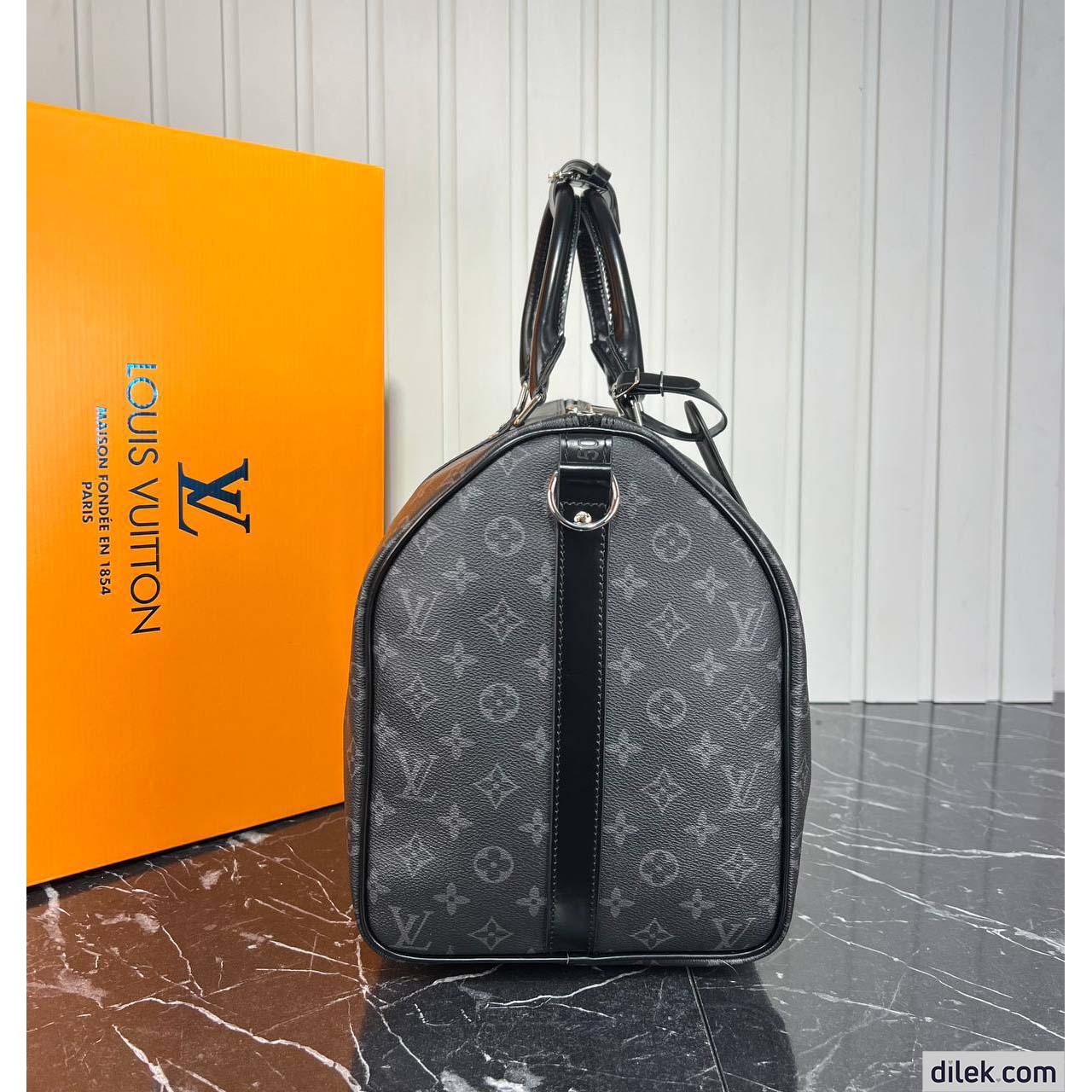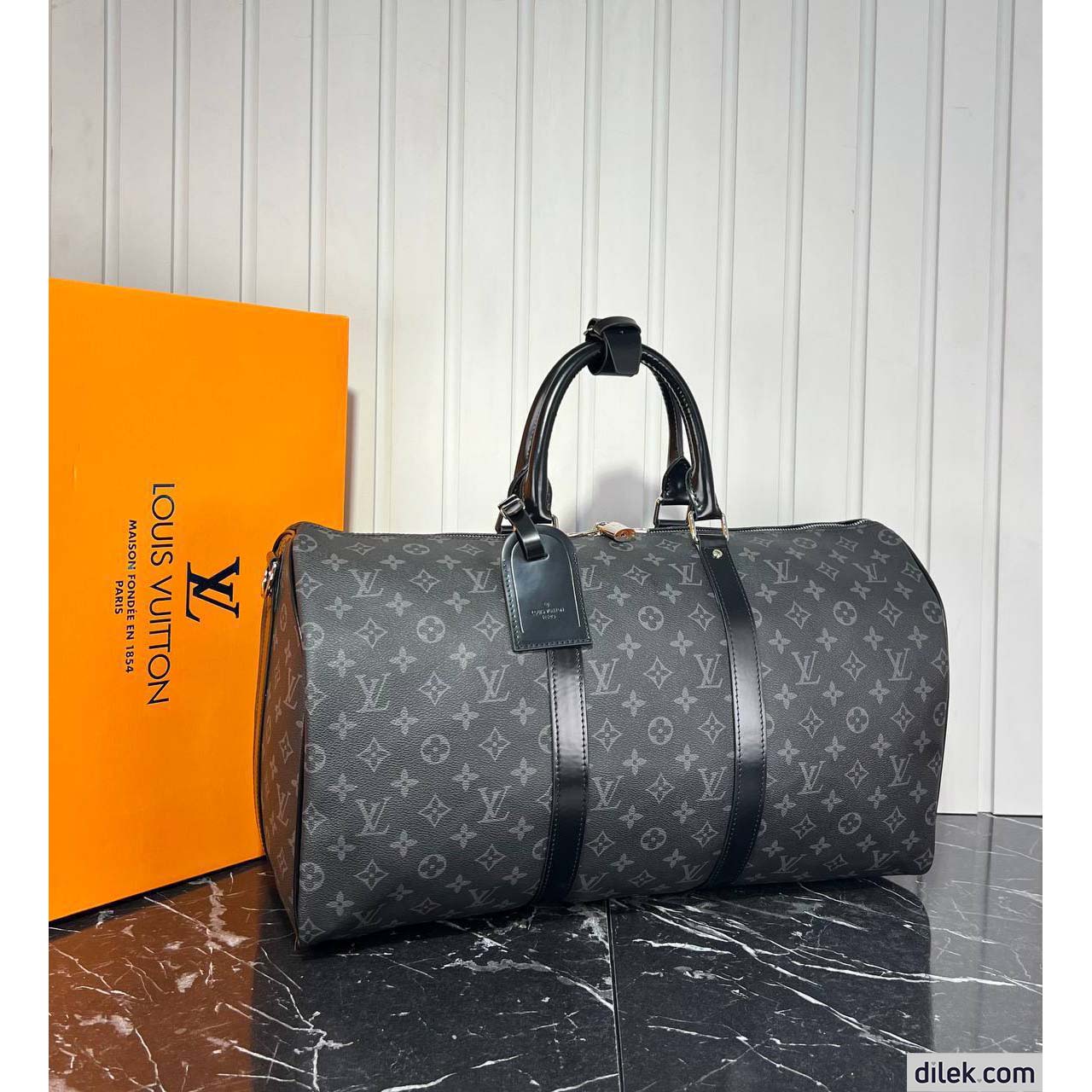 An icon since the appearance in 1930, the Keepall embodies the spirit of modern travel. Light, supple and always ready for immediate departure, the bag lives up to its name: those adept at the art of packing can easily fit a week's wardrobe into the generously sized (and cabin-friendly) Keepall 50. Shown here in classic Monogram Canvas, with a strap for casual cross-body wear