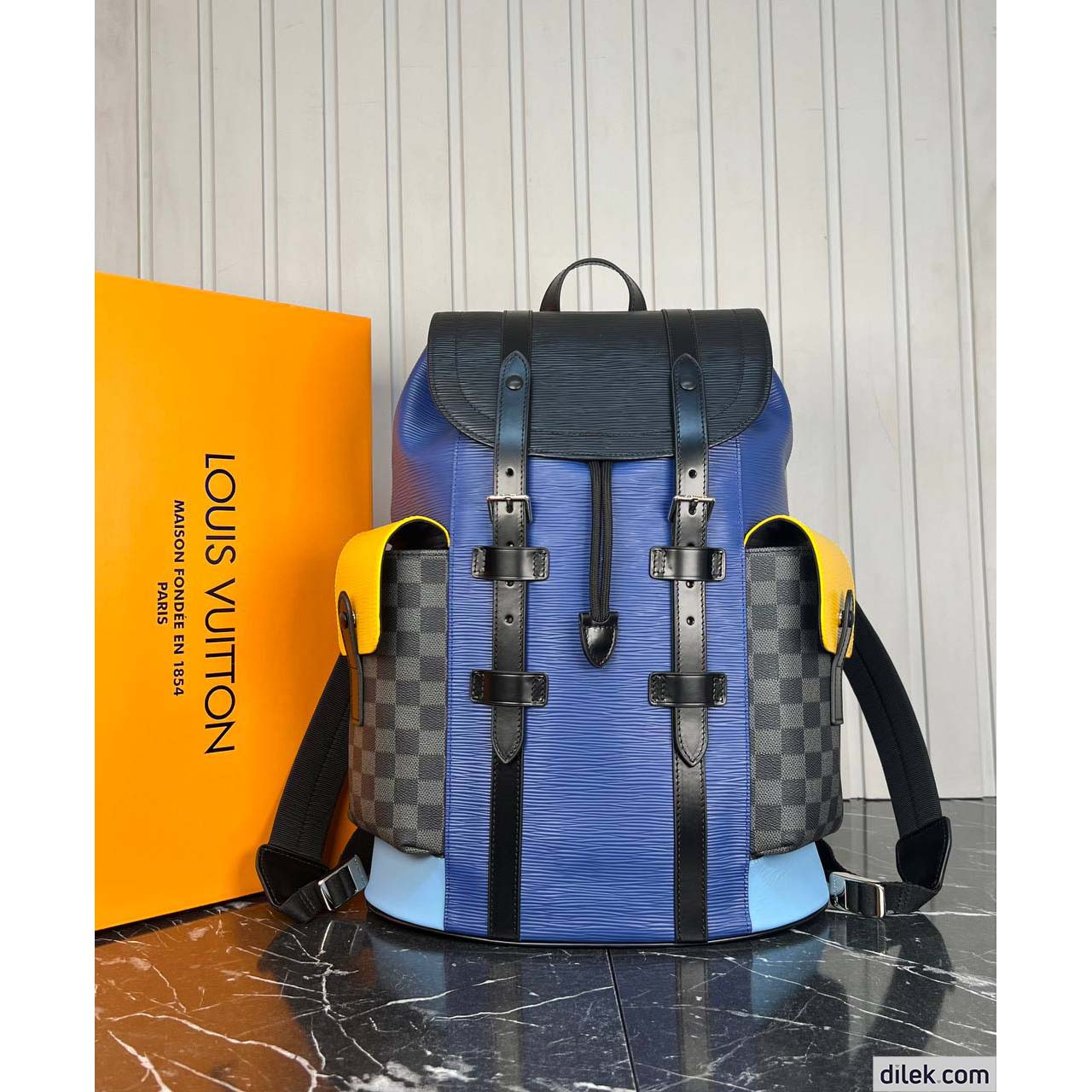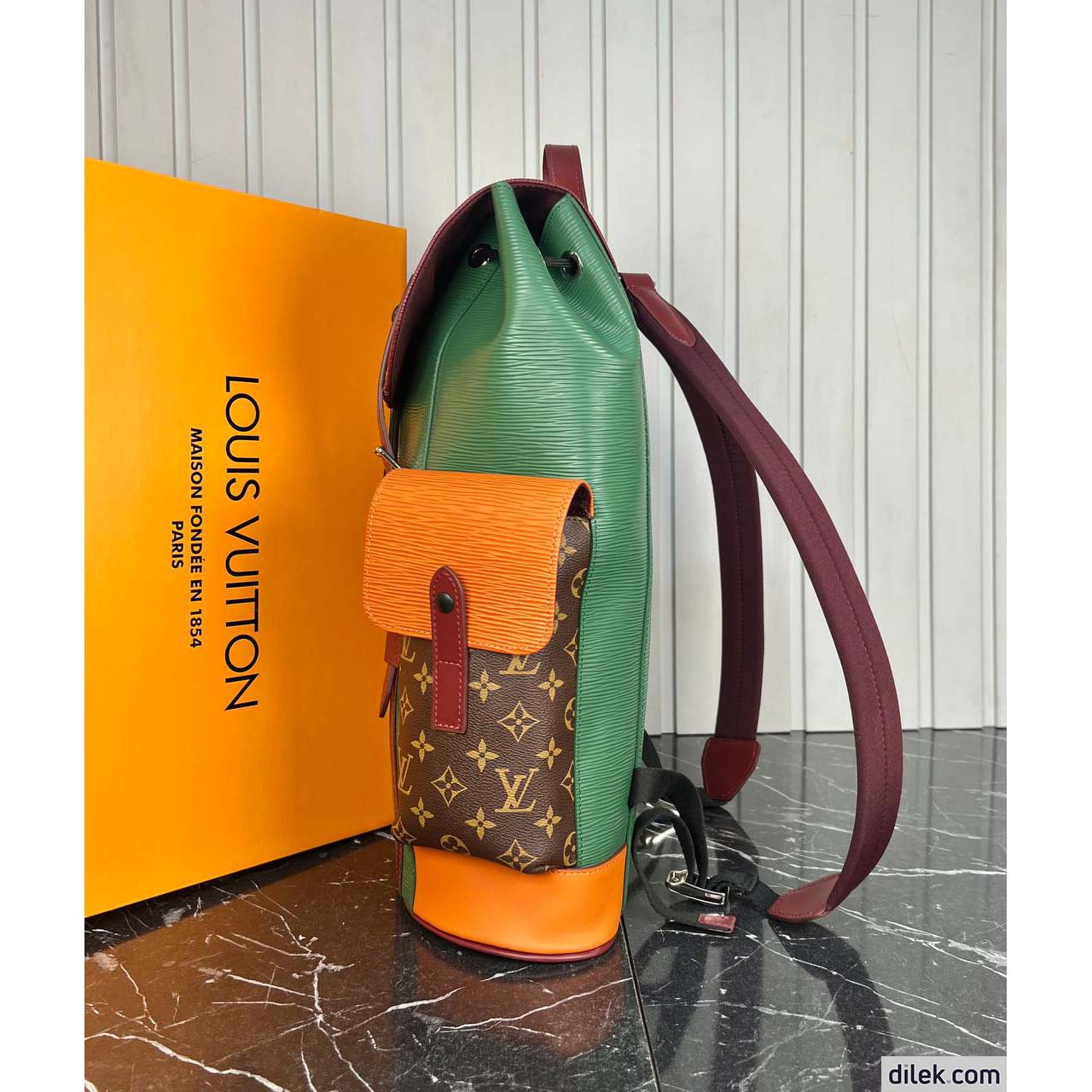 For Spring-Summer 2024, the Christopher backpack takes on a new look inspired by the edgy modernity of bleached denim. Deep blue Monogram canvas is combined with lighter shades in a pattern that evokes the contours of paper burned in a campfire. Both stylish and functional, it features an array of compartments including a special iPad pocket.