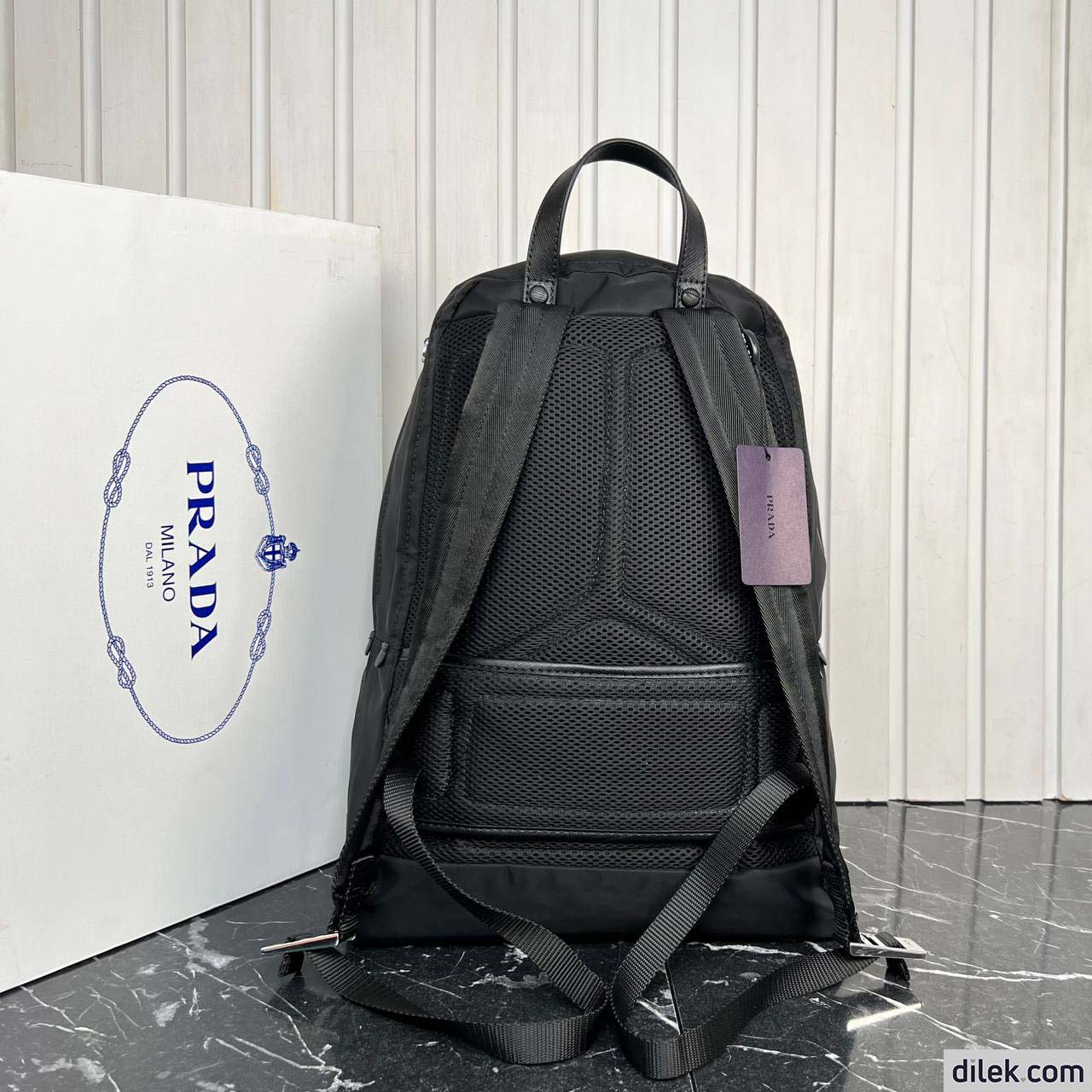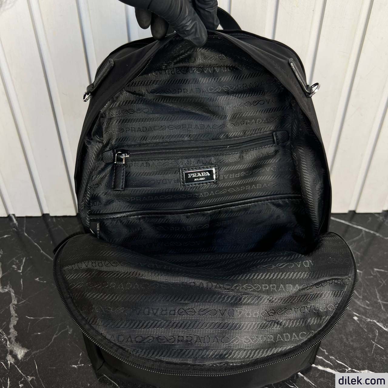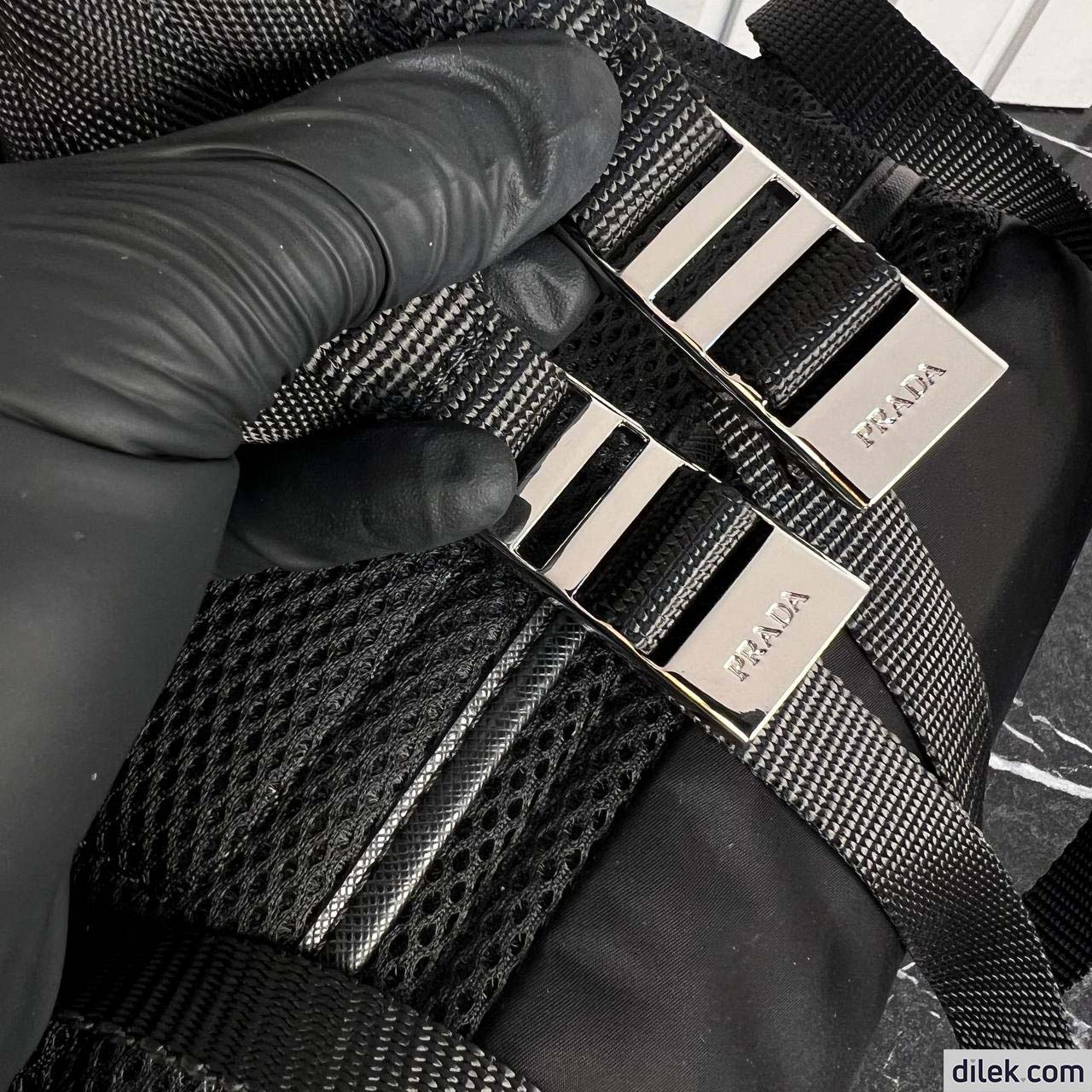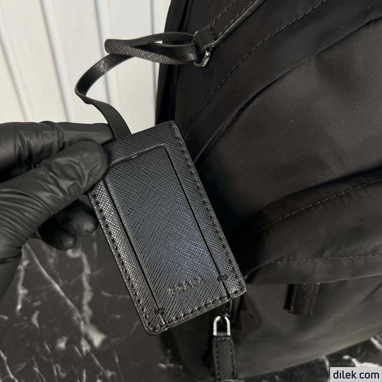 This roomy backpack with a technical look is made of Re-Nylon, the innovative technical fabric produced from recycled plastic trash recovered in the ocean. The design of the accessory, with main compartment with zipper closure, stands out for its Saffiano leather details. Saffiano leather, an iconic material of Prada, is synonymous with luxury and identifies with traditional Italian leather goods production. The calf leather of the highest quality is defined by a crosshatch pattern and wax finish.