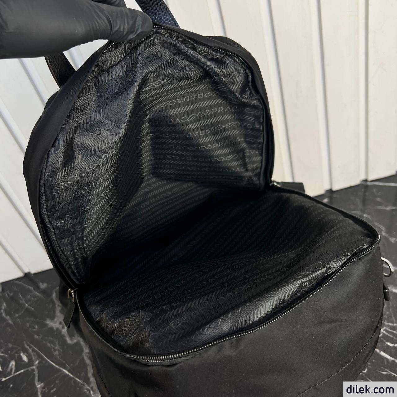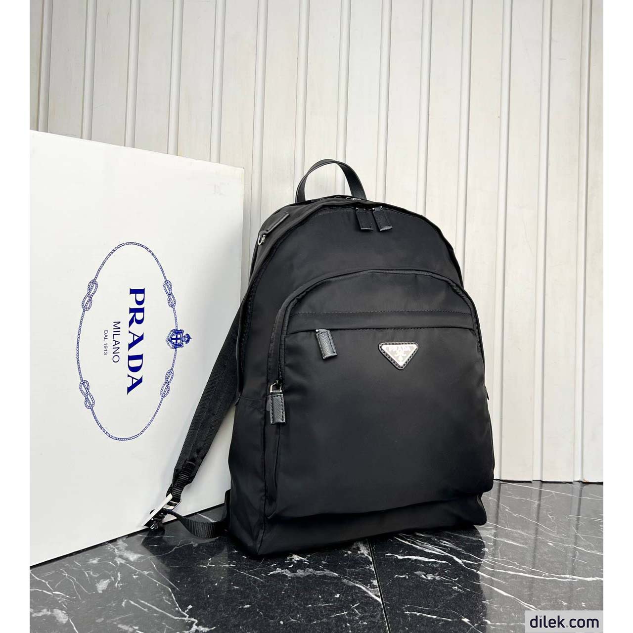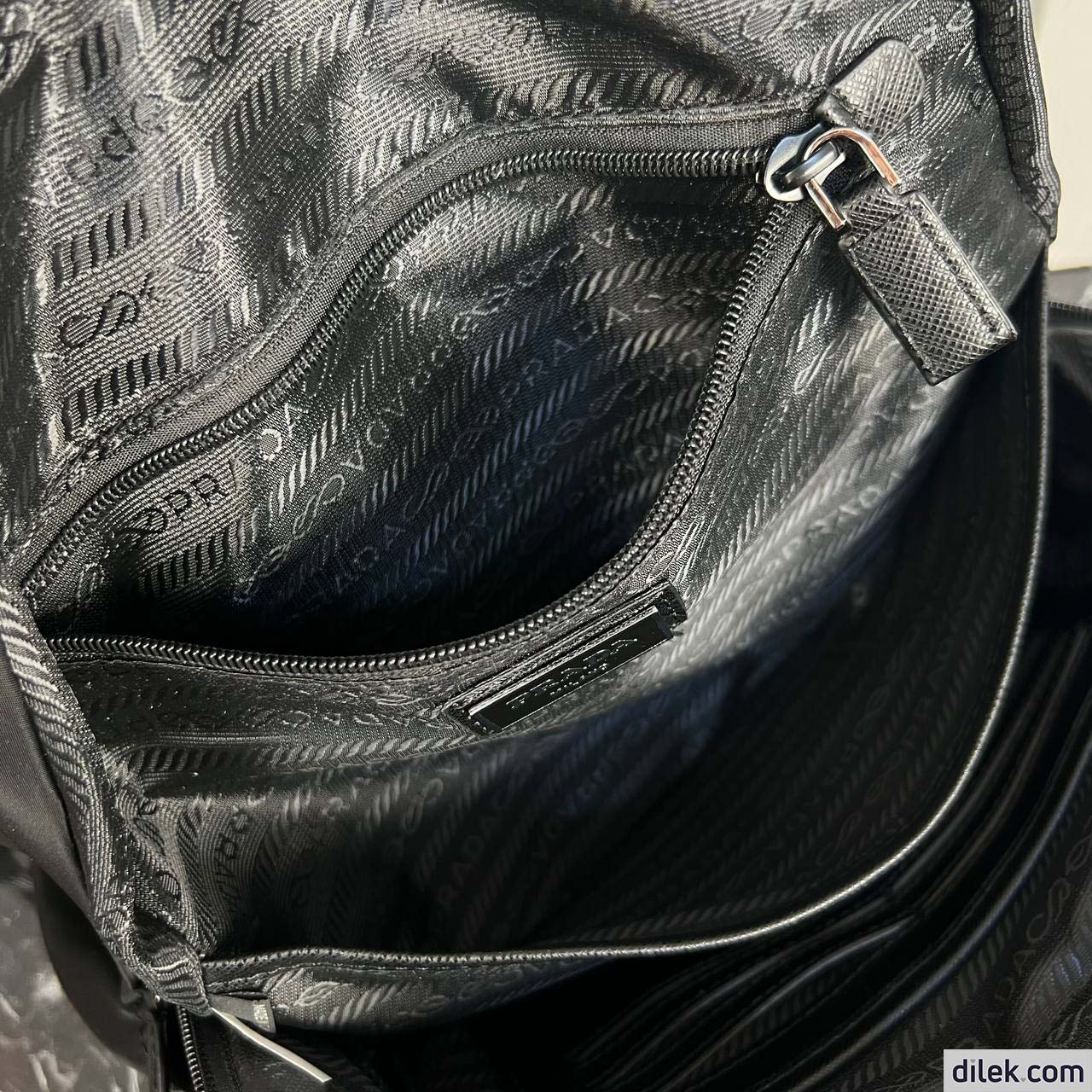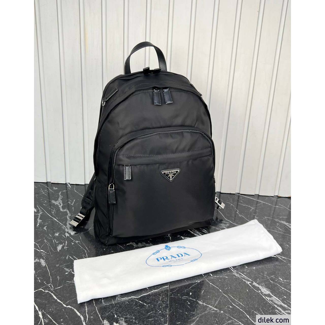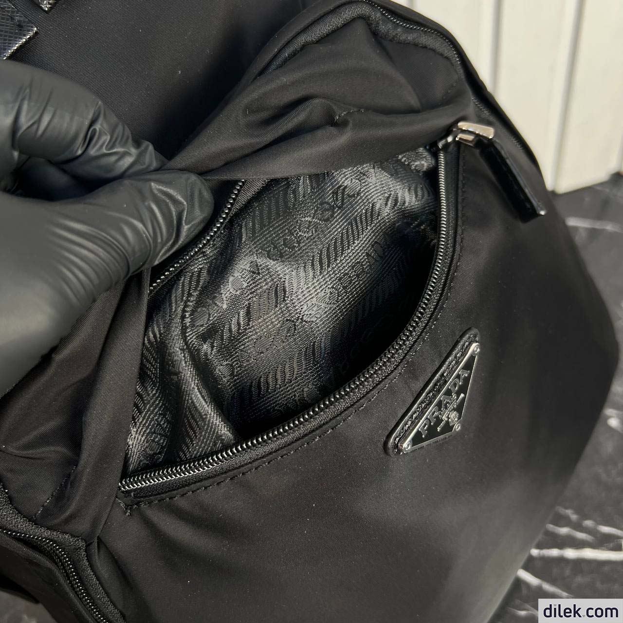 This roomy backpack with a technical look is made of Re-Nylon, the innovative technical fabric produced from recycled plastic trash recovered in the ocean. The design of the accessory, with main compartment with zipper closure, stands out for its Saffiano leather details. Saffiano leather, an iconic material of Prada, is synonymous with luxury and identifies with traditional Italian leather goods production. The calf leather of the highest quality is defined by a crosshatch pattern and wax finish.