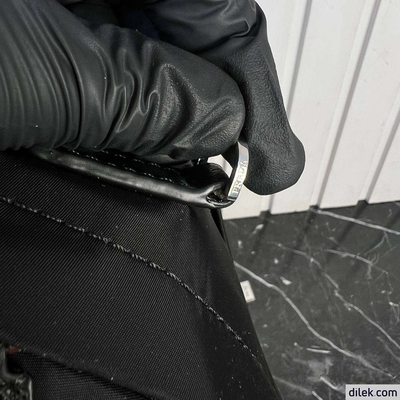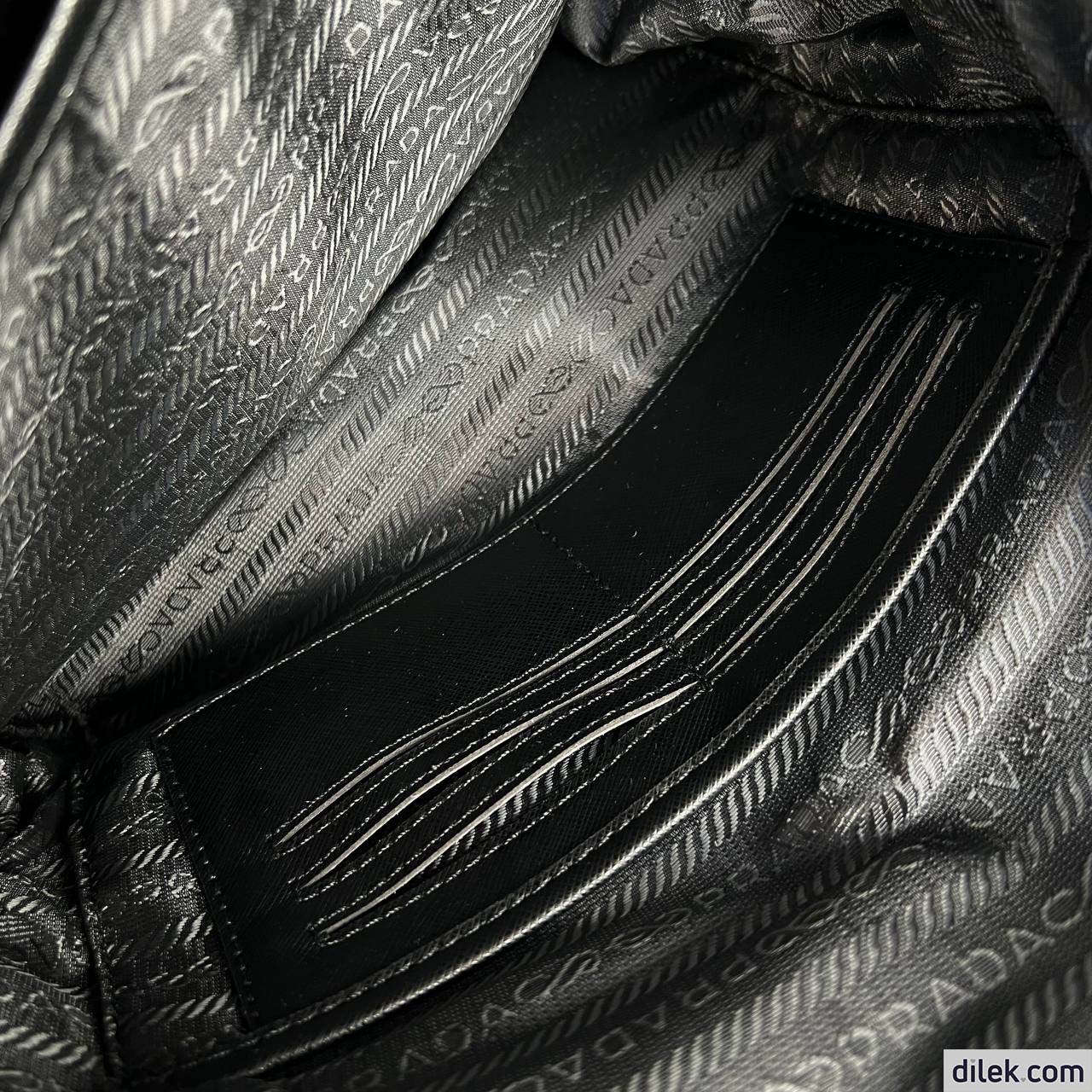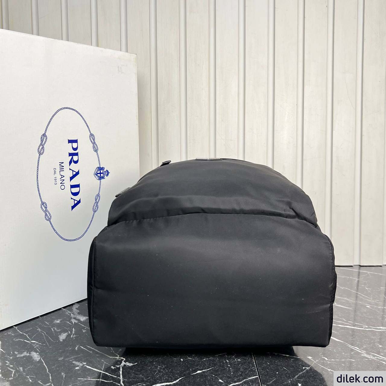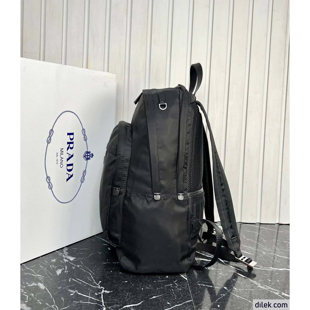 This roomy backpack with a technical look is made of Re-Nylon, the innovative technical fabric produced from recycled plastic trash recovered in the ocean. The design of the accessory, with main compartment with zipper closure, stands out for its Saffiano leather details. Saffiano leather, an iconic material of Prada, is synonymous with luxury and identifies with traditional Italian leather goods production. The calf leather of the highest quality is defined by a crosshatch pattern and wax finish.