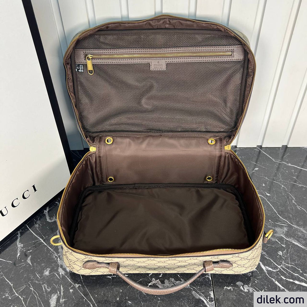 Gucci heritage meets contemporary design with the continuation of Gucci Savoy. With its two archival details, the Web and the Double G hardware, the line takes on new shapes and dimensions in the Pre-Fall collection. As part of the latest collection, a pair of Gucci shoes can be carried within a case sporting the same level of craftsmanship and sophistication.