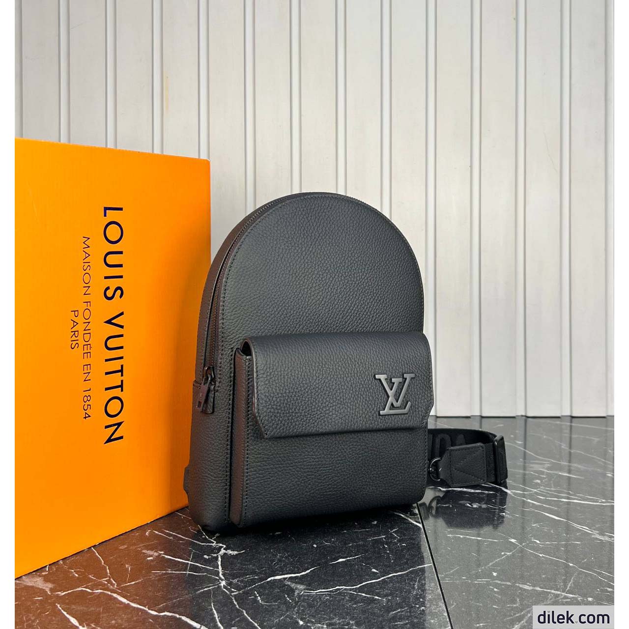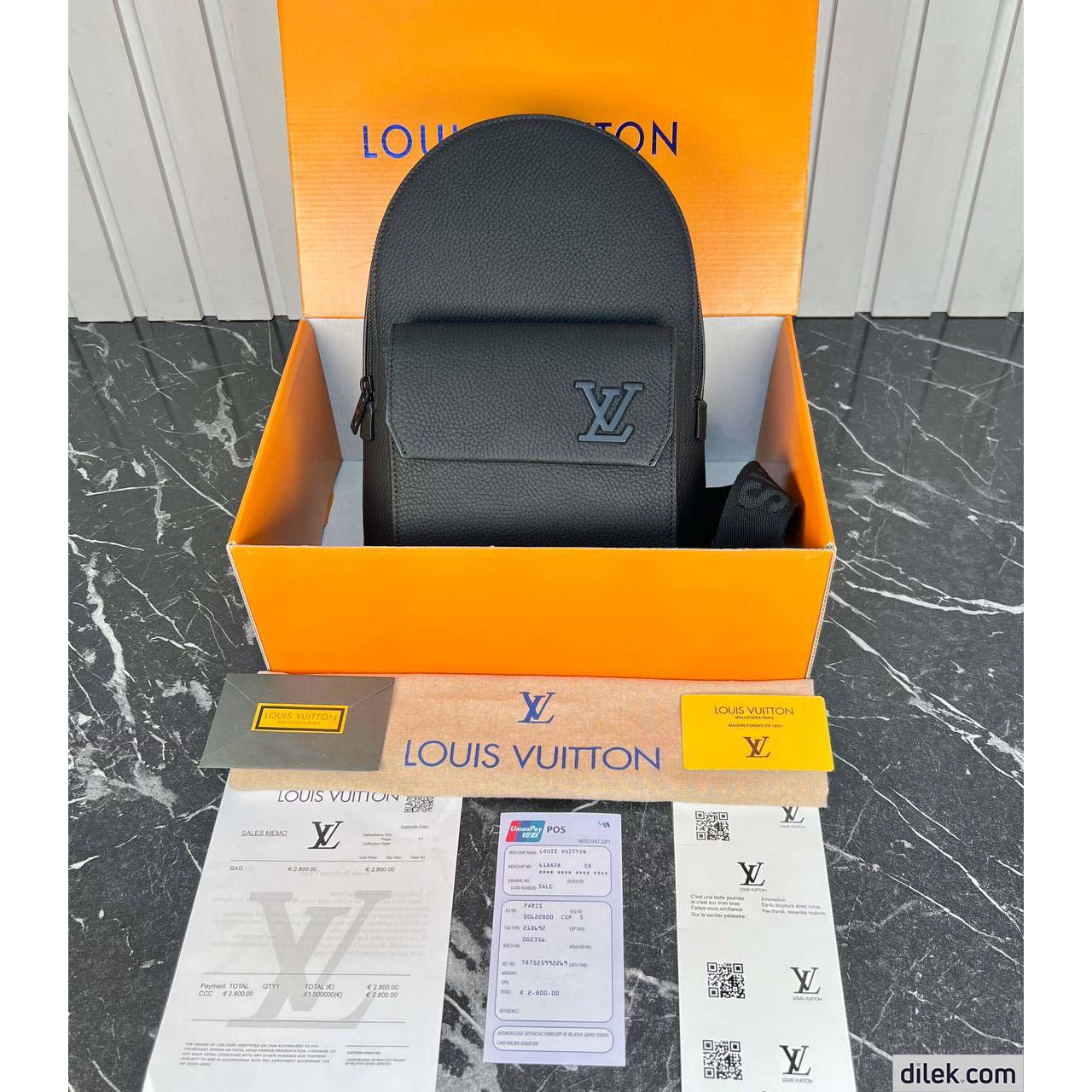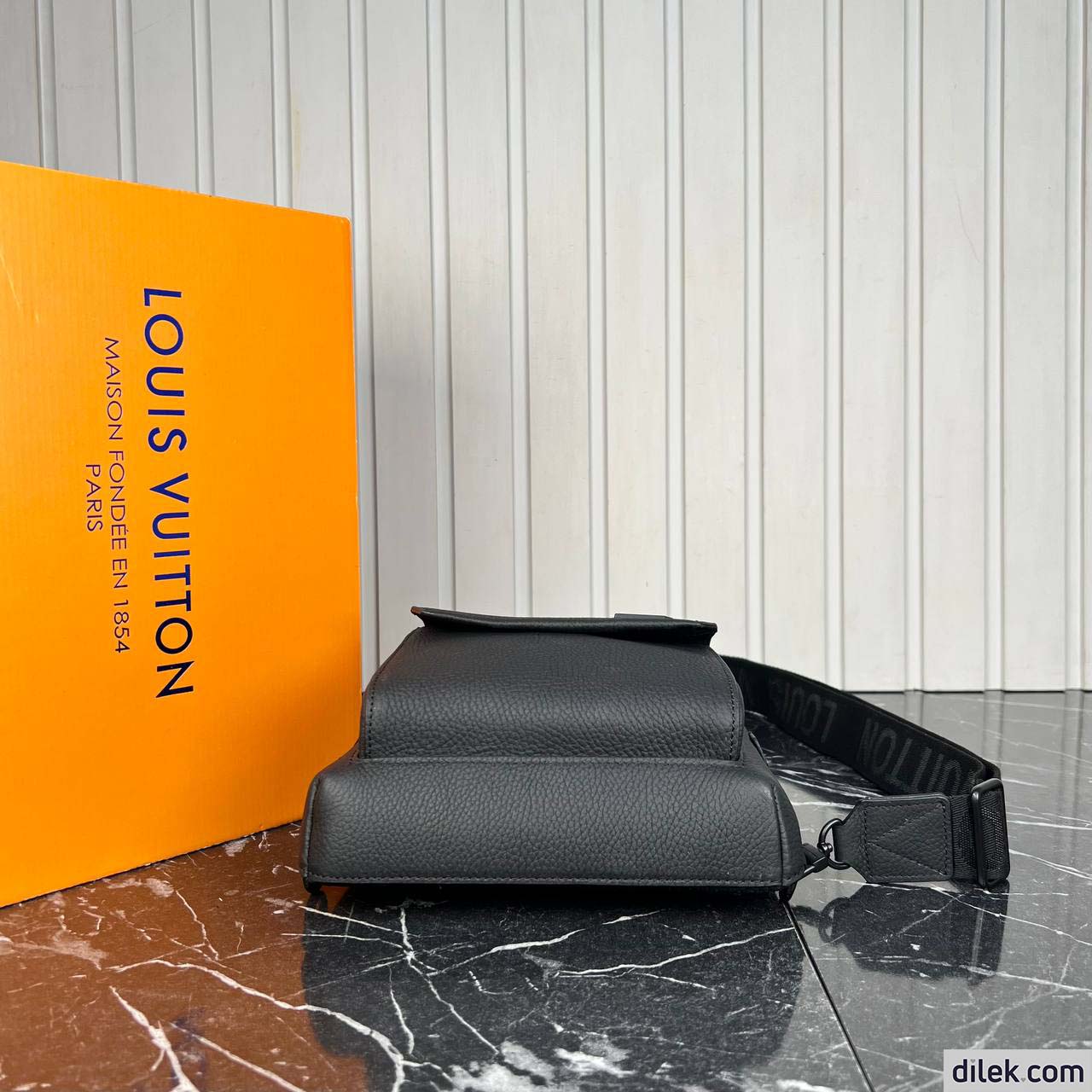 Inspired by the popular Takeoff Backpack, the Pilot Slingbag features a rounded shape, a front flap, and the signature details of the LV Aerogram Collection. The magnetic closure enables easy access to belongings while keeping them secure. The adjustable strap can be attached to the left or right side of the bag.