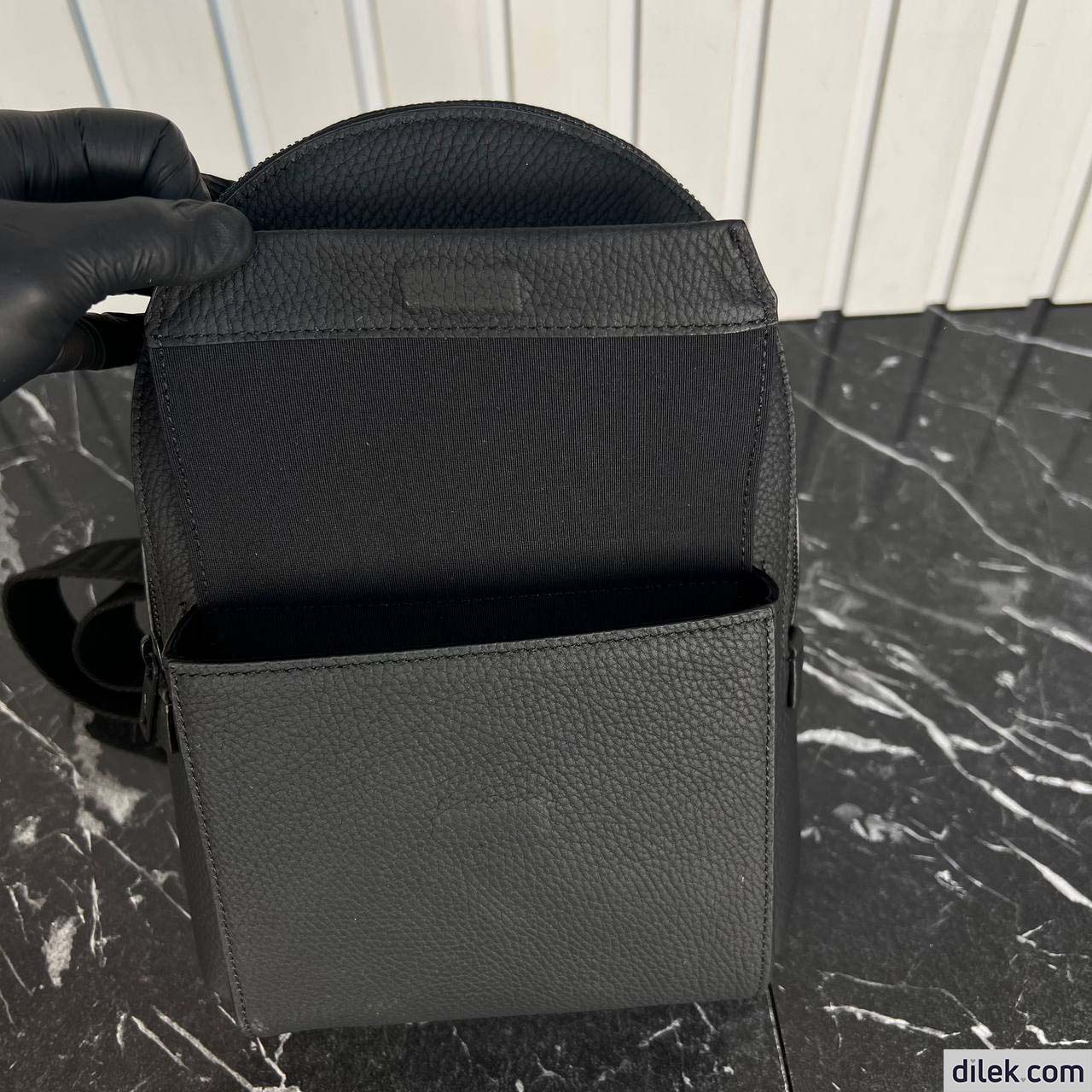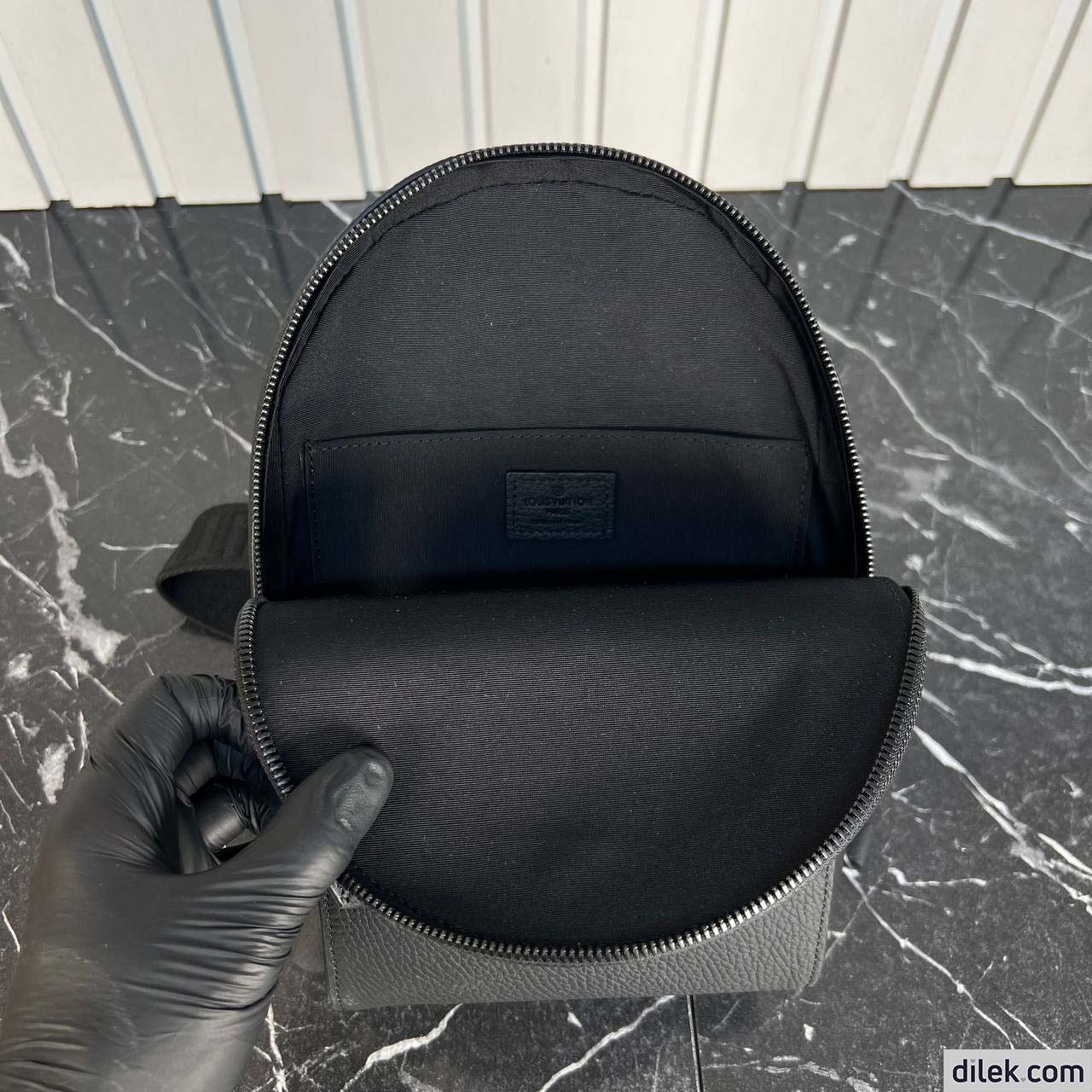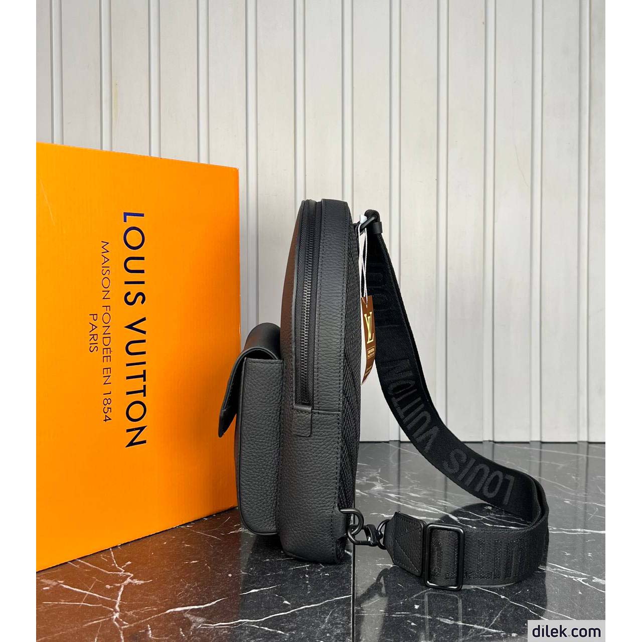 Inspired by the popular Takeoff Backpack, the Pilot Slingbag features a rounded shape, a front flap, and the signature details of the LV Aerogram Collection. The magnetic closure enables easy access to belongings while keeping them secure. The adjustable strap can be attached to the left or right side of the bag.