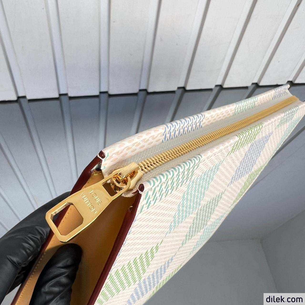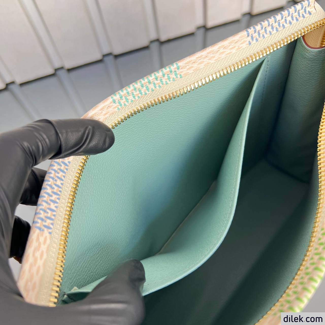 This Pochette Voyage pouch is made from Monogram Macassar coated canvas with cowhide-leather trim in a bright colorway. The interior is lined with matching-colored leather and features six card slots as well as an inside flat pocket. The pouch closes with a silver-color zipper.