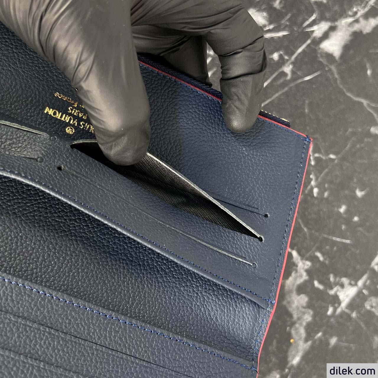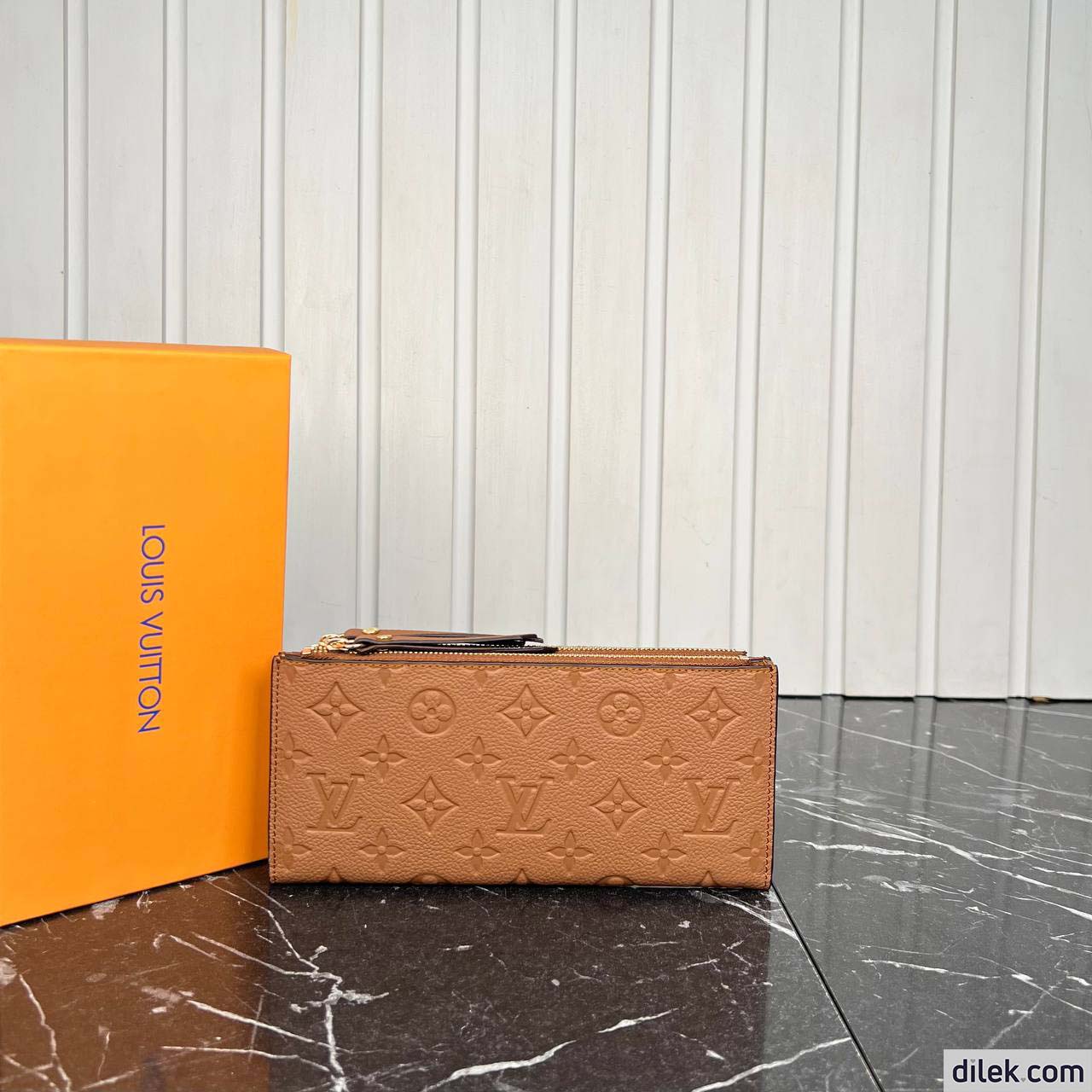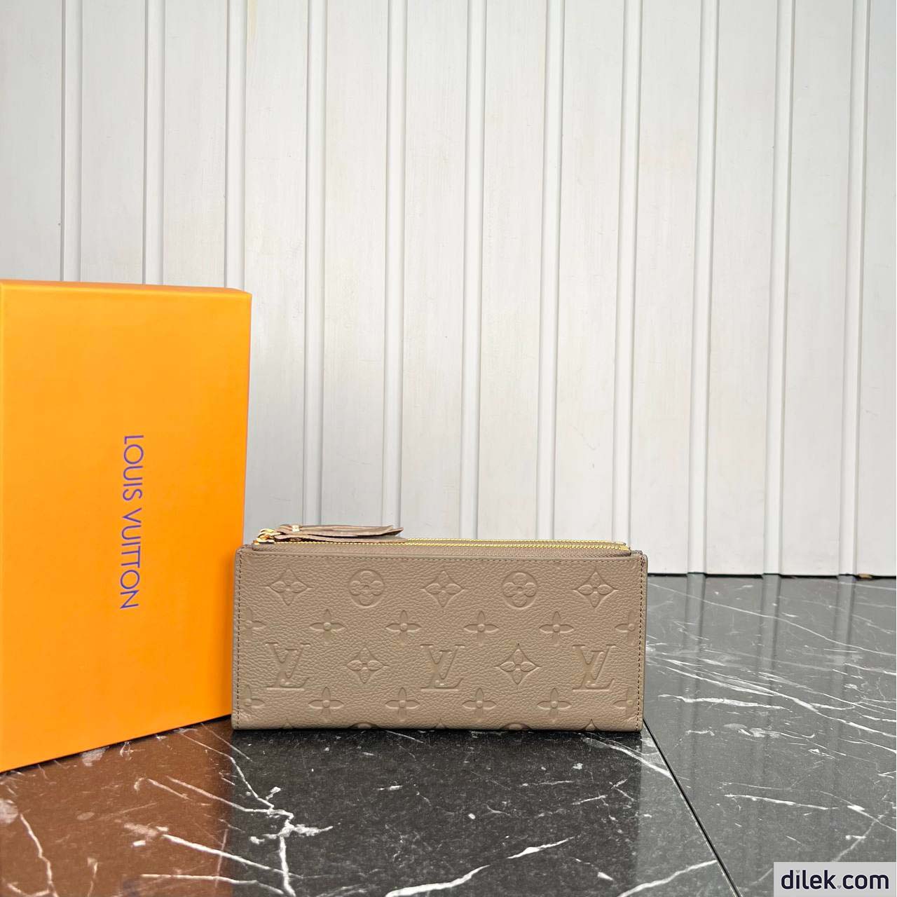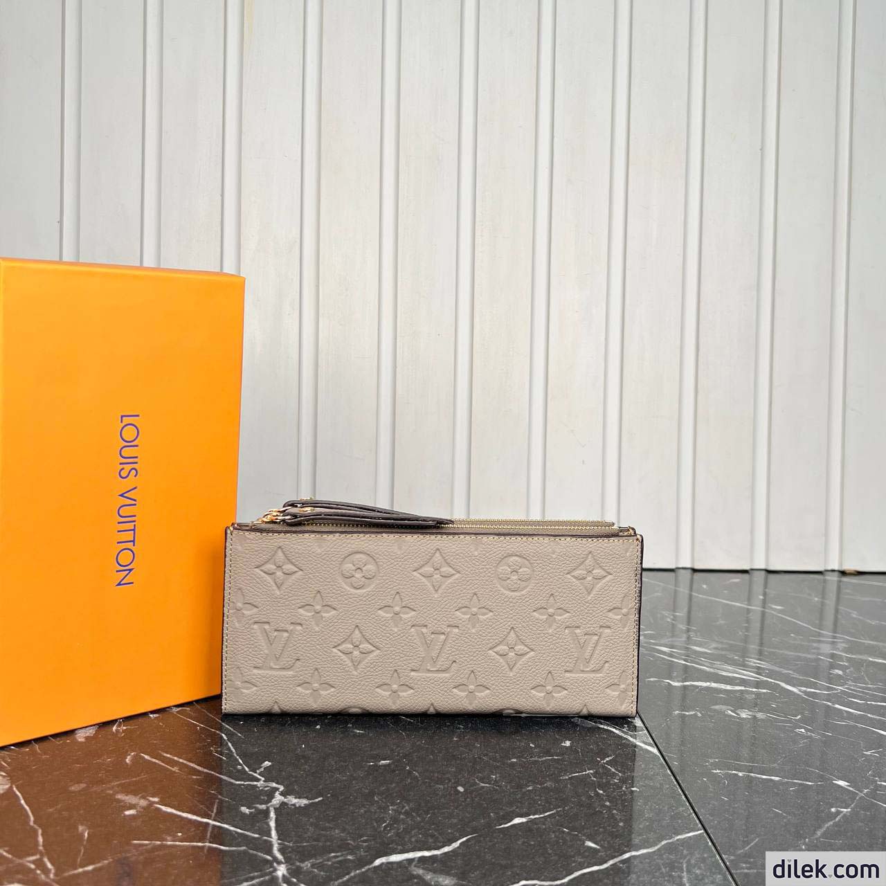 LOUIS VUITTON Monogram Adele Wallet in Fuchsia. This chic wallet is crafted of traditional Louis Vuitton monogram on toile canvas. It features a slim design, with dual zipper compartments. The wallet snaps open to a dark fuchsia cross-grain leather interior with card slots and patch pockets.