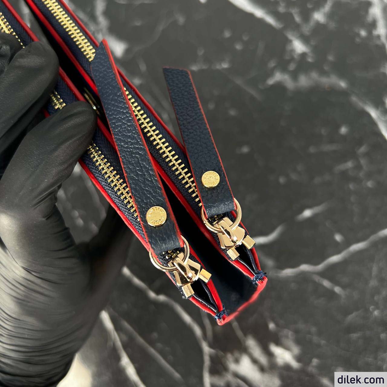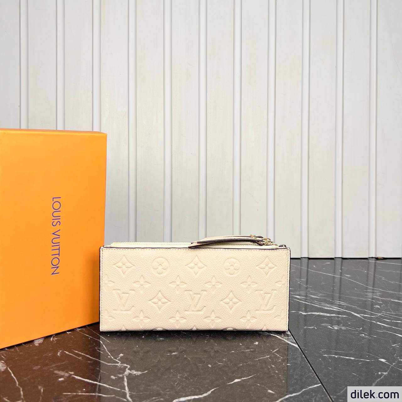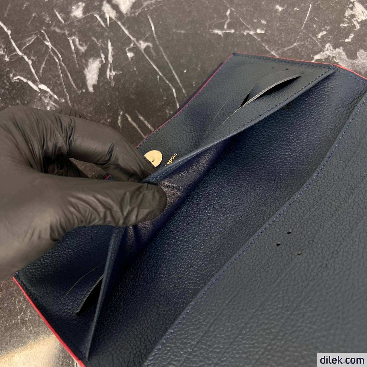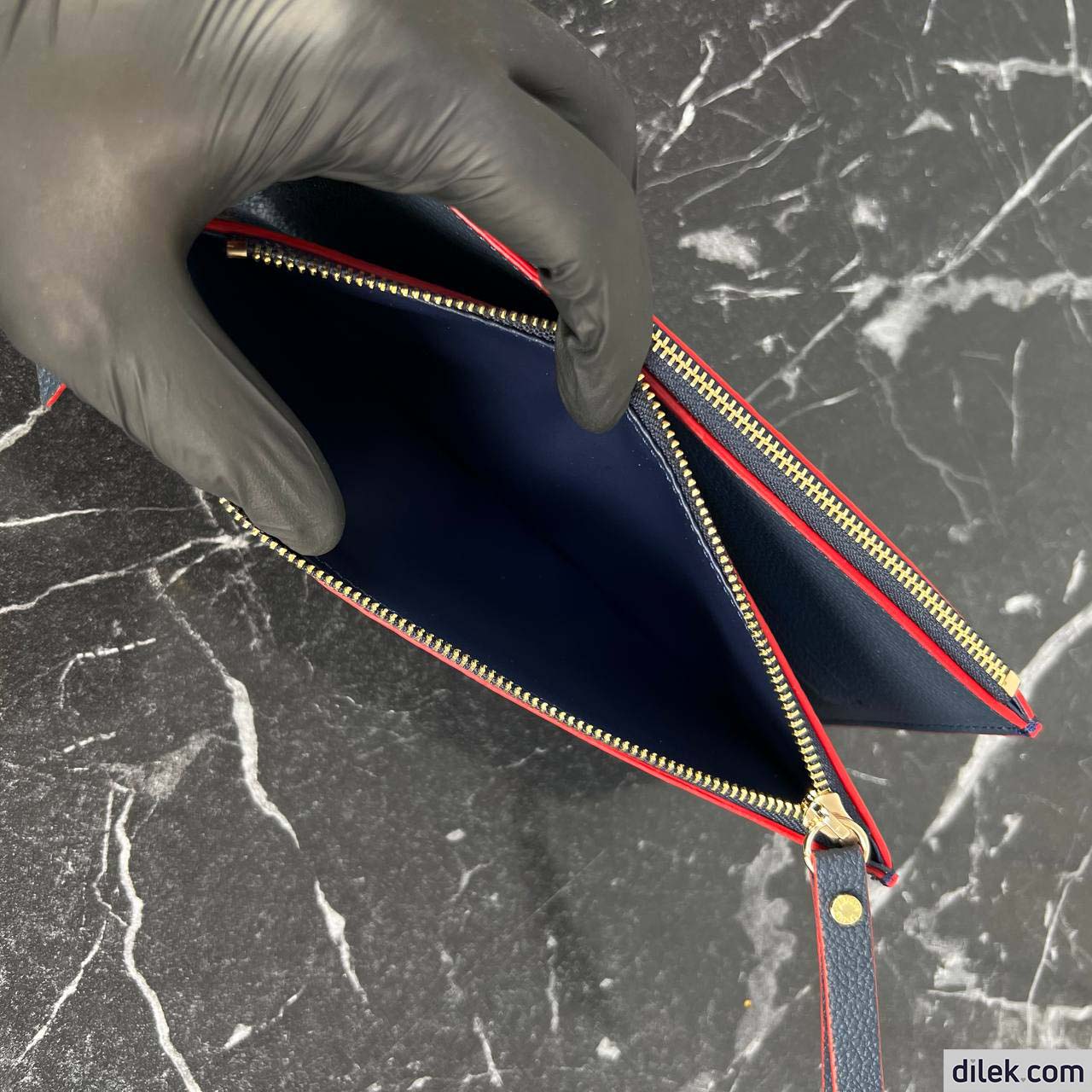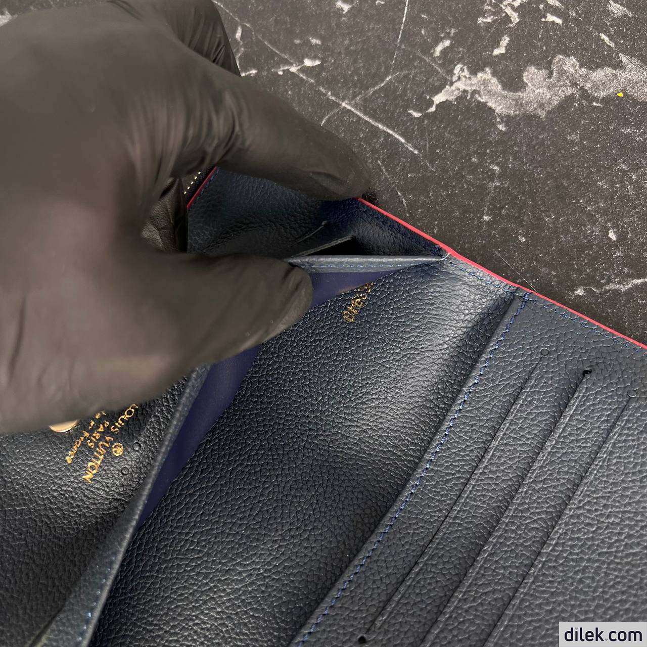 LOUIS VUITTON Monogram Adele Wallet in Fuchsia. This chic wallet is crafted of traditional Louis Vuitton monogram on toile canvas. It features a slim design, with dual zipper compartments. The wallet snaps open to a dark fuchsia cross-grain leather interior with card slots and patch pockets.