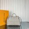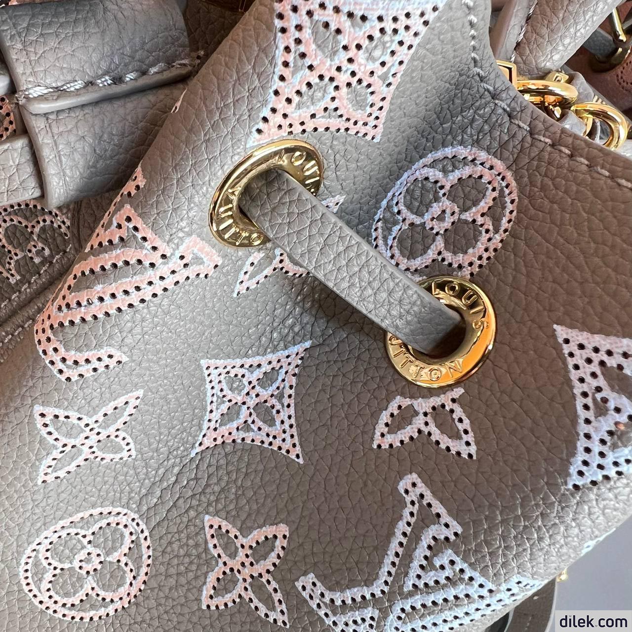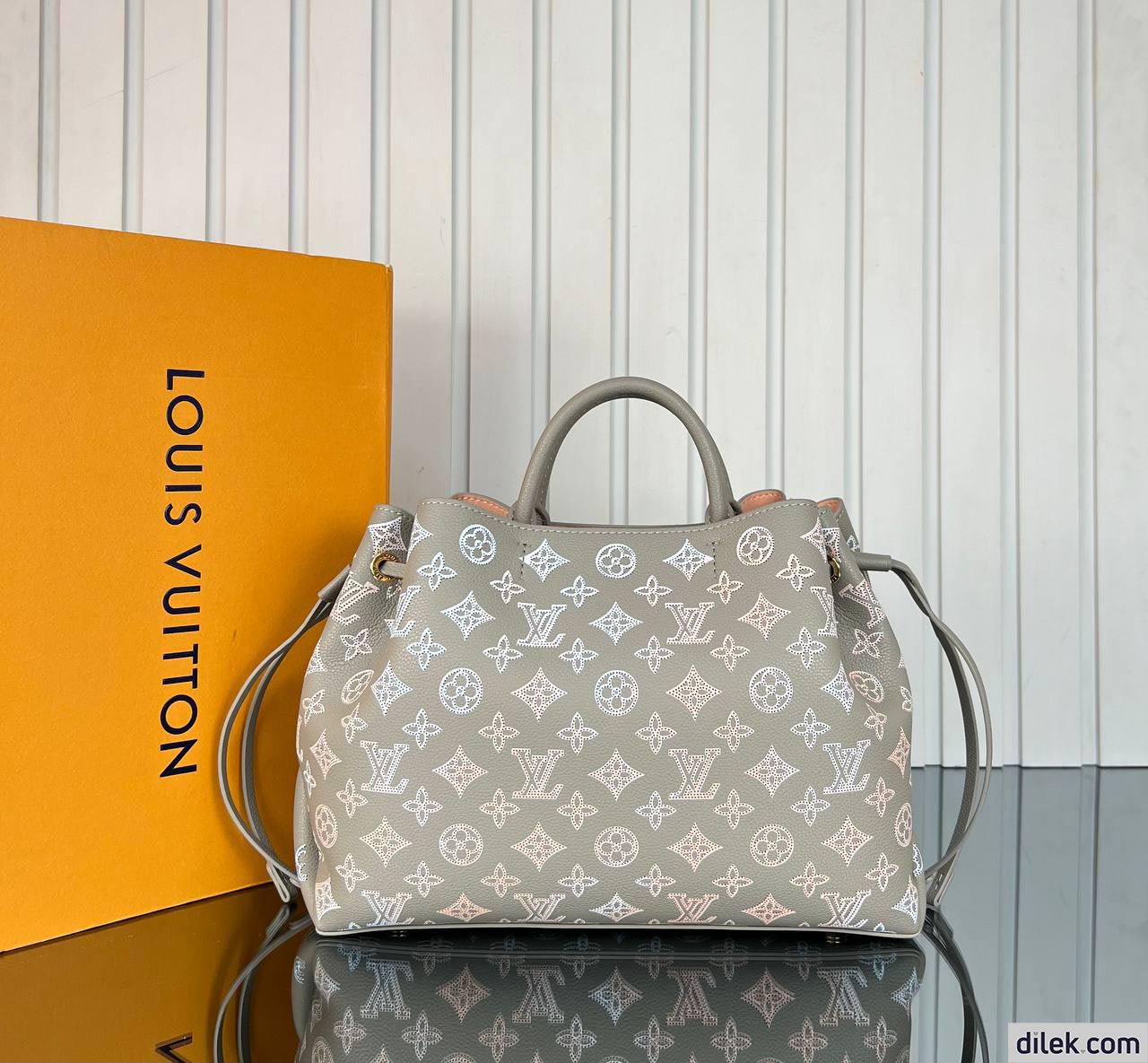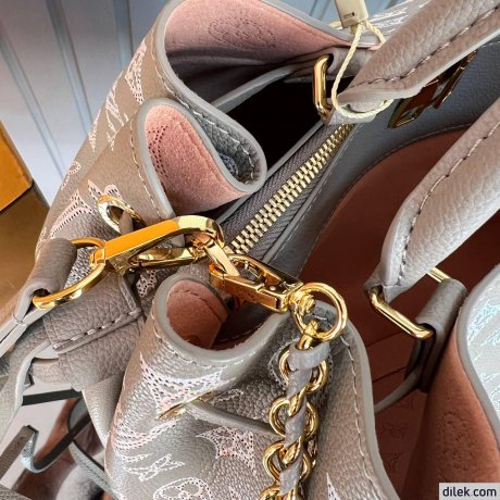 Perfect for plane travel, the spacious Bella Tote in gray Mahina perforated calfskin is both a bucket bag and a carryall. The bag’s supple construction and the muted colorway bring a minimalist elegance. Roomy, it has two separate inside compartments.