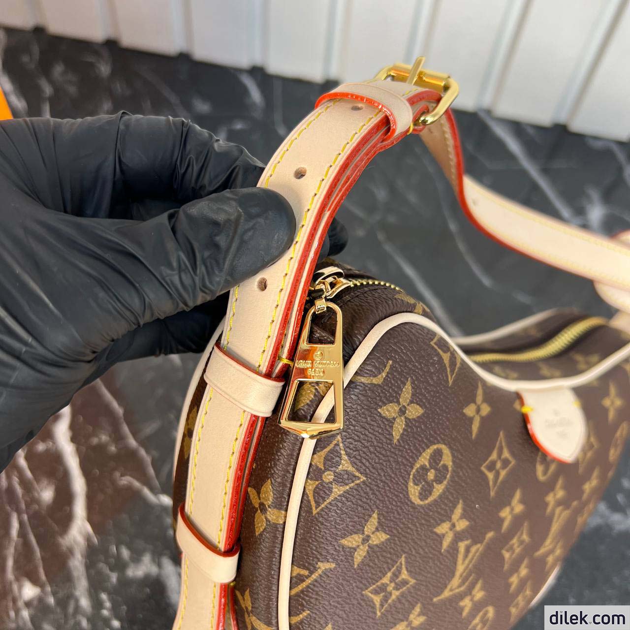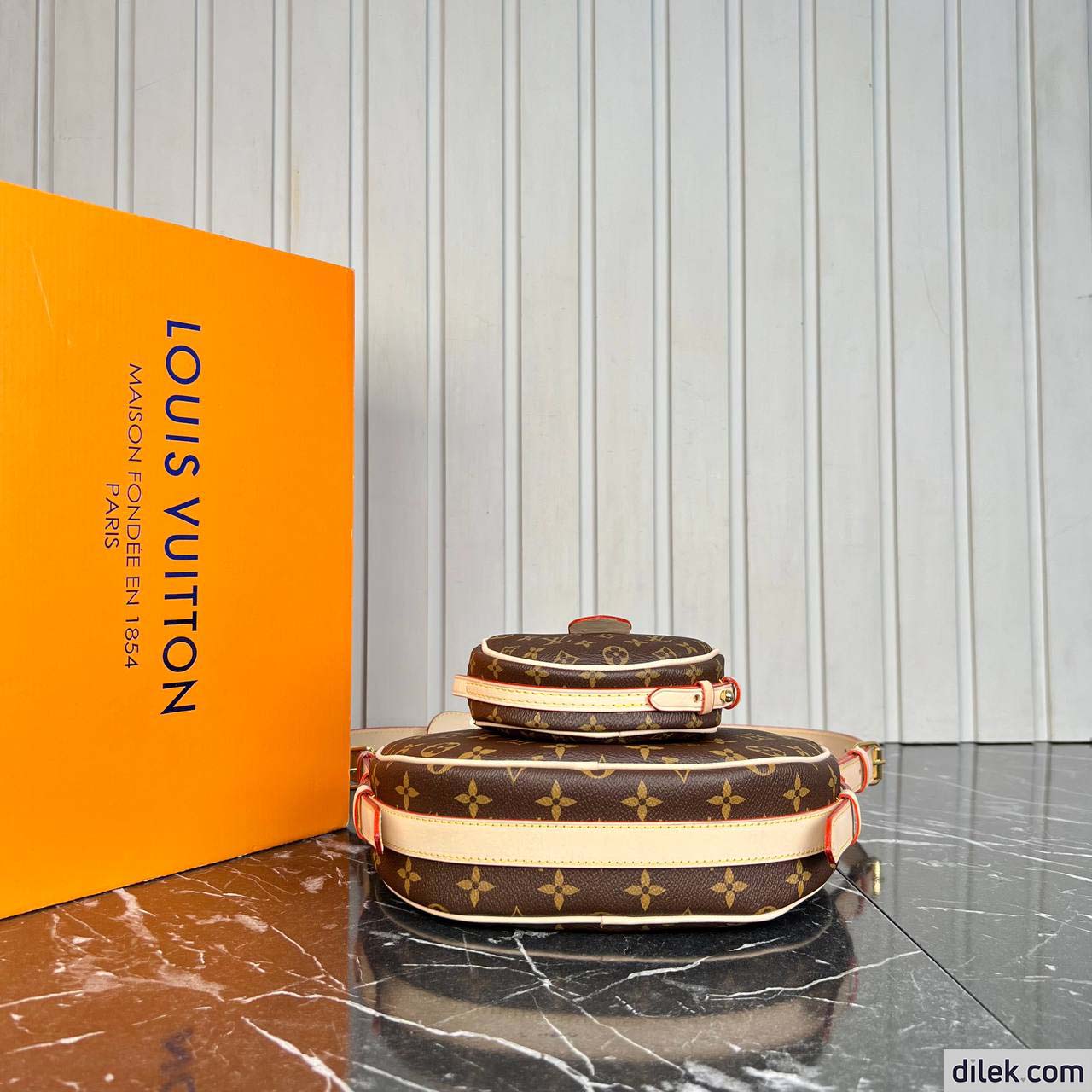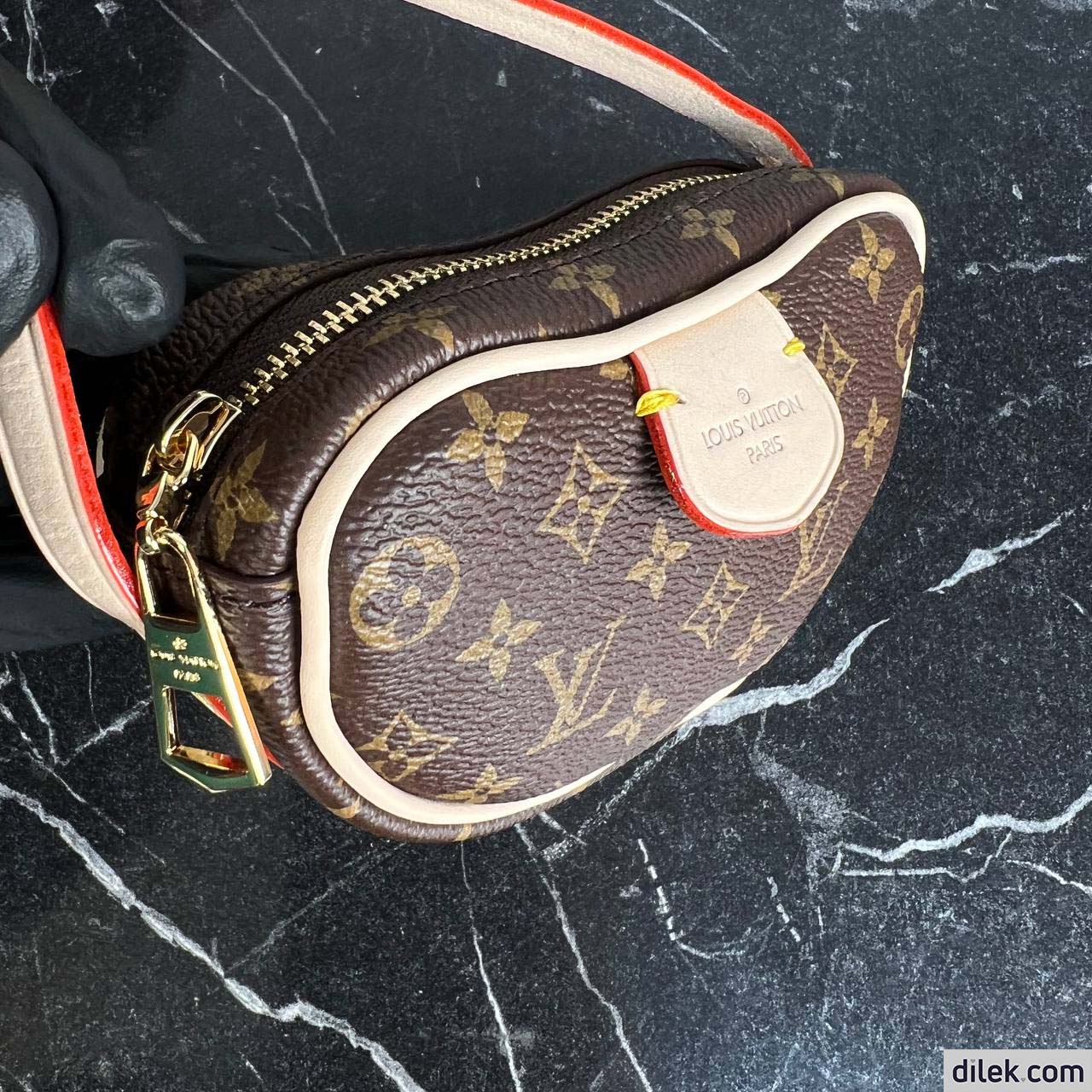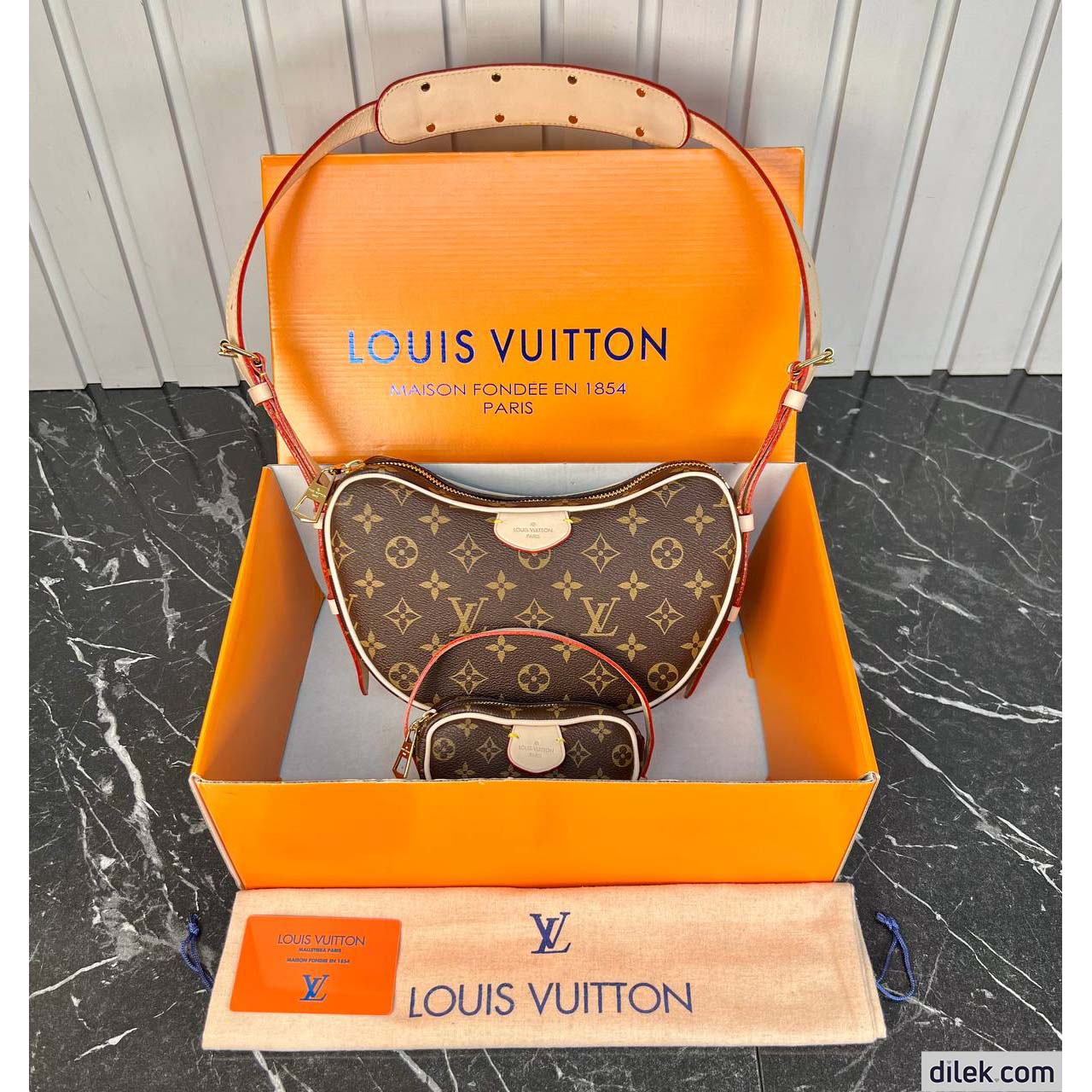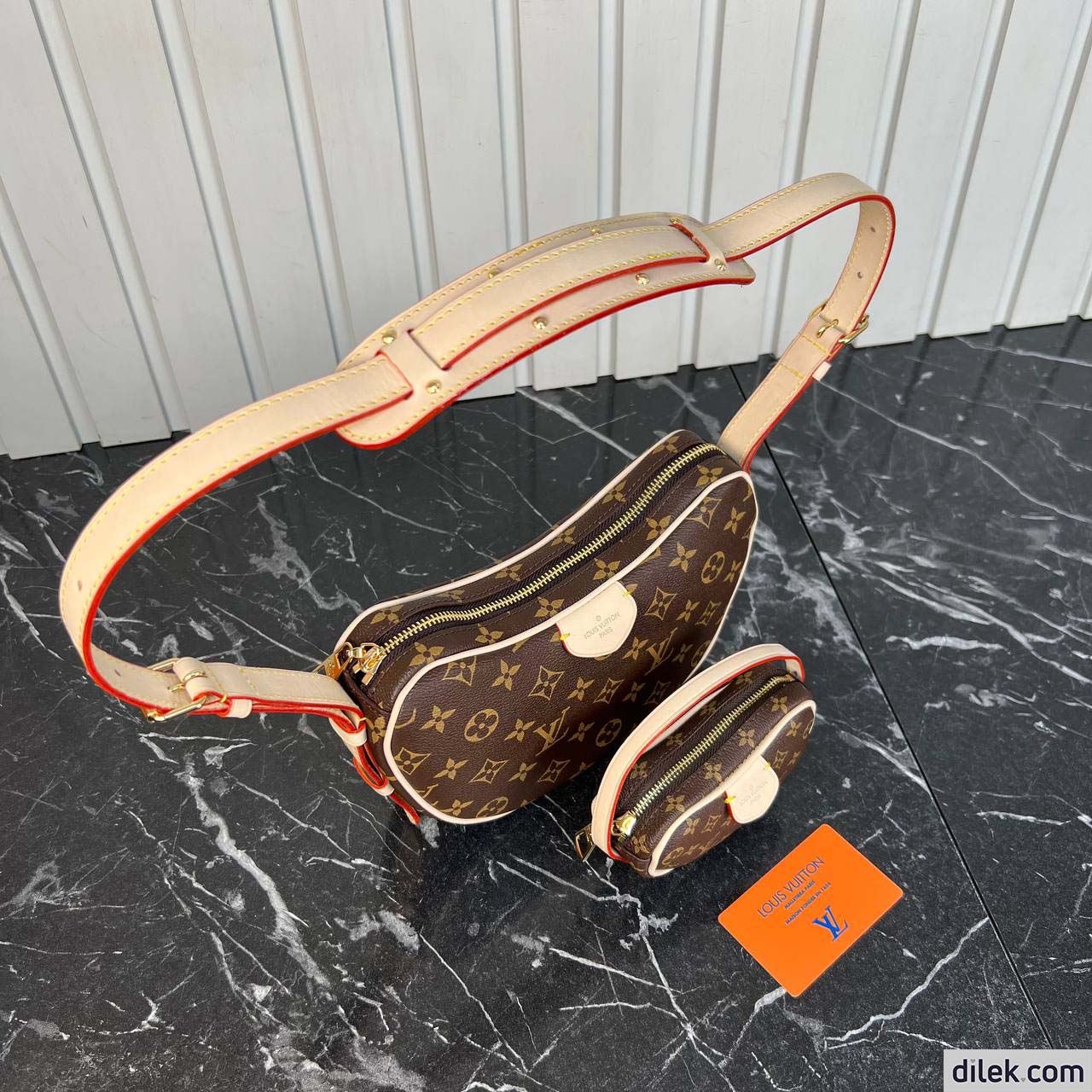 The Croissant MM handbag is made from Monogram coated canvas with natural cowhide-leather trim and comes with an adorable miniature version of the same bag. Thanks to its removable and adjustable strap, this versatile bag can be worn cross-body, short- or long-shoulder, and with or without the matching mini bag.