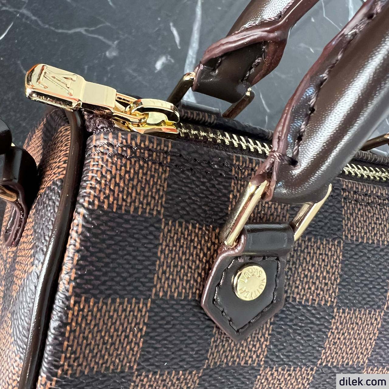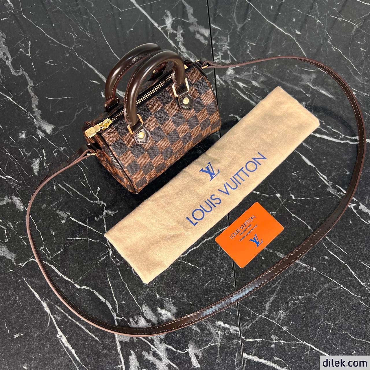 The Nano Speedy revamped in Monogram canvas is the perfect miniature version of Louis Vuitton's iconic Speedy bag, and the ideal way to carry essentials. This beautifully crafted design is complemented by aged natural cowhide leather and gold-tone hardware. In addition to its two handles, it has a removable, adjustable shoulder strap for different carry options.