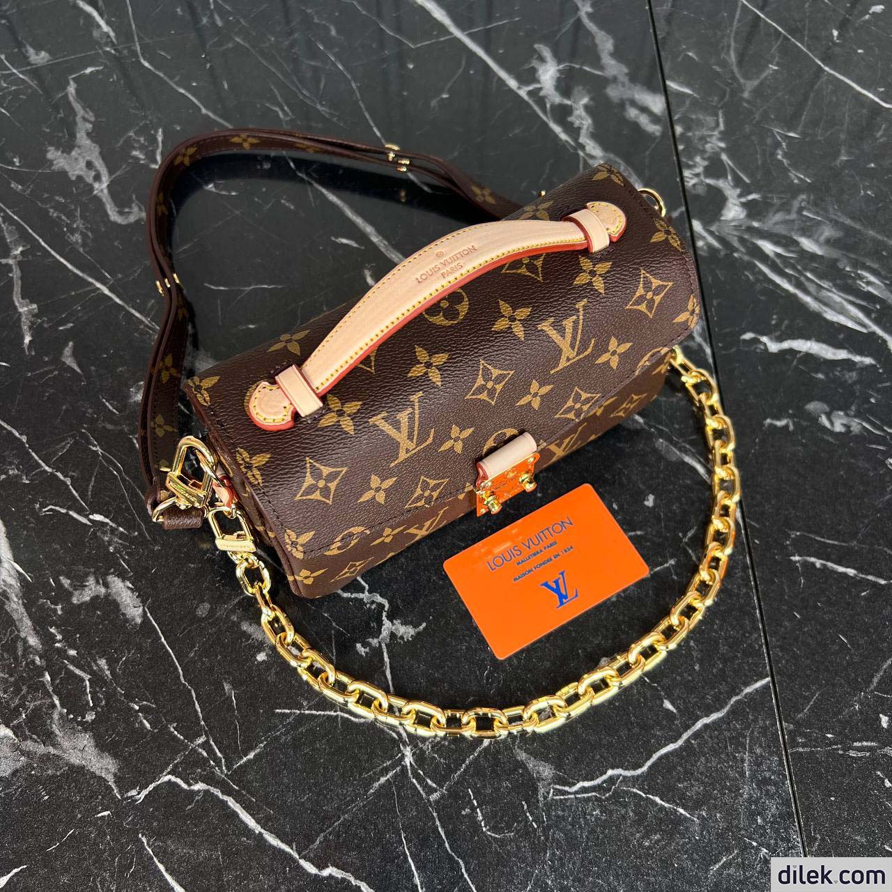 Made from Monogram canvas with natural cowhide leather trim and the S-lock signature, the Pochette Métis East West bag combines emblematic House cues with new contemporary details like a gold-colour chain for fashionable short-shoulder carry. Roomy enough to store an iPhone 13, it has three inside compartments, a zipped pocket inside and another outside.