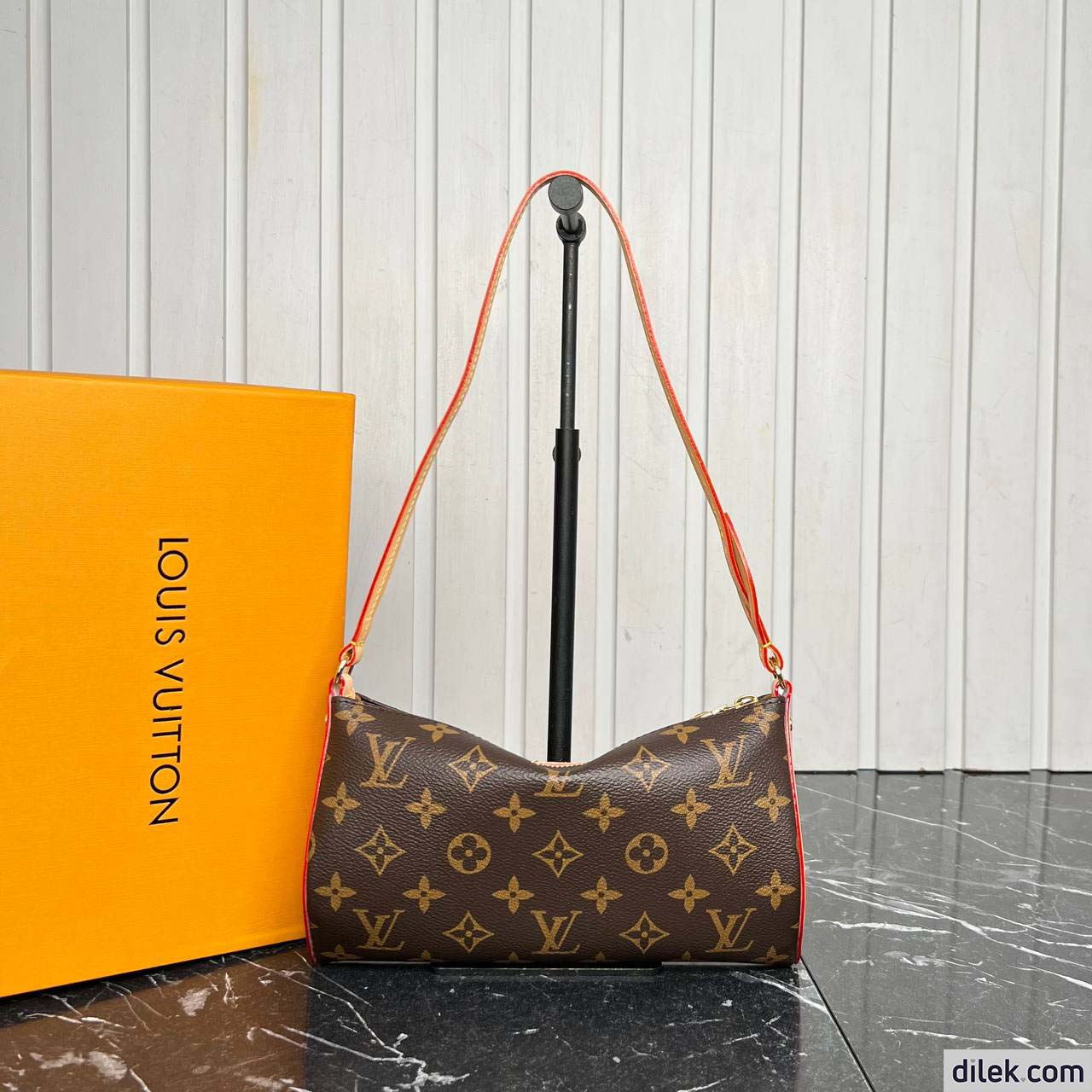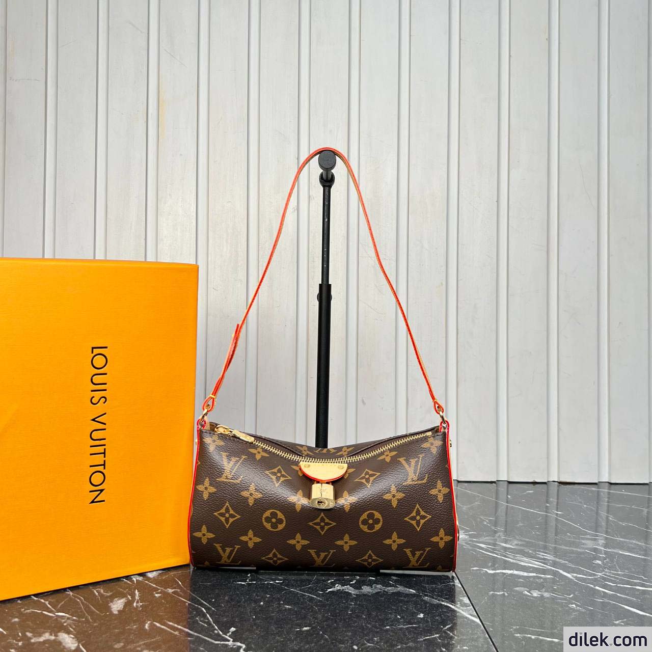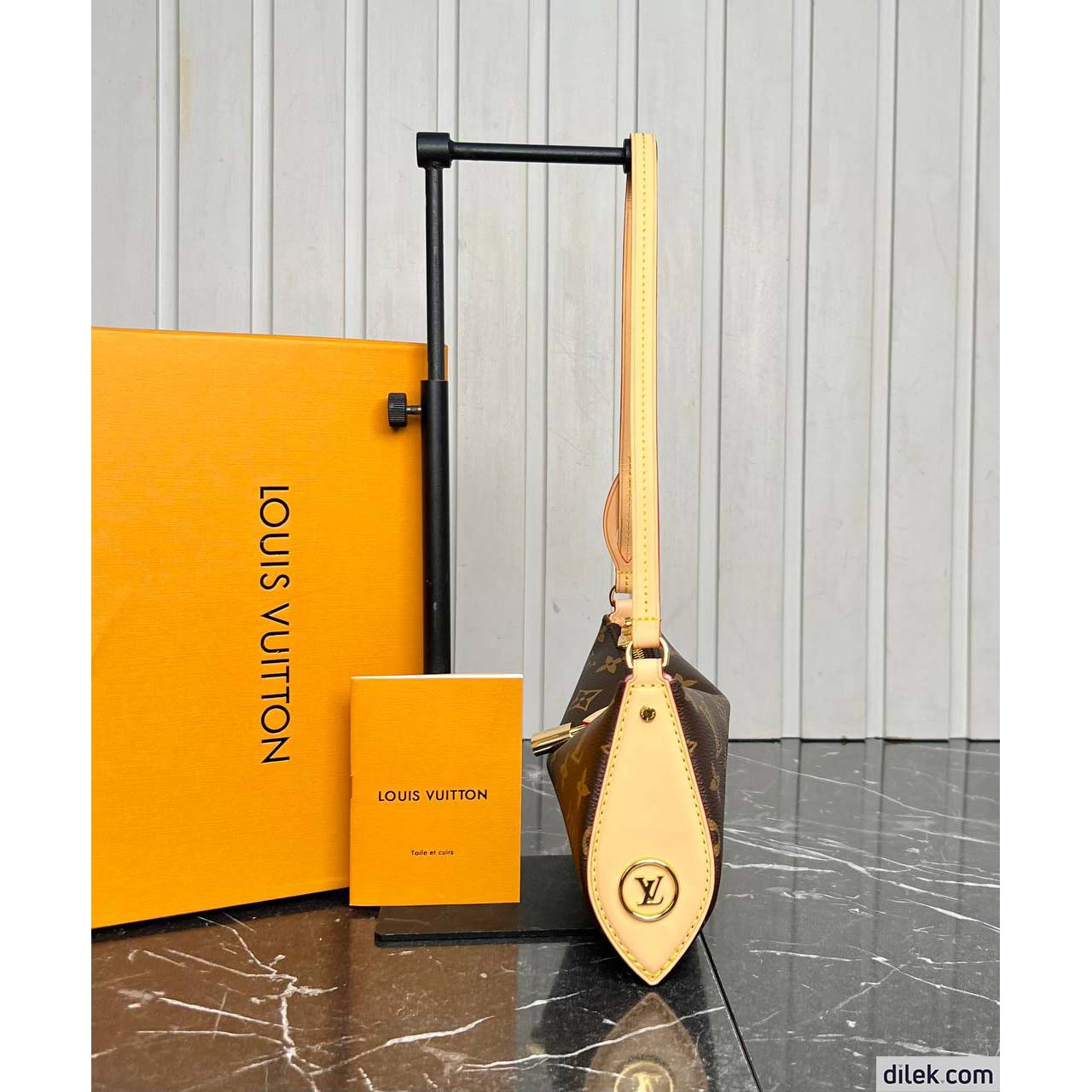The Pochette Tirette in Monogram canvas is a small bag with an on-trend slouchy shape, which opened Louis Vuitton's Spring-Summer 2024 show. It is complemented by natural leather trim, notably on the sides, which recall the ogive shape of the House's iconic zip pulls. This model comes with a gold-tone padlock and two removable straps for shoulder or adjustable cross-body wear.