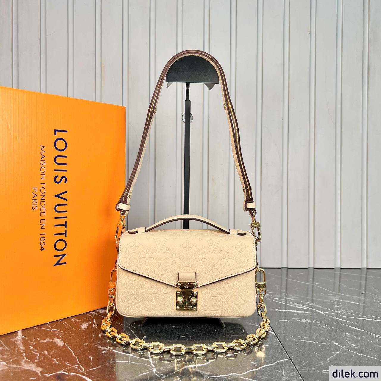 Made from embossed Monogram Empreinte leather, the Pochette Métis handbag blends signature House style and contemporary detailing. The on-trend East-West silhouette is highlighted by a heritage S-lock and removable short chain, both cast from gold-finish metal. With its well-organized interior and adjustable smart strap, this compact bag adapts perfectly to active lifestyles.