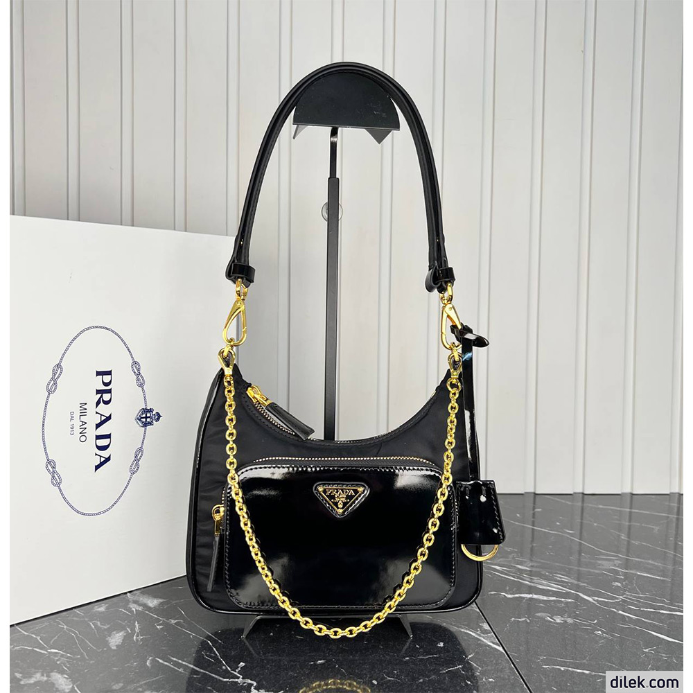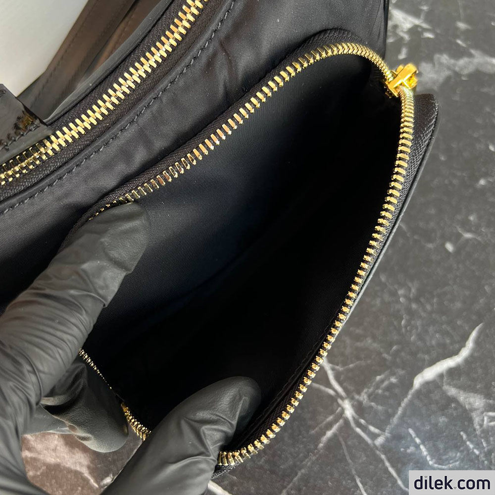 A new interpretation of an iconic Prada style, the Re-Edition 2000 mini-bag is made of innovative Re-Nylon, produced from recycled, purified plastic trash collected in the ocean, fishing nets, and textile waste fibers. The accessory with zipper closure and woven tape handle is decorated with the iconic enameled metal triangle logo.